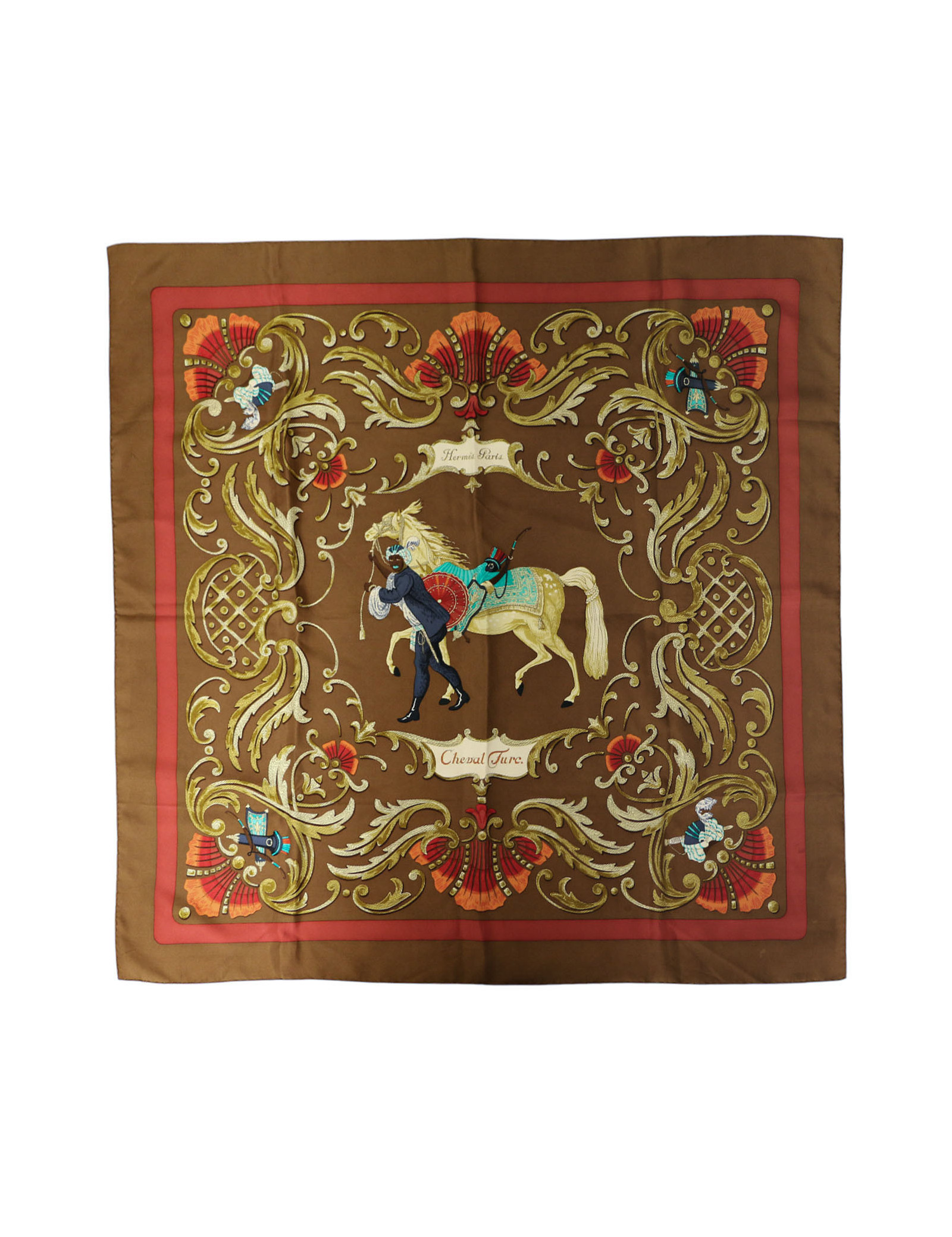 Sold SCARVES AND SHAWLS HERMES Les Cheyennes Collector square silk scarf HERMES 34875 980.00 € HERMES "Les Cheyennes" rare silk square scarf Condition : very good despite a small pulled threadMade in FranceMaterial : 100% silkColor: yellowMeasurements : 90 x 90 cmDesigner : Olivier KermitYear : 1993Details : A very rare square, much sought-after by collectors. Composition label missing, signed Hermès Paris.Oliver Kermit, son of an Afro-Texan... View
