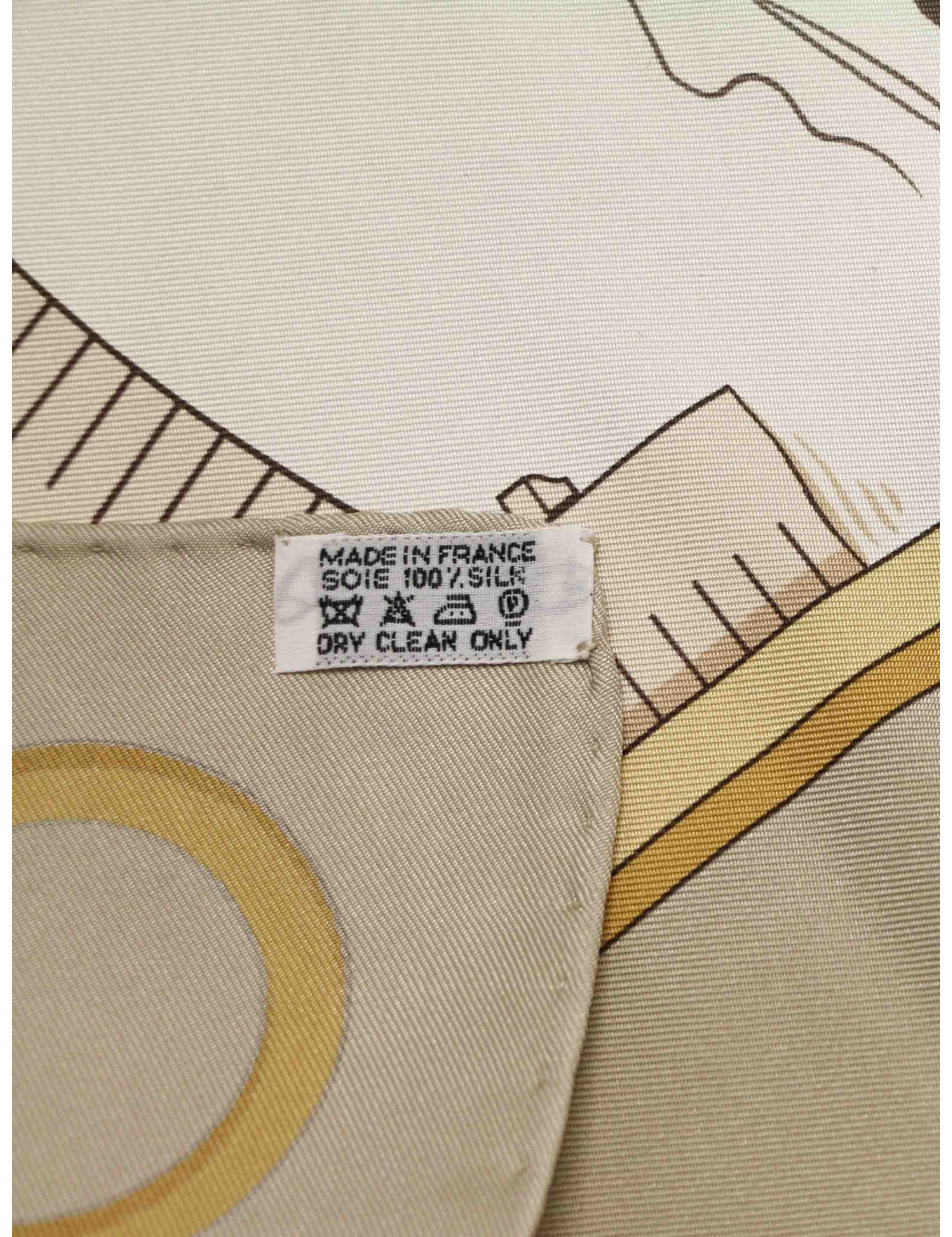 Last items in stock SCARVES AND SHAWLS HERMES "Folklore" white and yellow silk twill large scarf HERMES 17049 970.00 € HERMES "Folklore" white and yellow silk twill large scarf Made in FranceCondition: very goodMaterial: silkColors: yellow, white, blackDesigner: Henri d'Origny.S of the brand's salesMeasurements: 135x135xmDetails: HERMES “Folklore” giant square in feather silk twill with yellow borders on a white background. Impeccable black rolled hem. Advantage Valois... Add to cart
