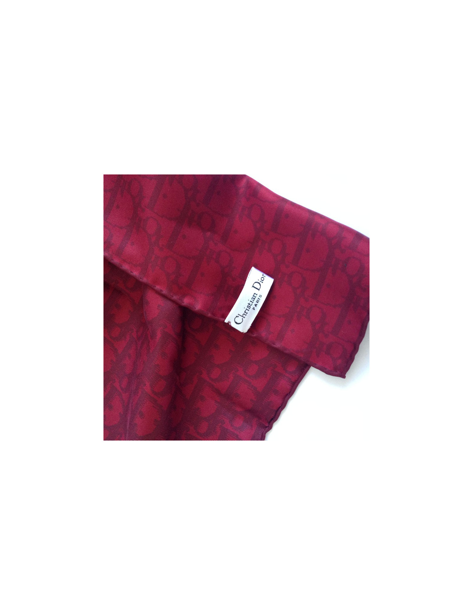 Burgundy silk Christian DIOR scarf. Made in Italy. Monogram "DIOR" tone on tone. The trailer is in very good condition. Material label presents. Very good condition.