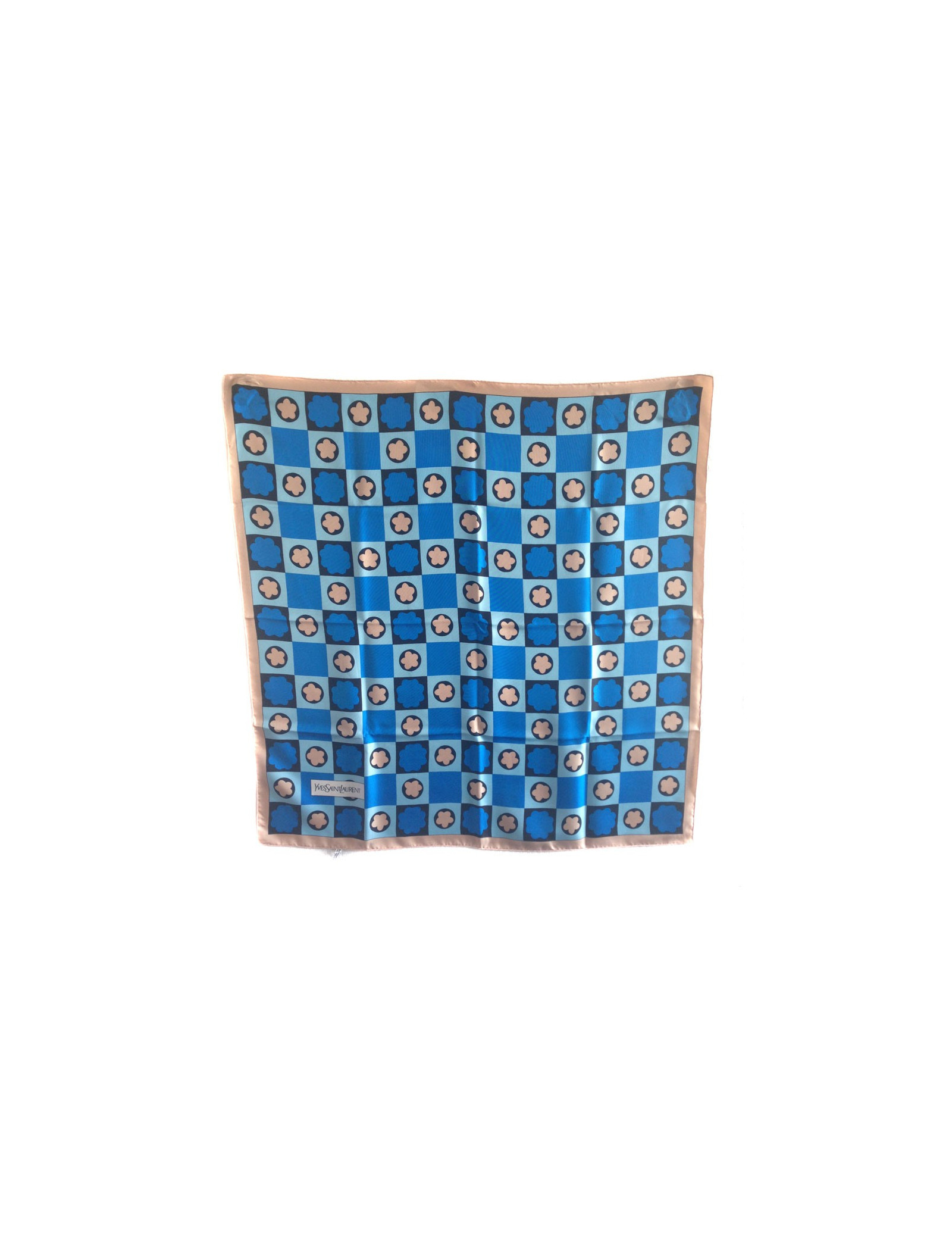 Square of silk Yves Saint Laurent in shades of Brown ice clear and blue. Reason: flower. Square vintage and impeccable. The trailer is spotless. Material label presents. The square has been cleaned to a luxury cleaners.