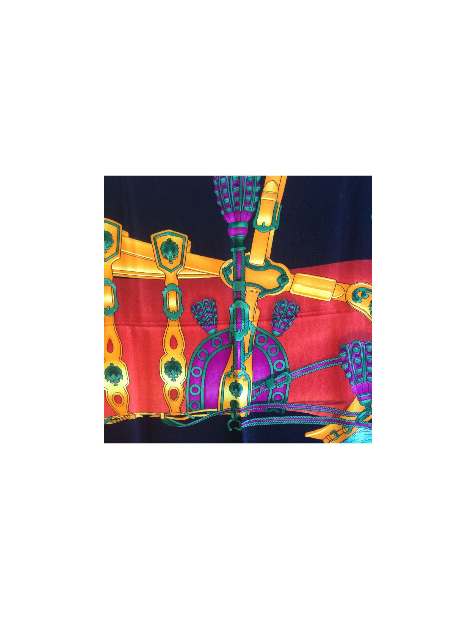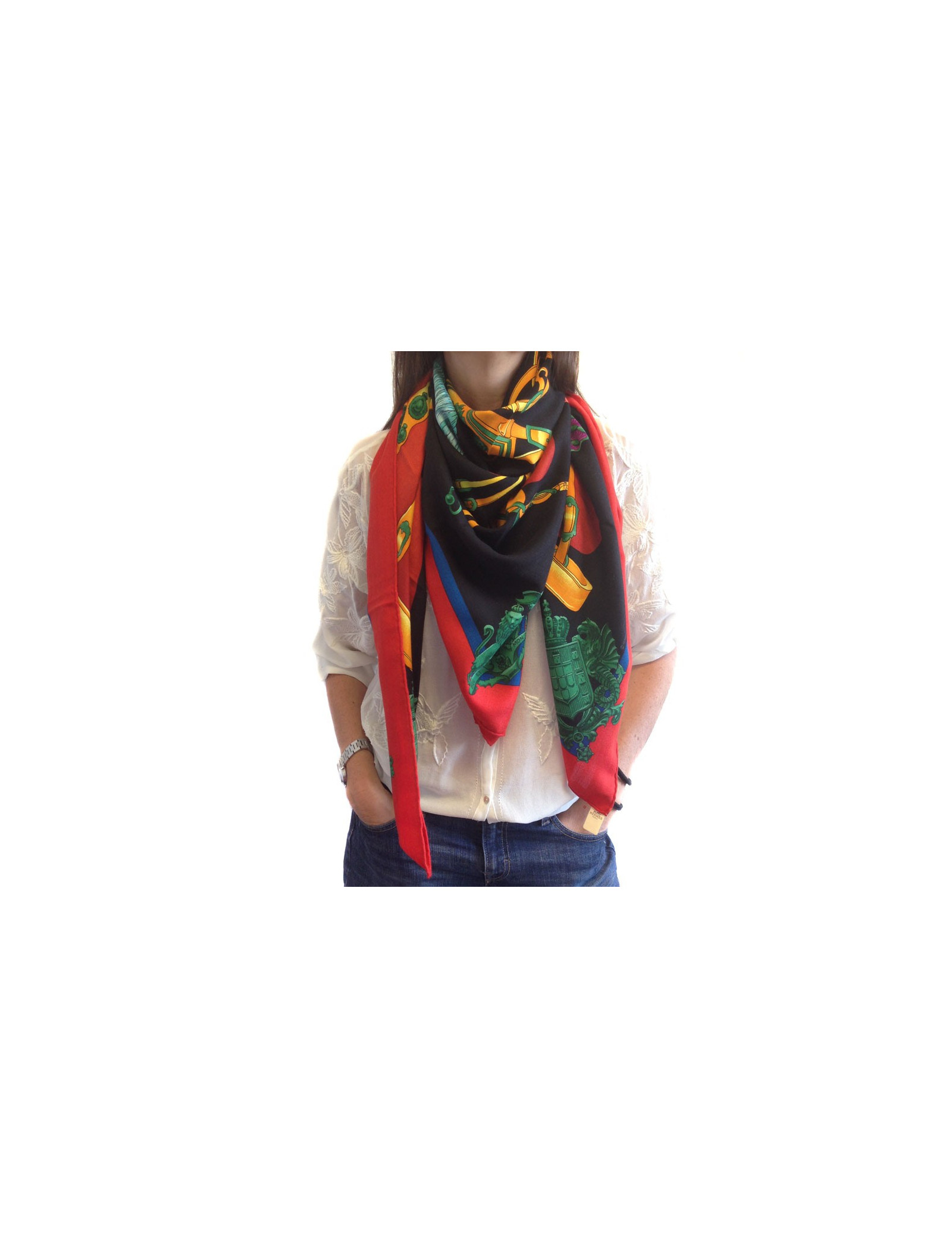 Shawl HERMES "Harness of court" in cashmere and silk red, black, green