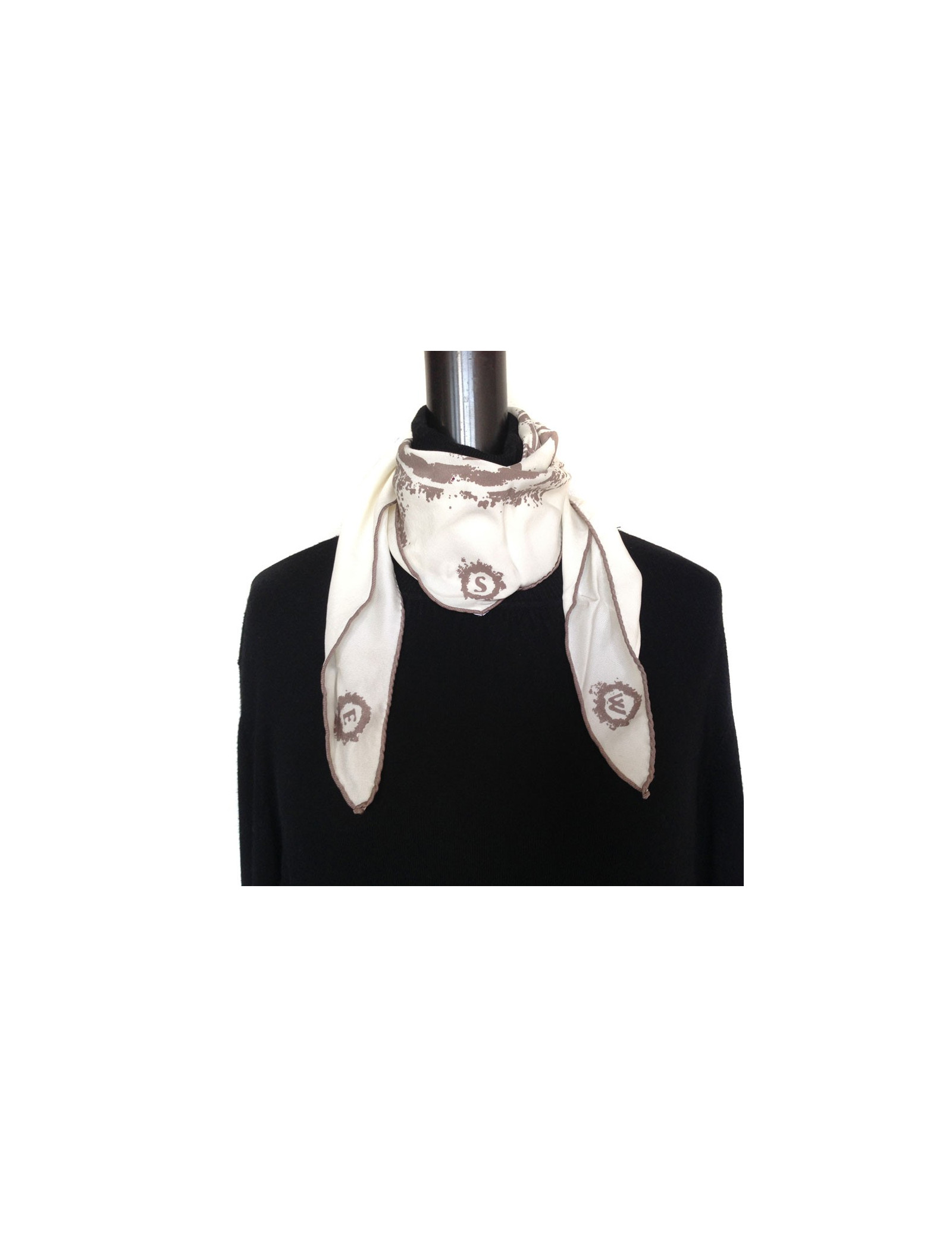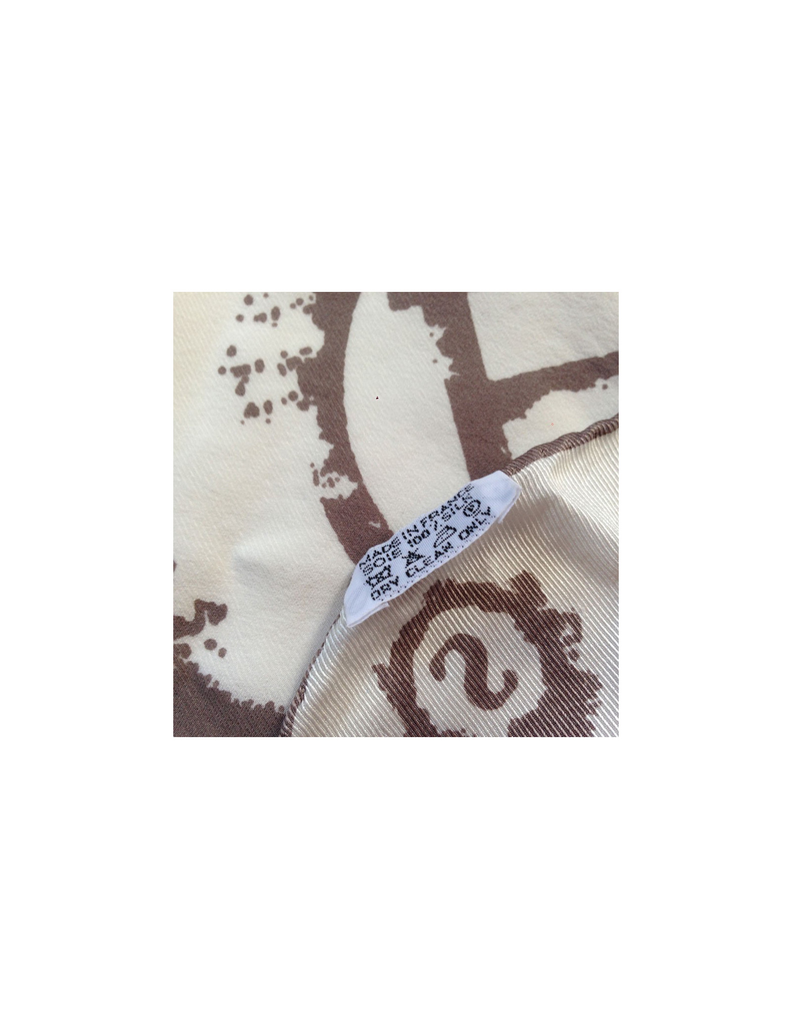 Average diamond Ex Libris "Trip of Hermes", model HERMES scarf, in crepe silk white and taupe. Reason the cardinal points. Cleaned at a luxury cleaners. In very good condition.