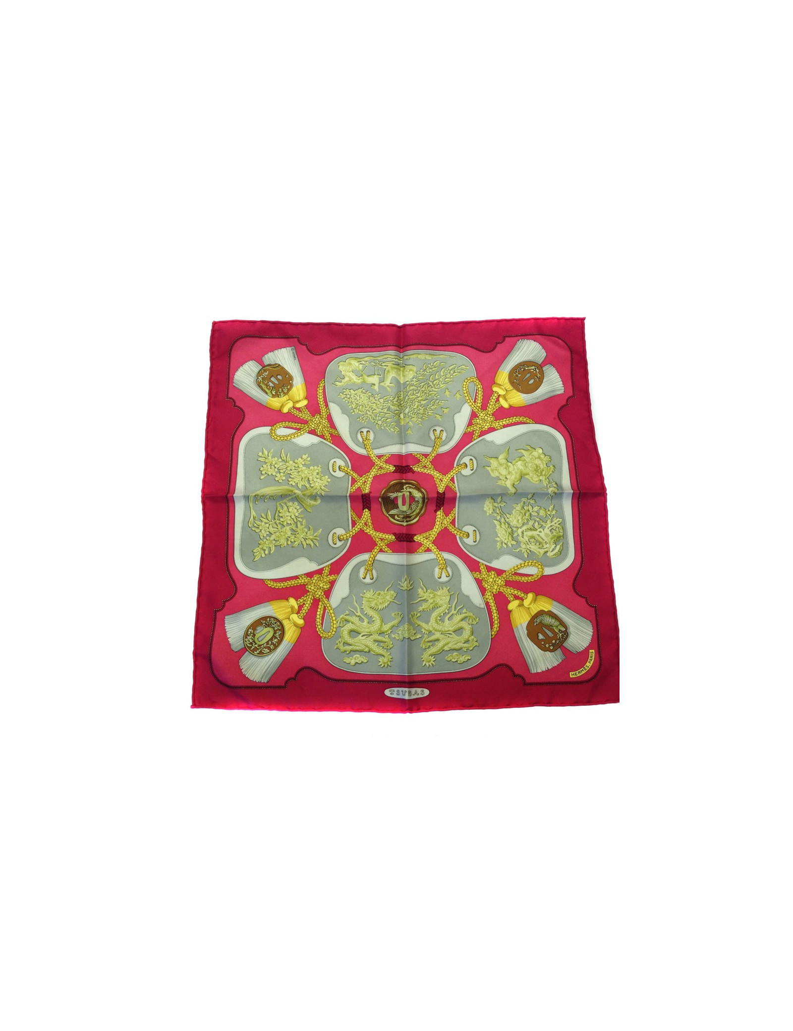 Gavroche "Tsuba" HERMES silk scarf pink