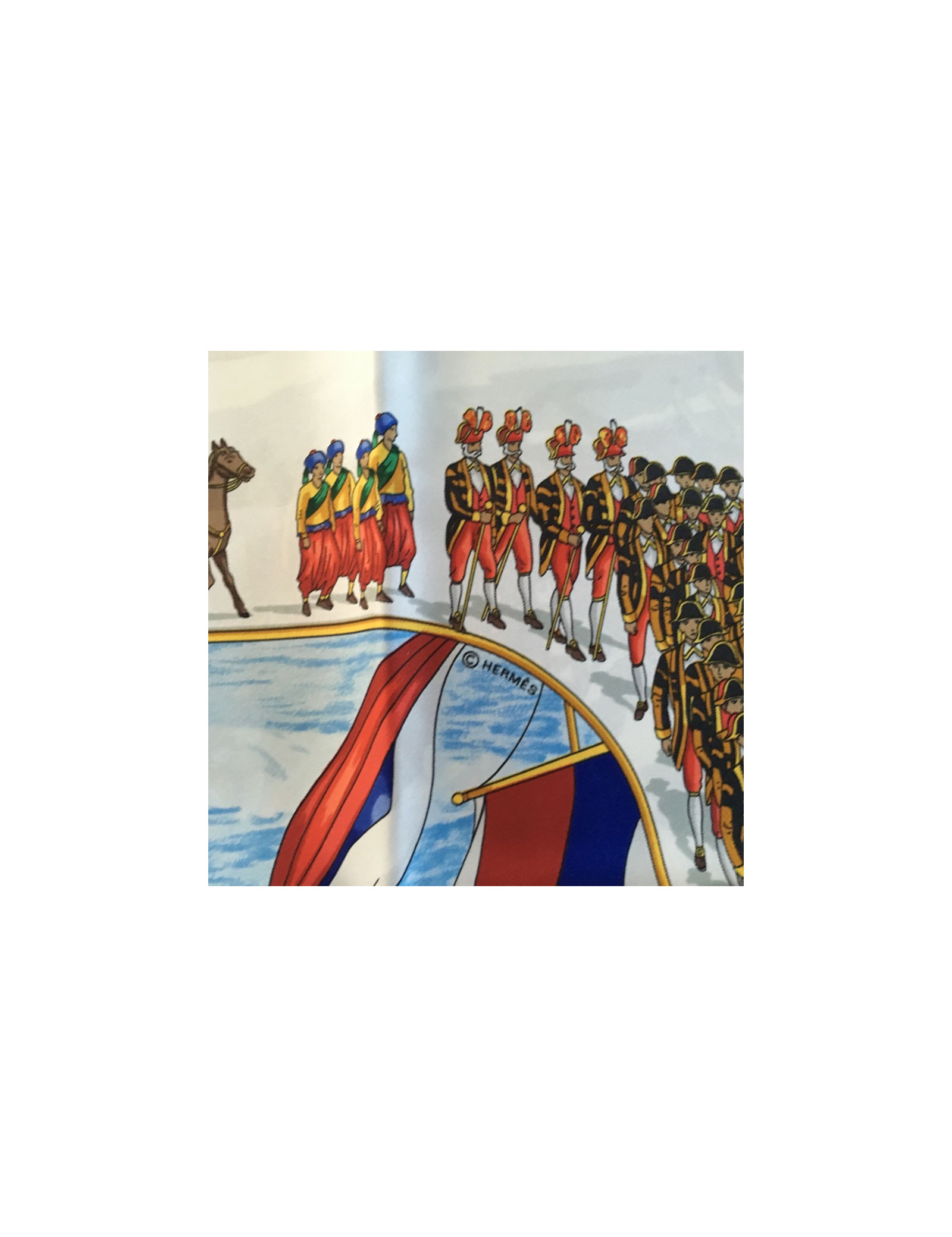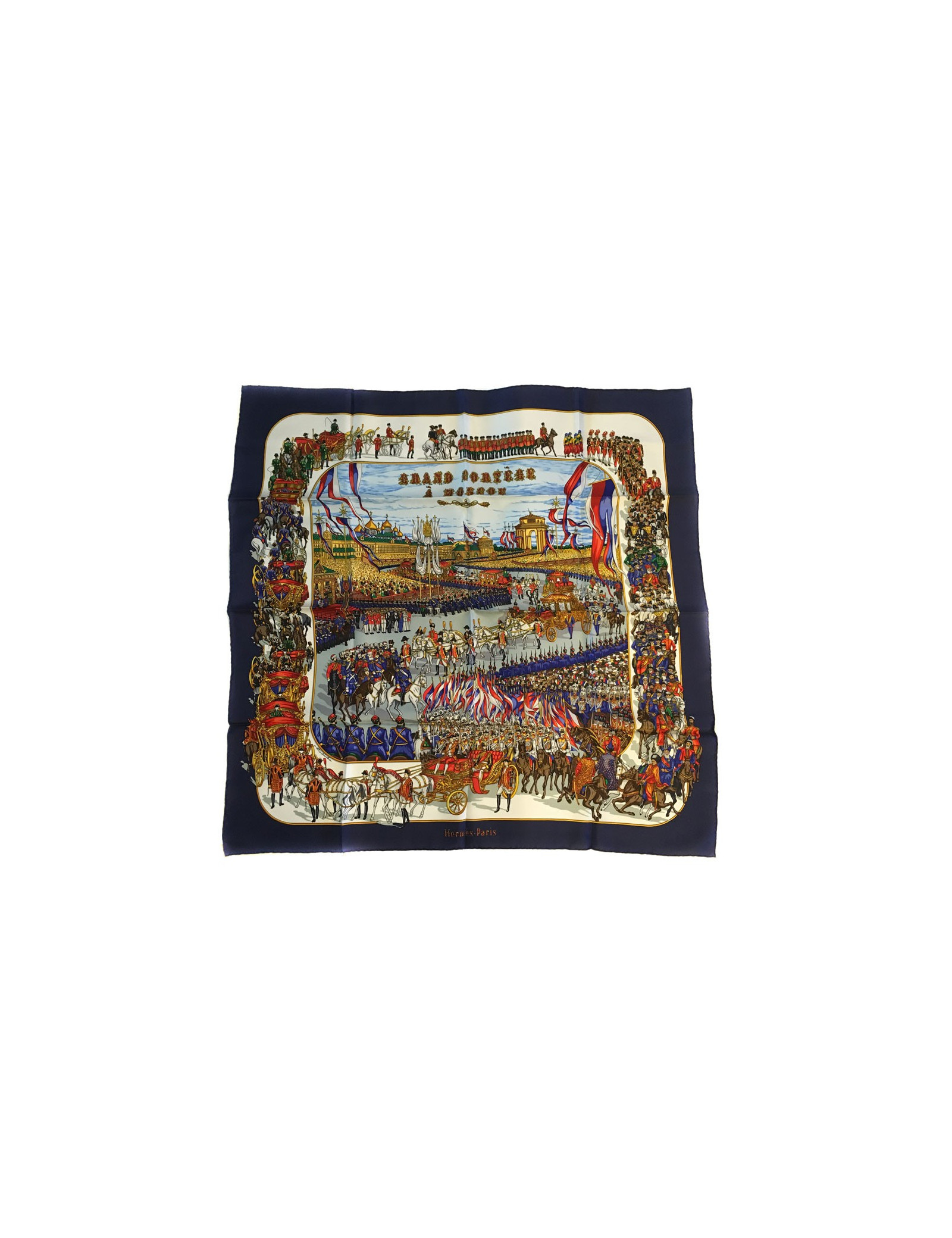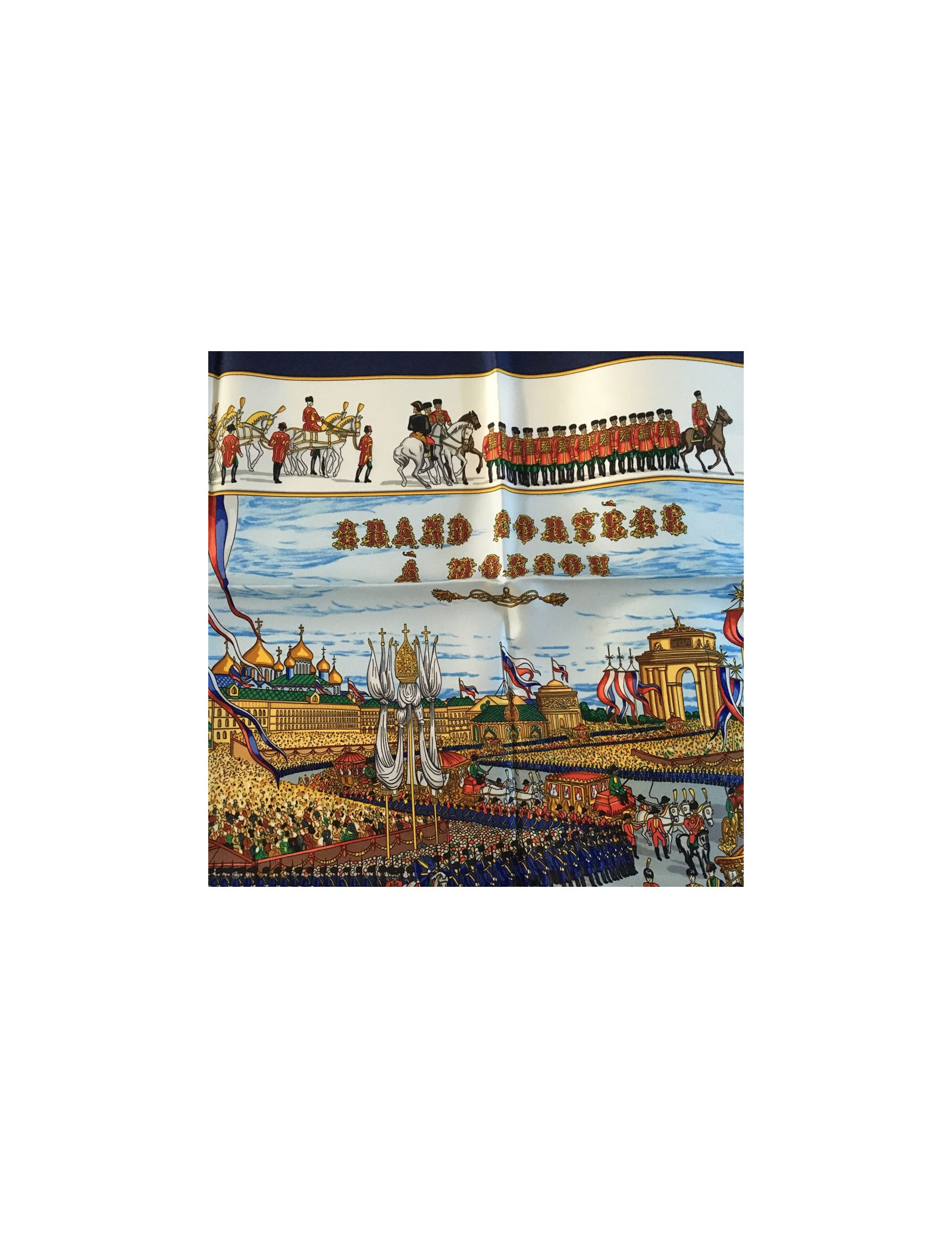 Square HERMES "Great procession in Moscow" in blue silk