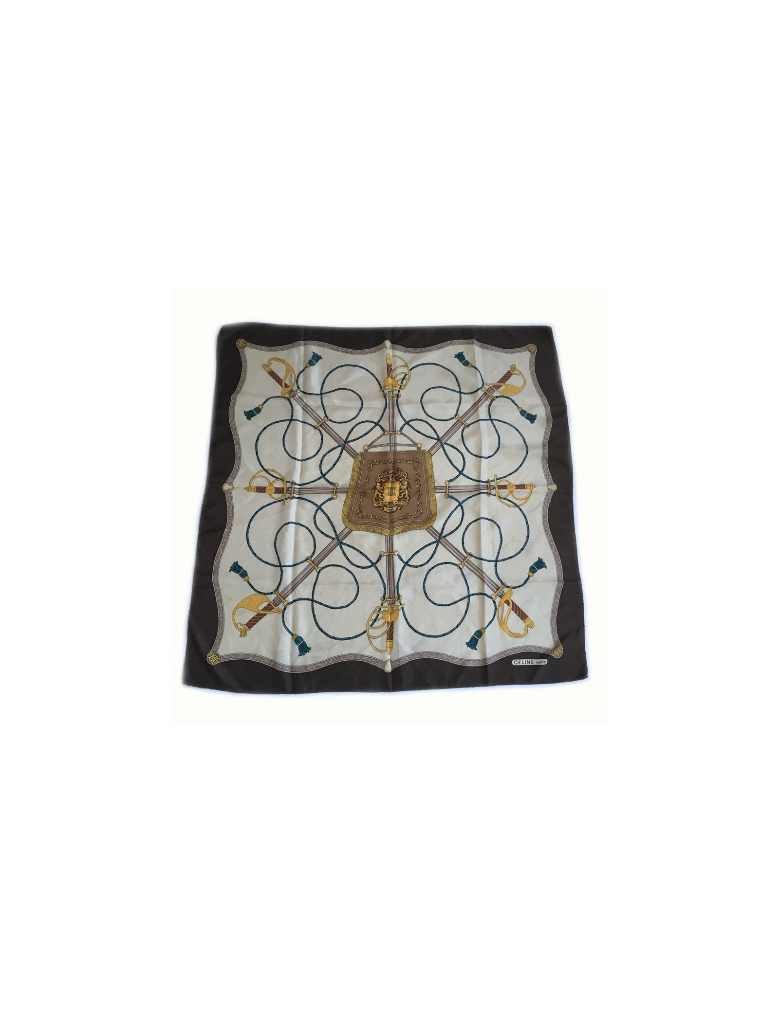 "A name, a style" CELINE scarf silk. Chocolate border, ecru background with multicolored patterns. A few spots on the headscarf (see photos). The trailer is spotless. In one condition.