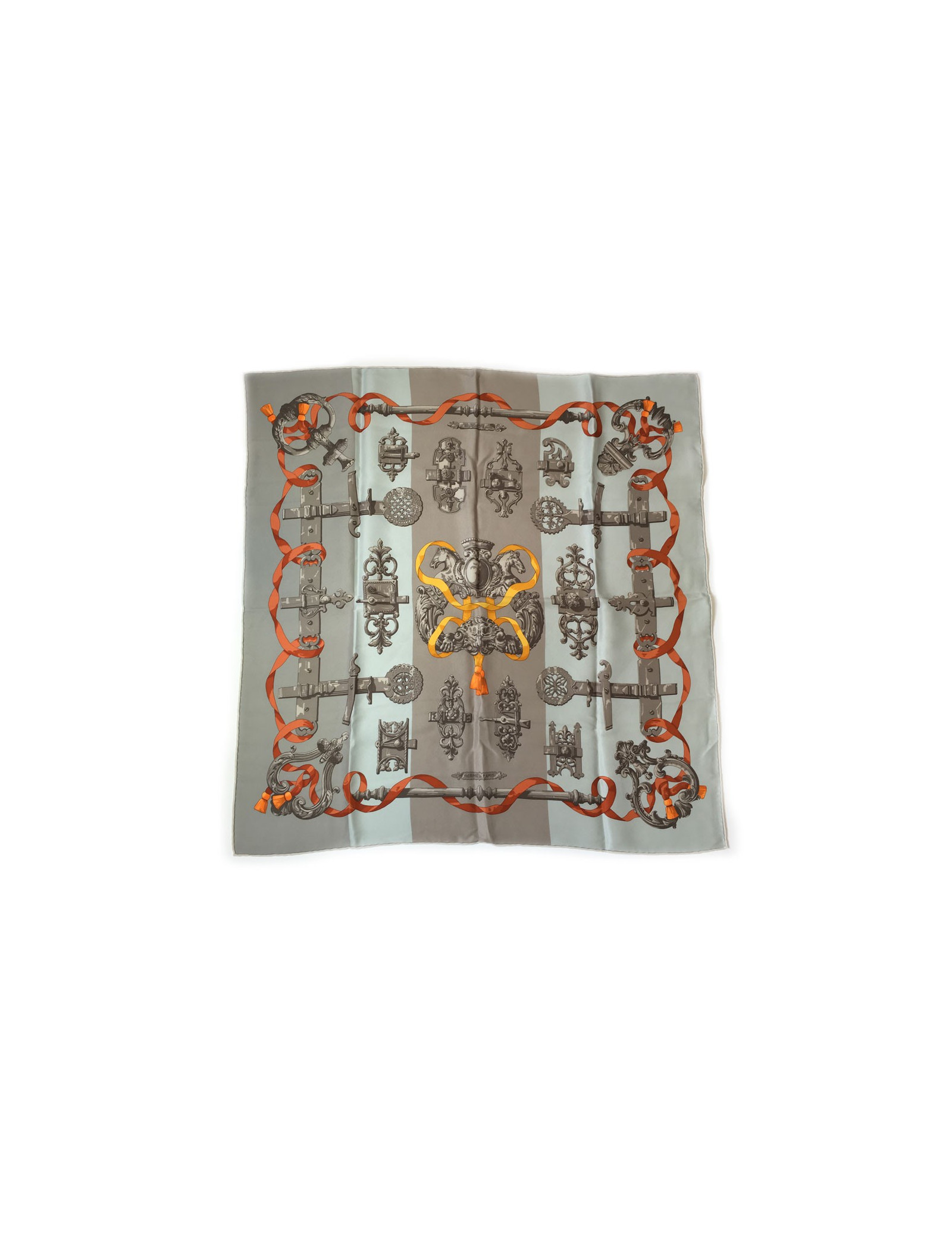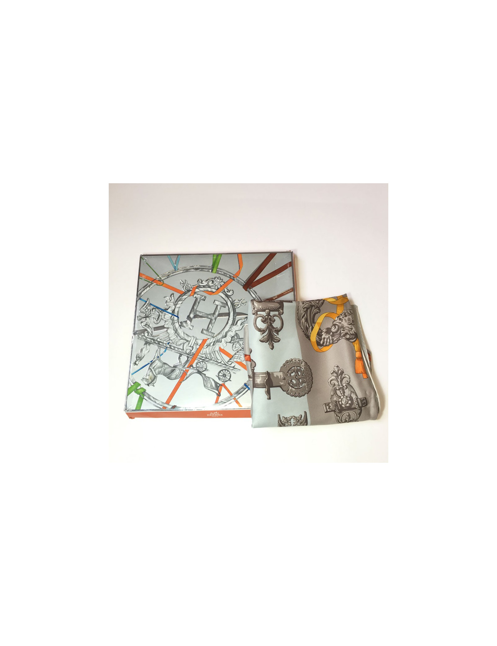 Hermès 'Ferronnerie' small scarf in gray and taupe silk