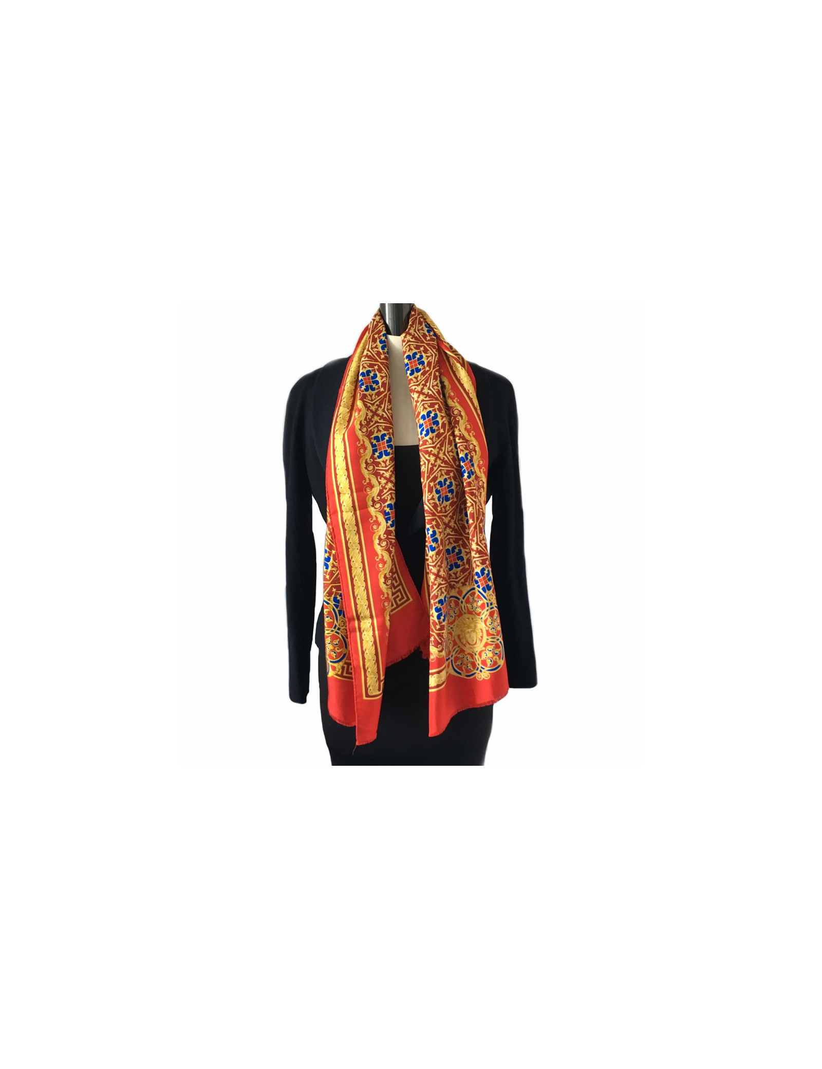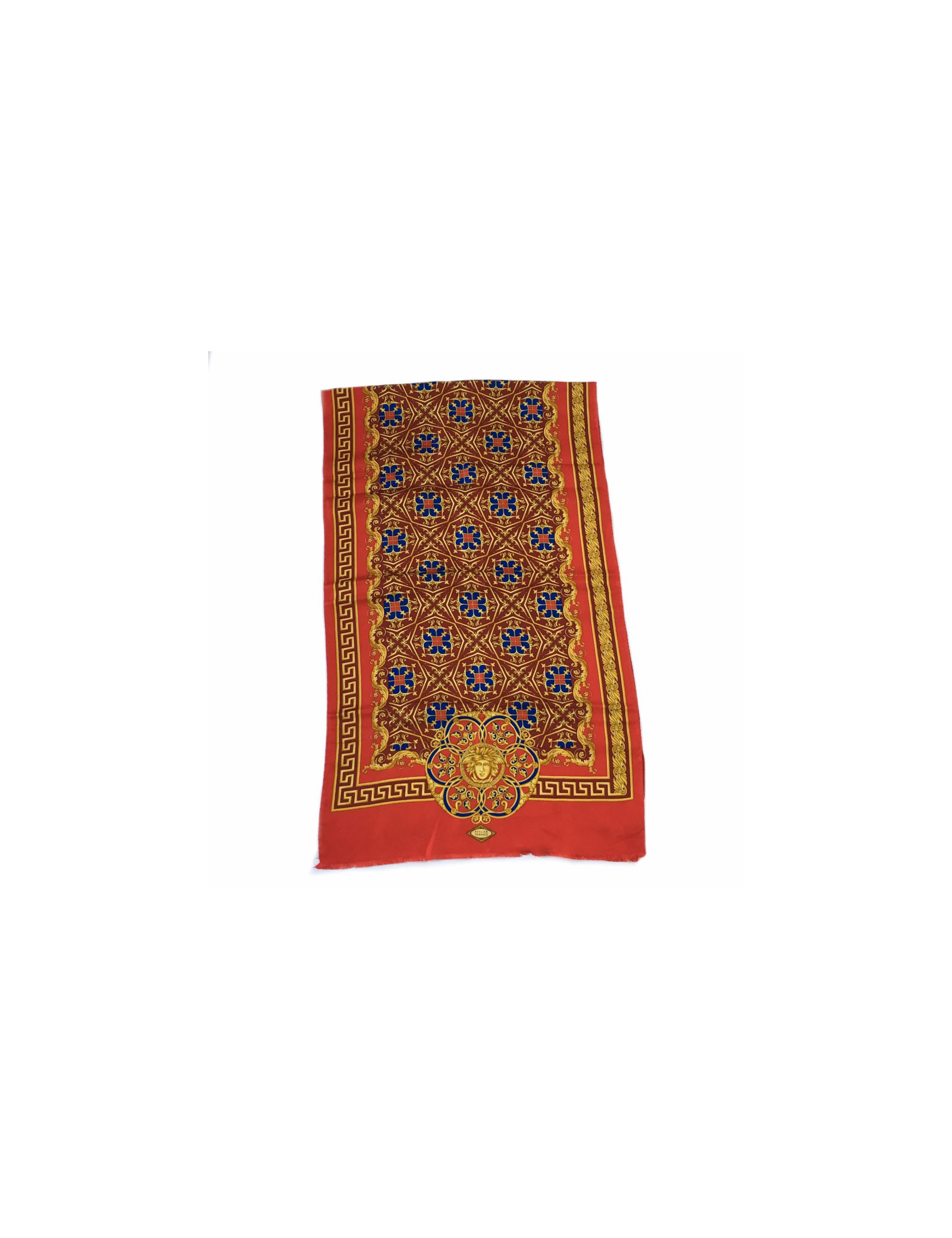 Scarf shop VERSACE silk red, Maroon, gold and blue. Small fringes along the ends. The trailer is in very good condition.