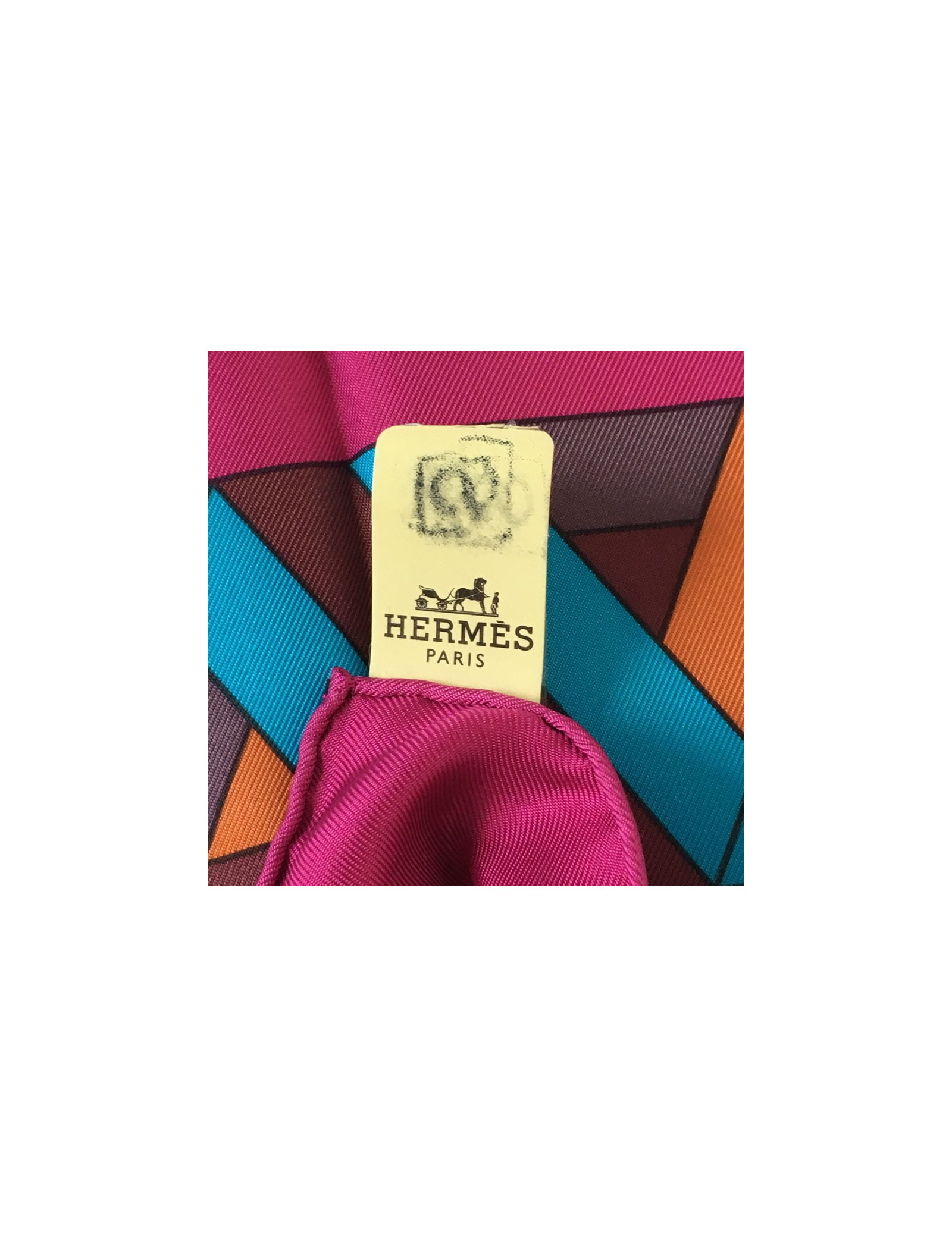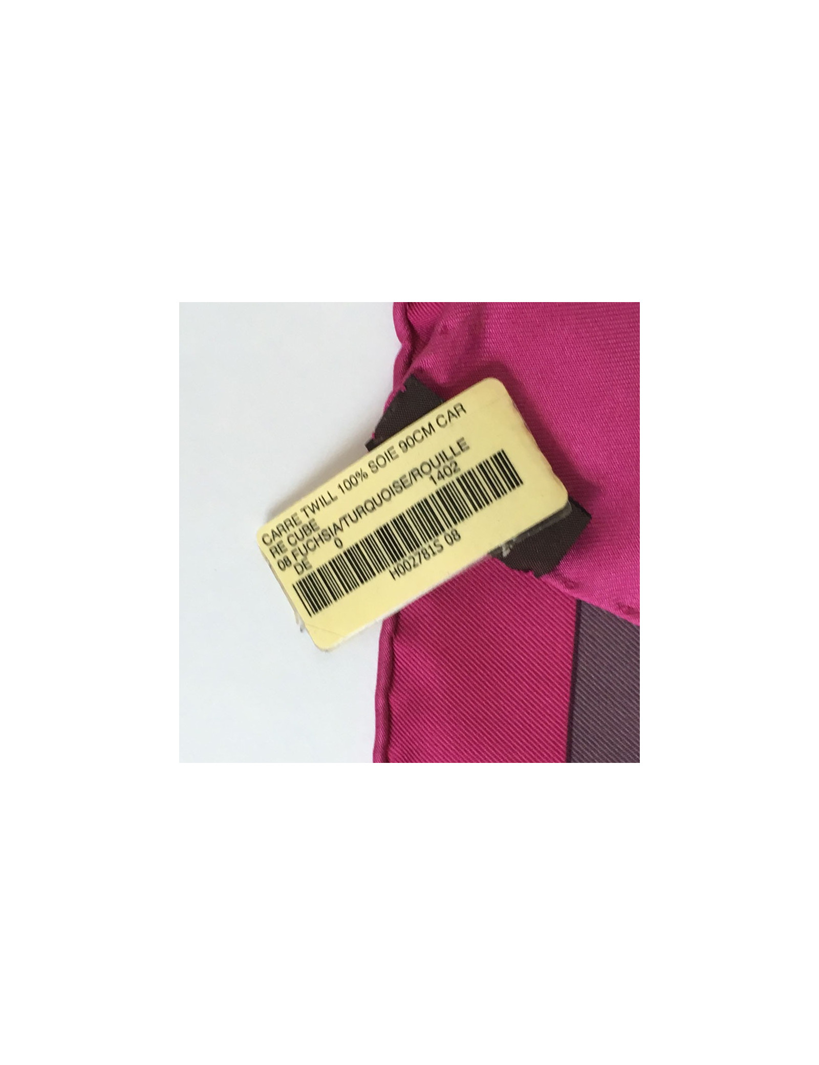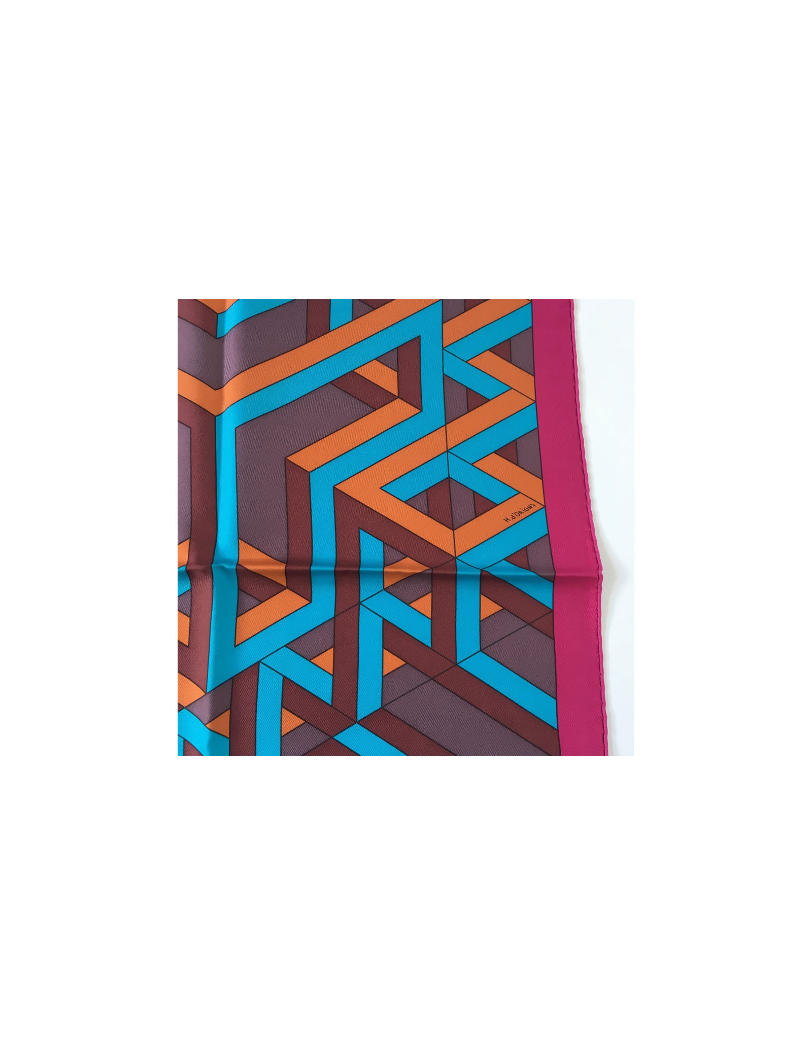 Hermès "Square Cube" in silk fuchsia, turquoise and rust