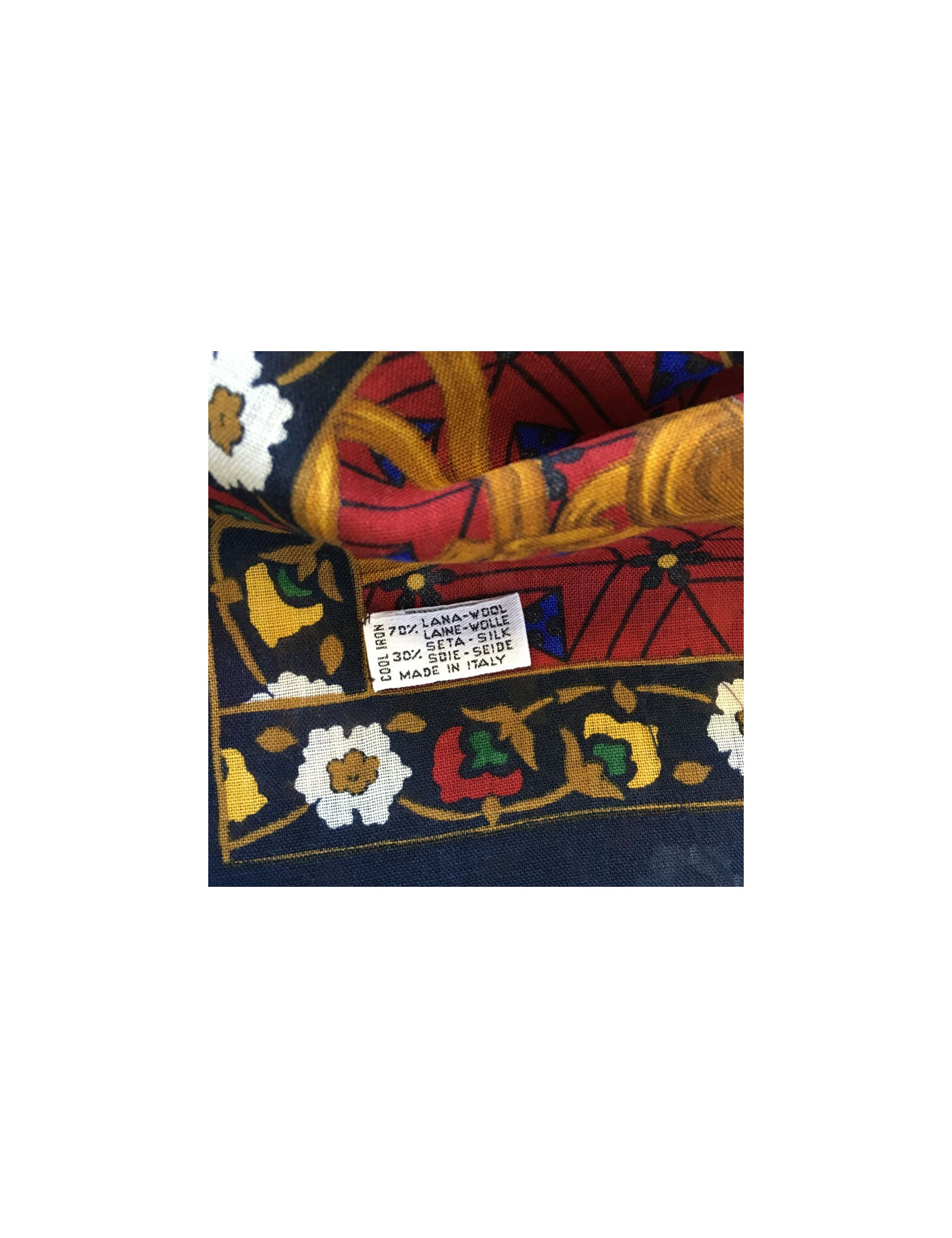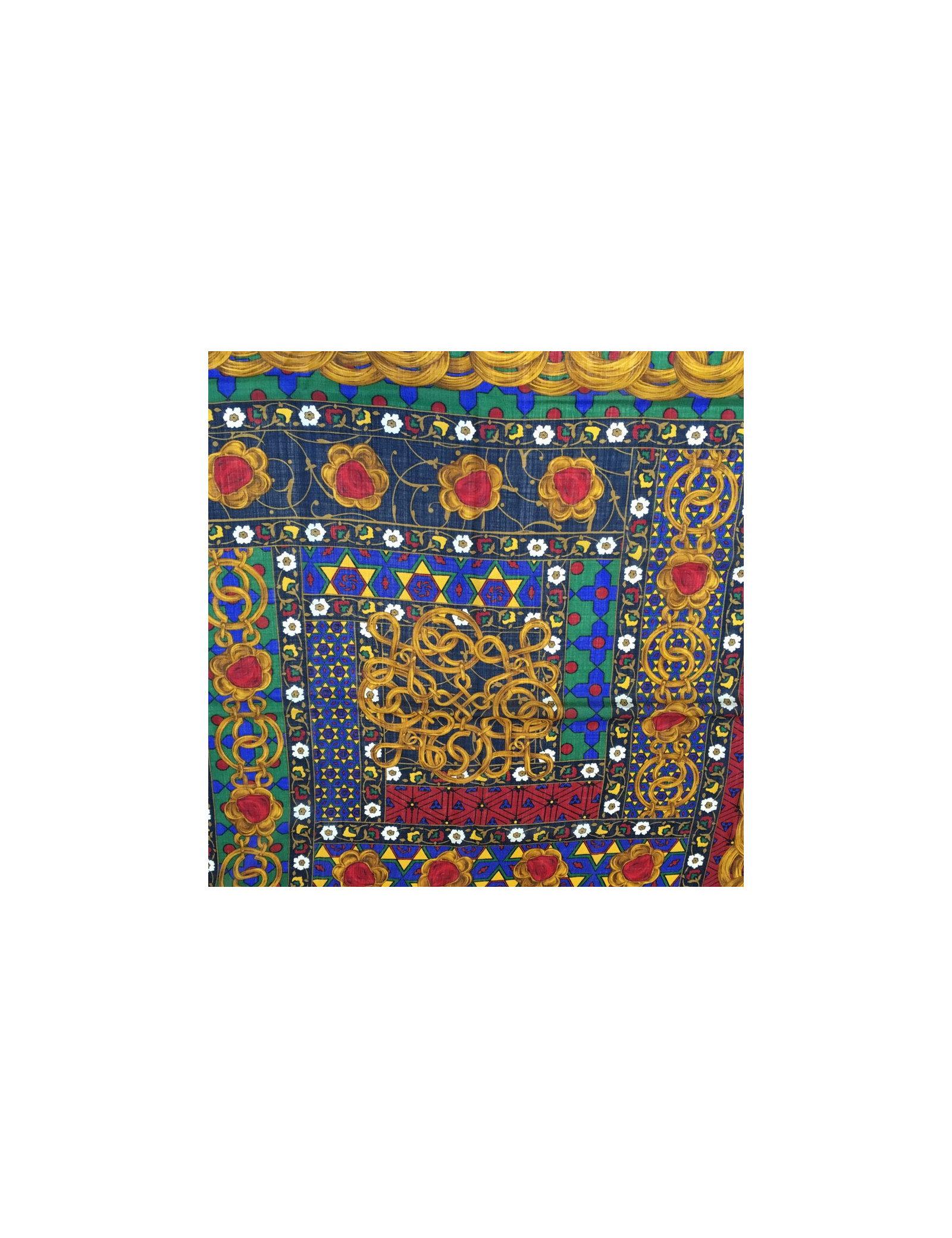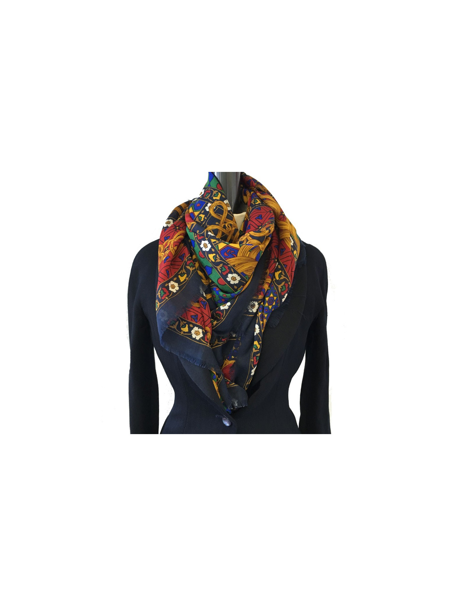 Last items in stock SCARVES AND SHAWLS CHRISTIAN LACROIX large silk voile scarf CHRISTIAN LACROIX 36420 160.00 € CHRISTIAN LACROIX patchwork silk scarf Condition : very goodMade in ItalyMaterial : silkColors : red, burgundy, orangeMeasurements : 135 x 69 cmYear : vintageDetails : LACROIX shawl in silk voile. Red, burgundy and orange patchwork geometric motifs Add to cart