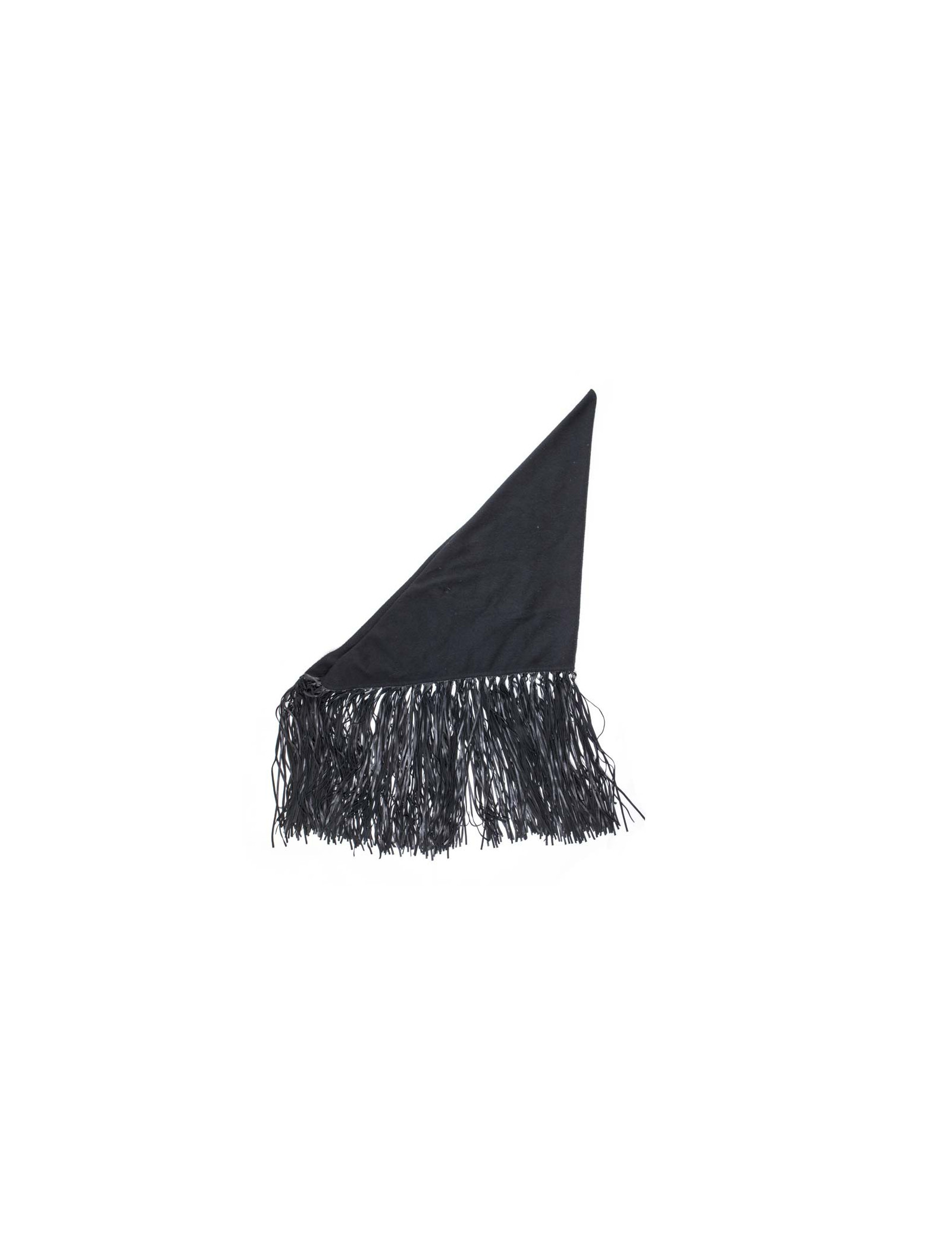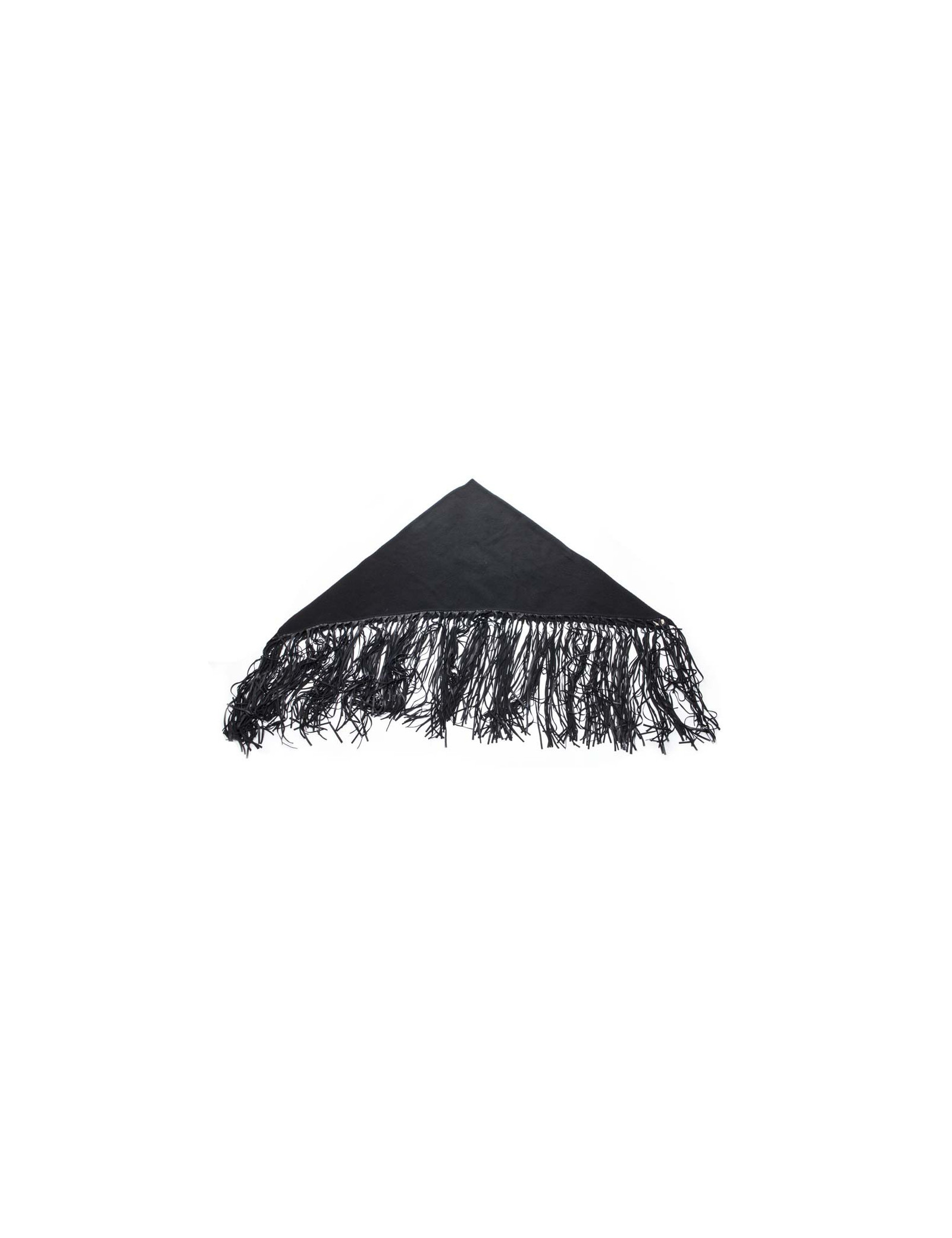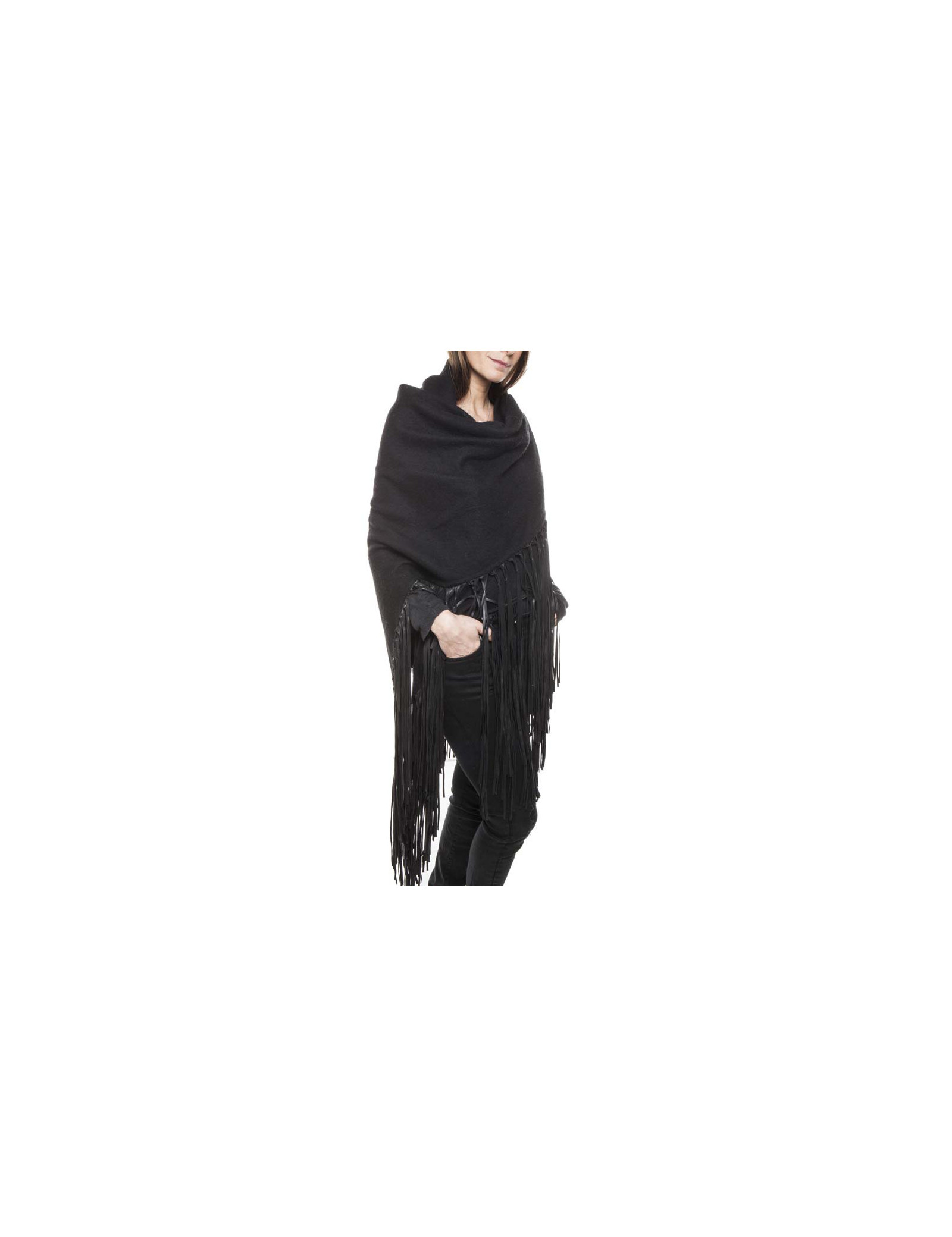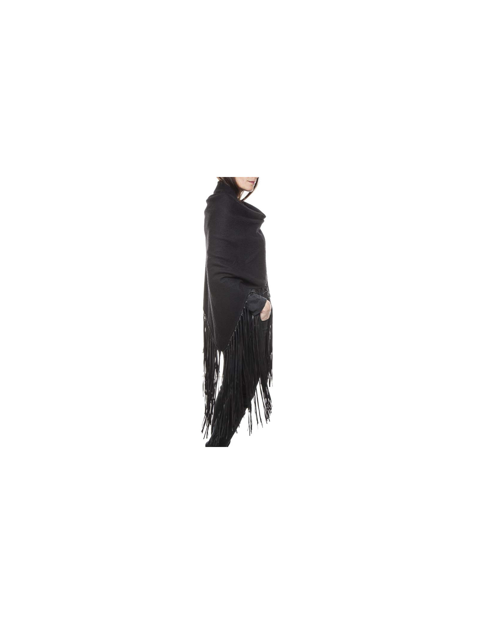 HERMES black shawl in wool and cashmere with fringes in lamb leather