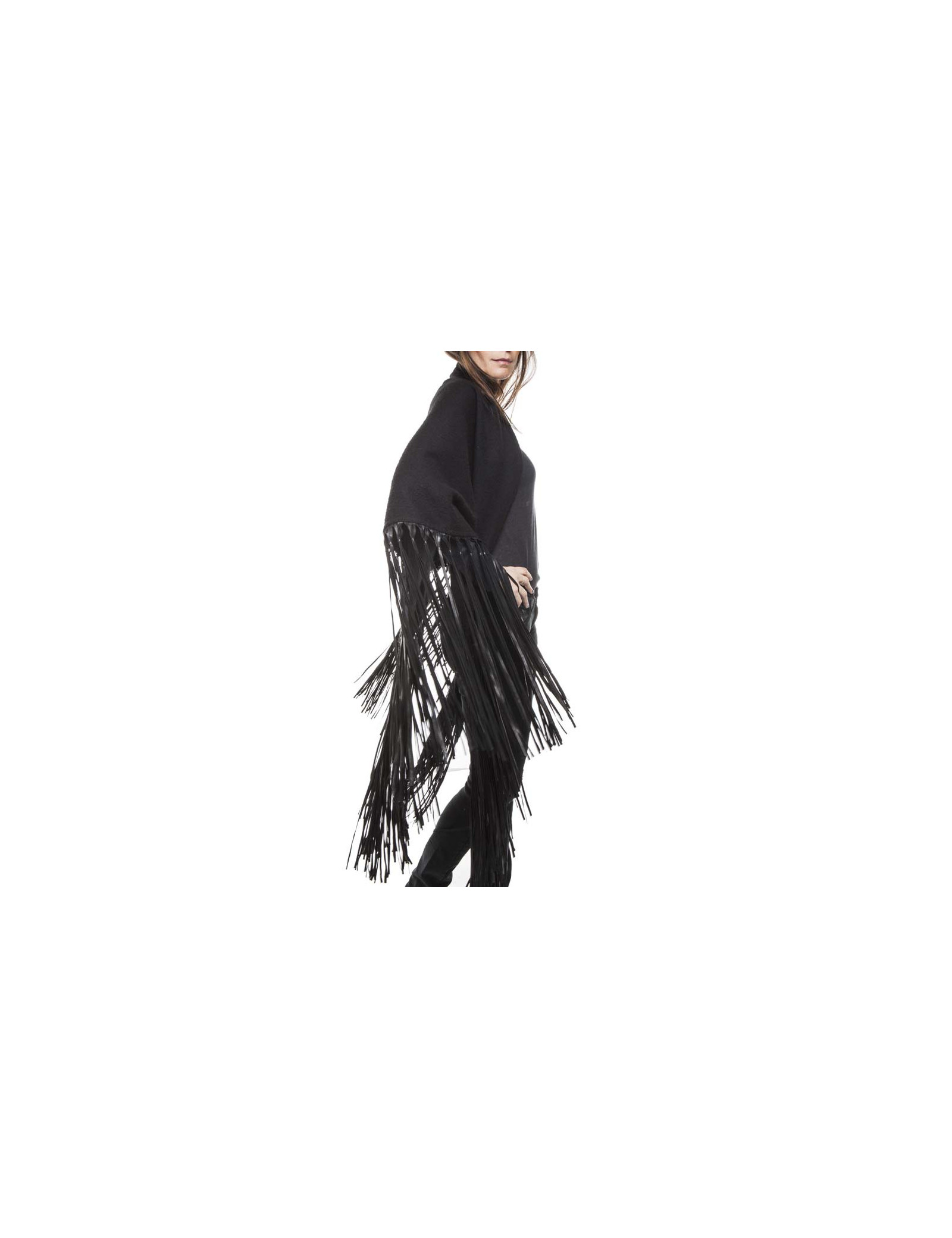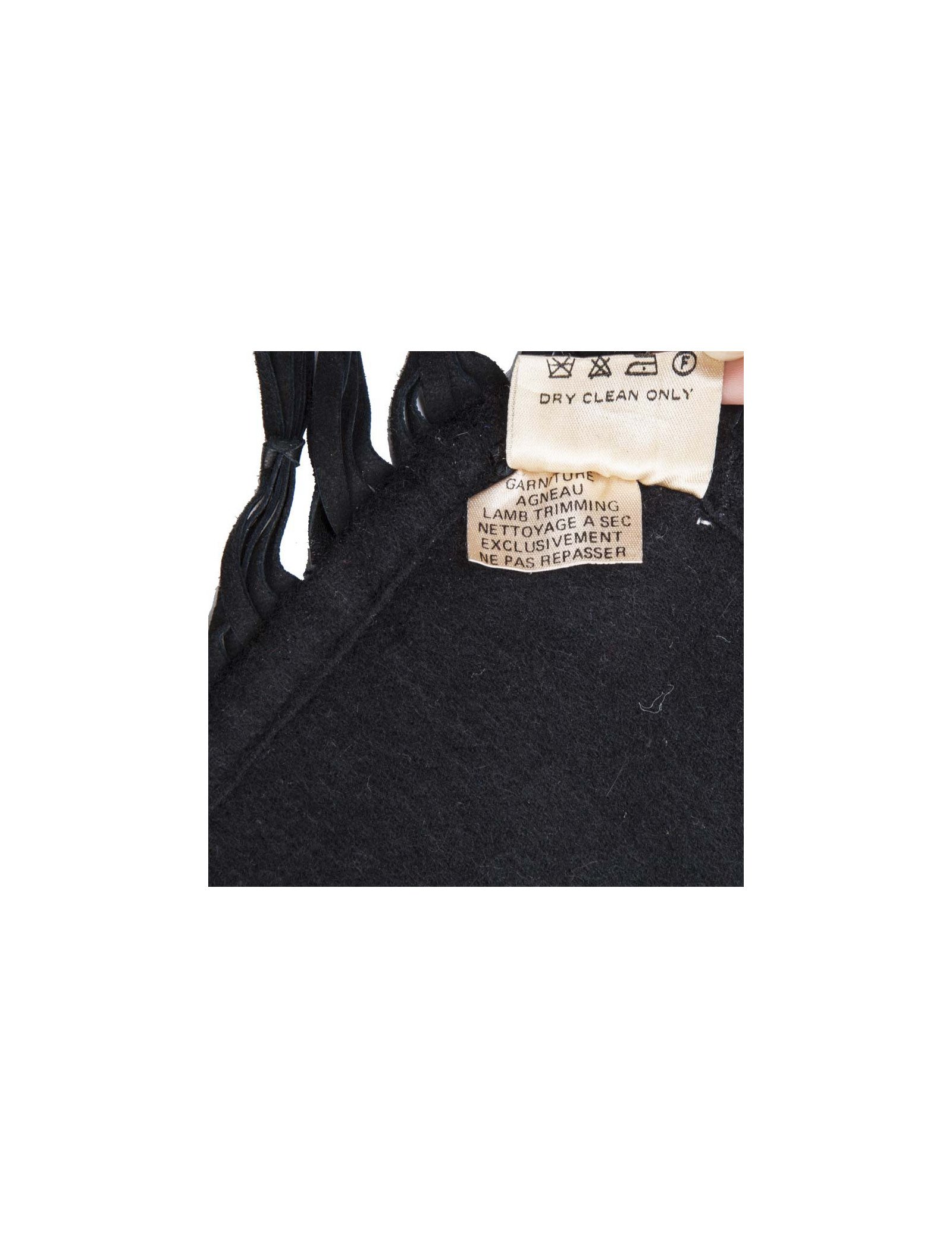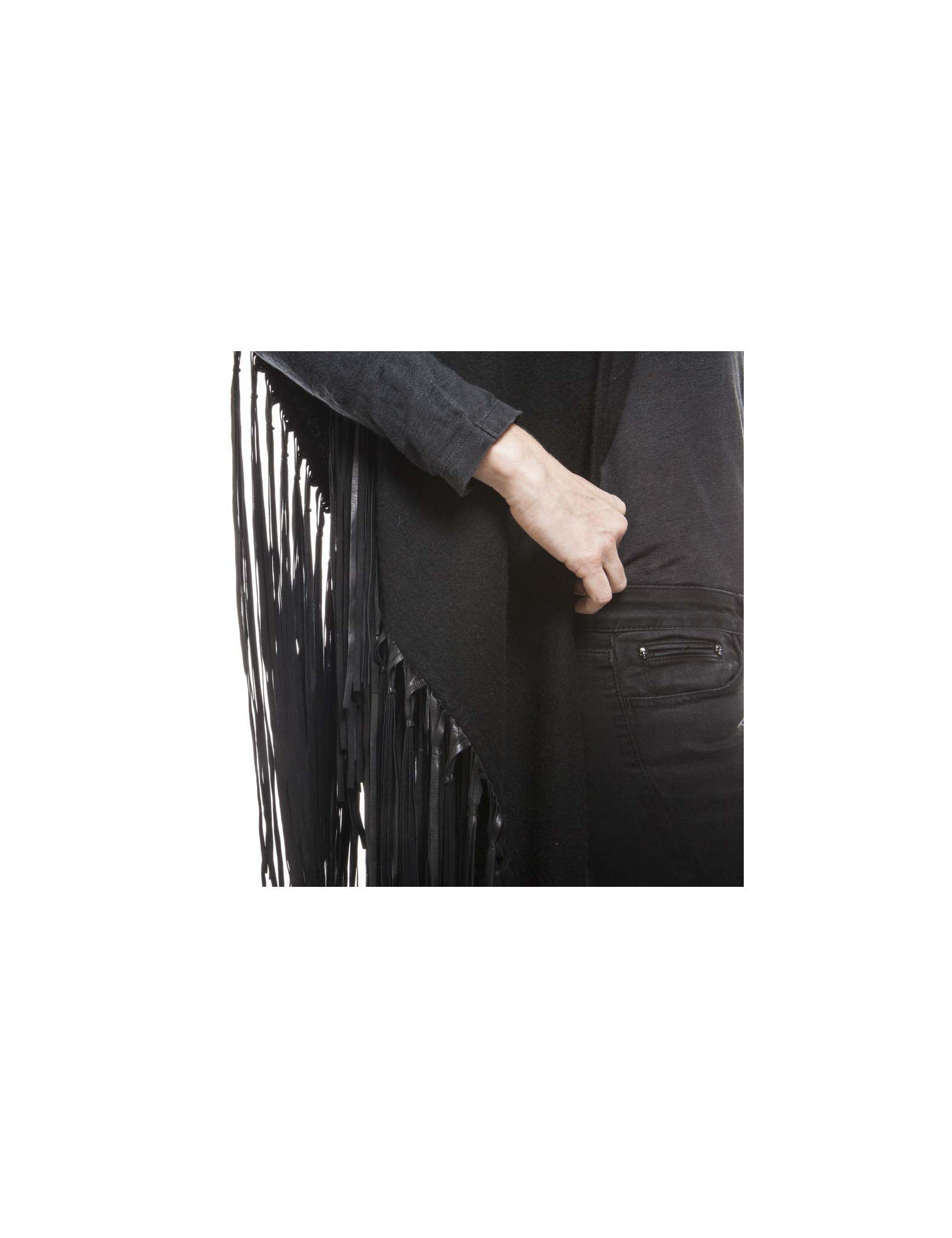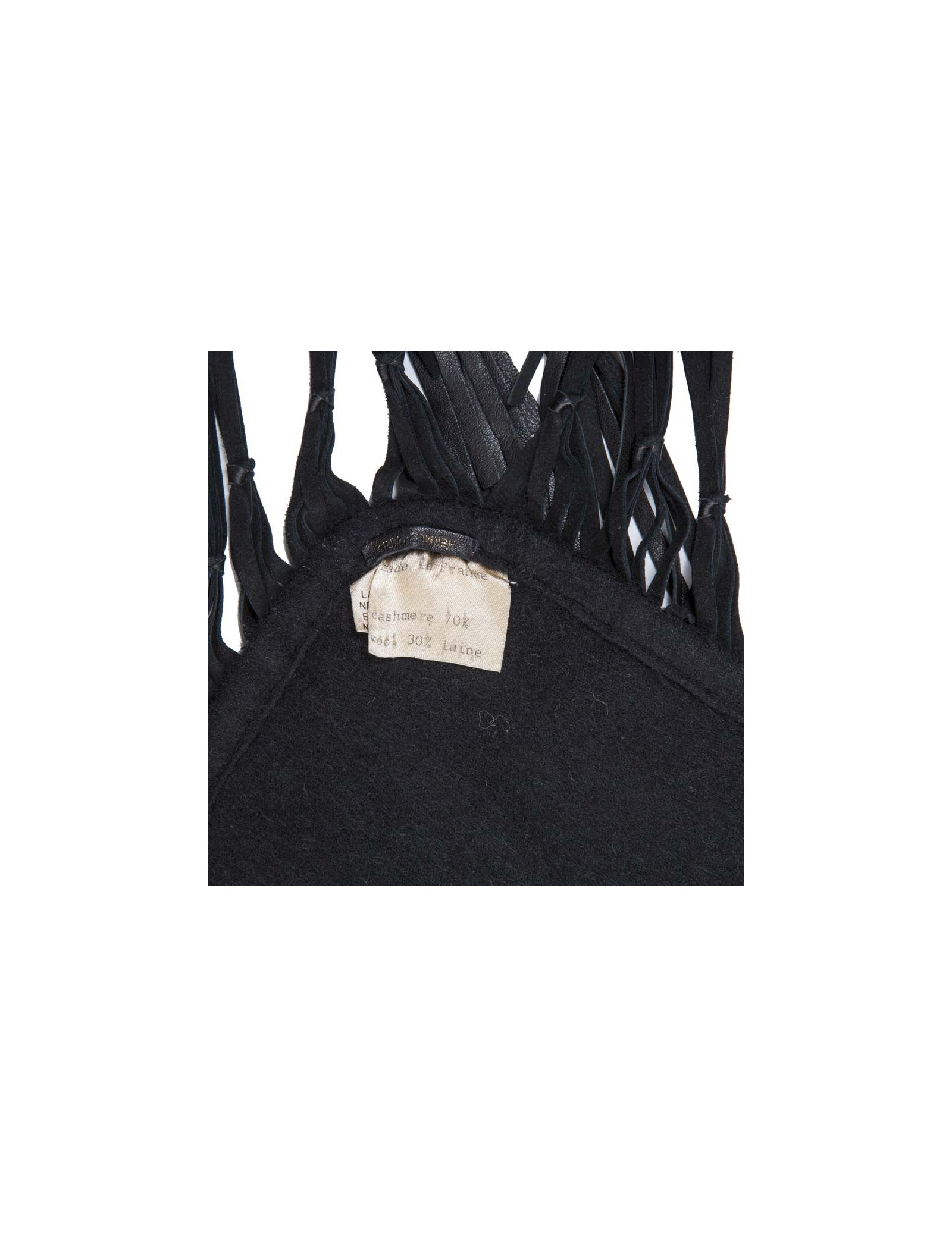 Very researched. Hermes shawl in black cashmere and black wool with lamb leather fringes.