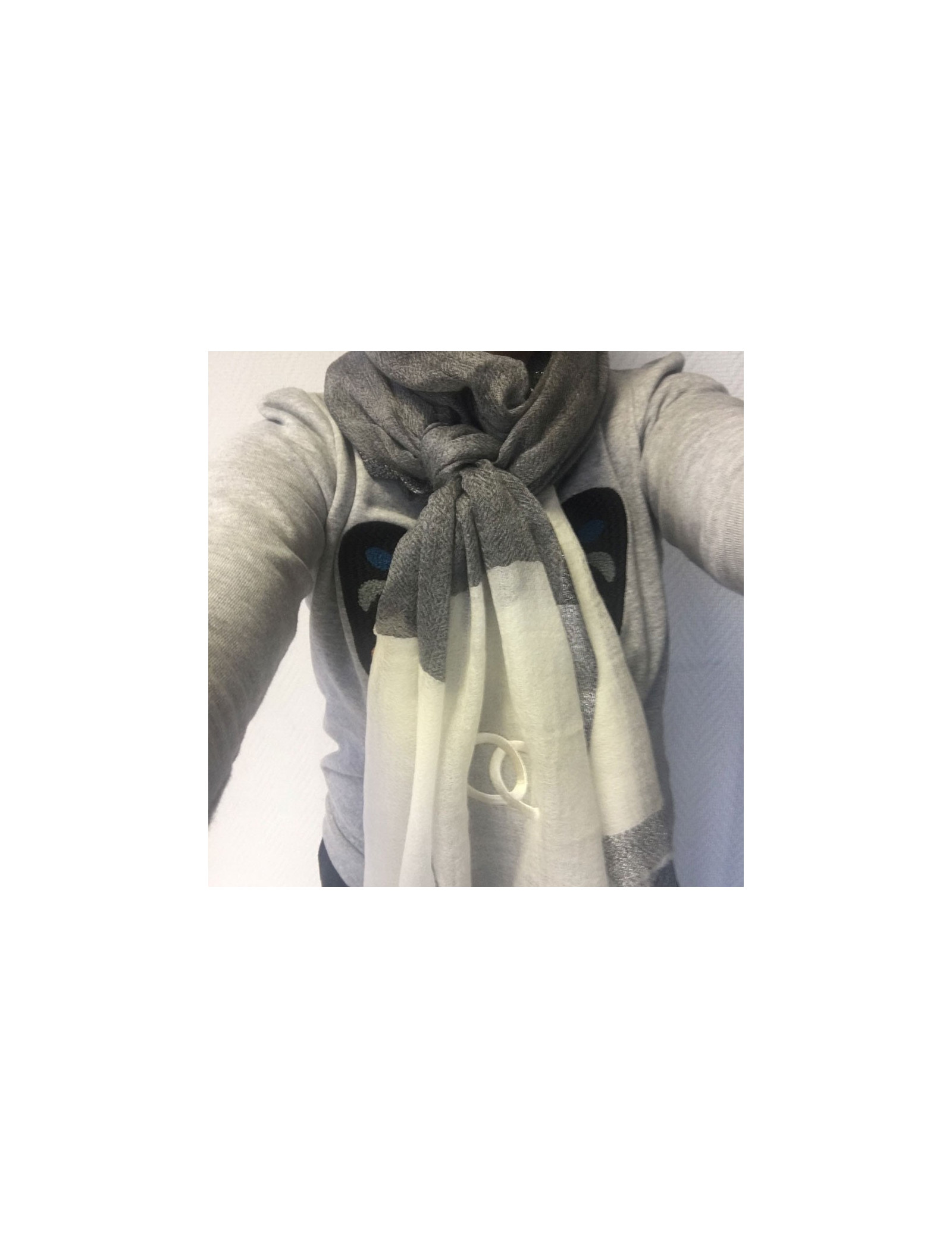 CHANEL shawl in ivory and anthracite silk