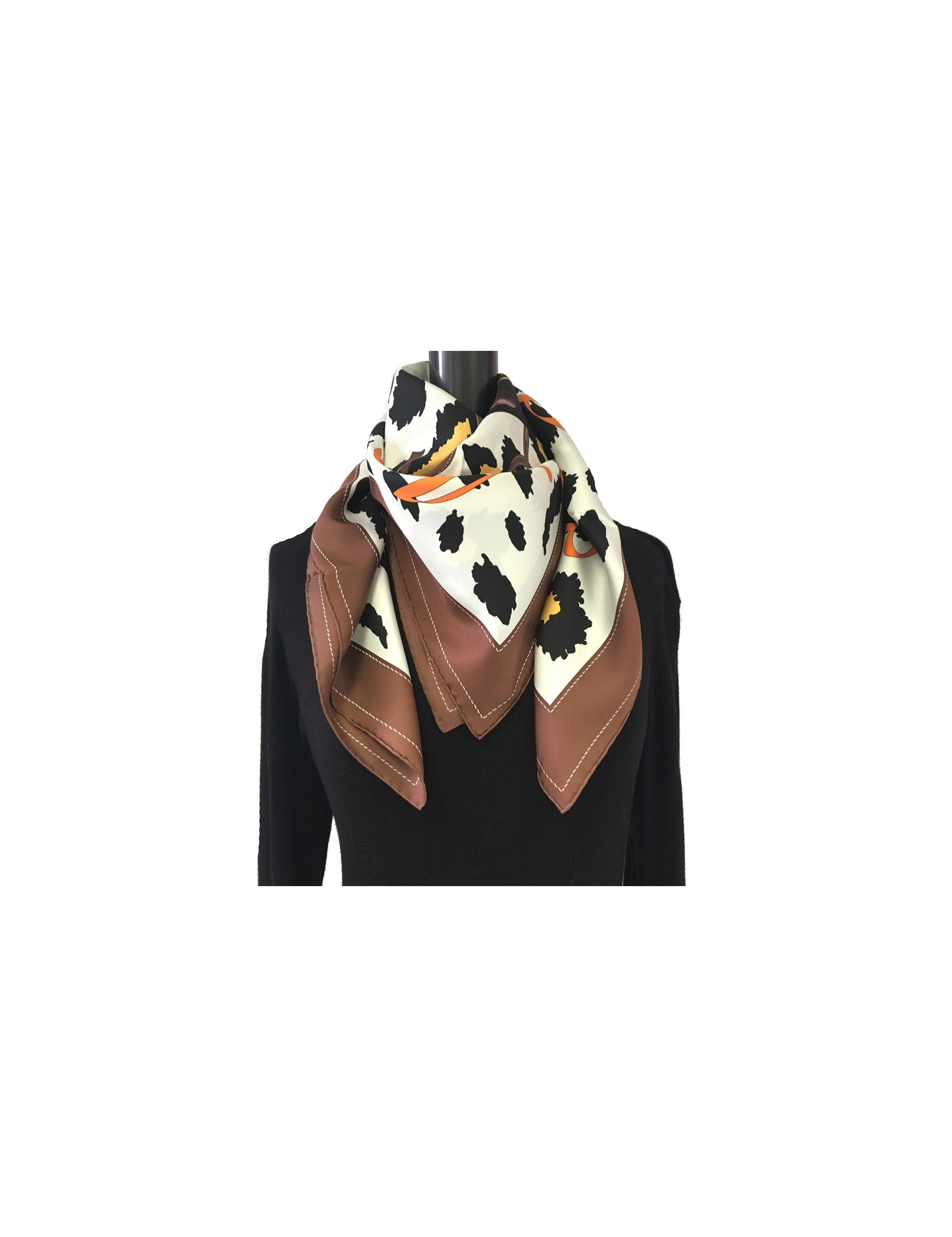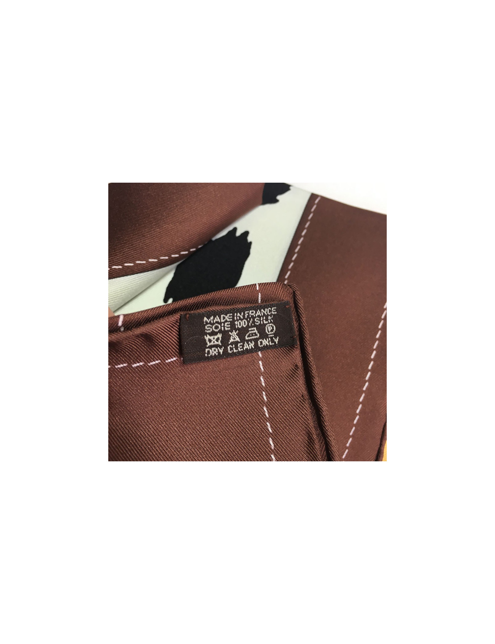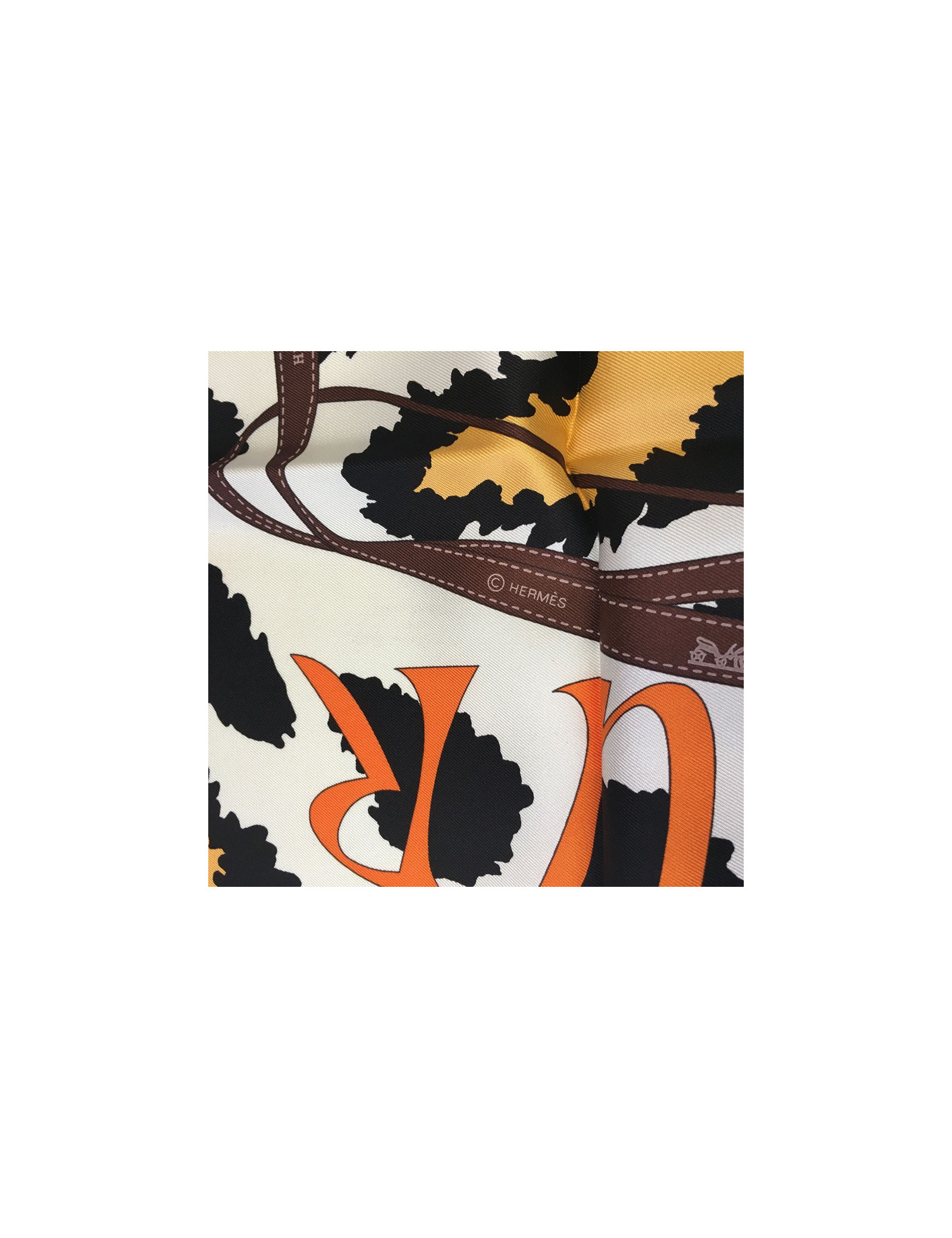 HERMÈS 'Madame Monsieur' scarf in ivory silk and brown border