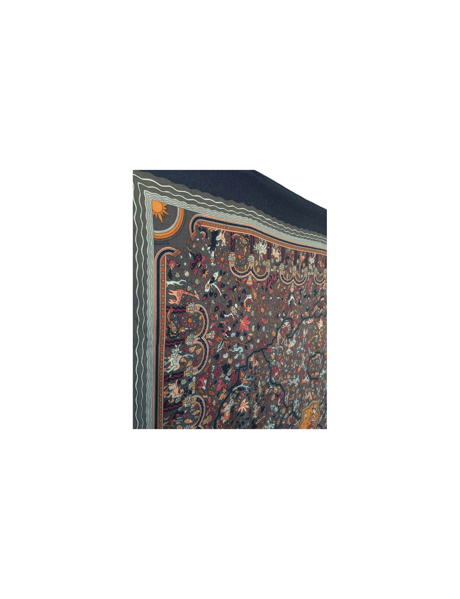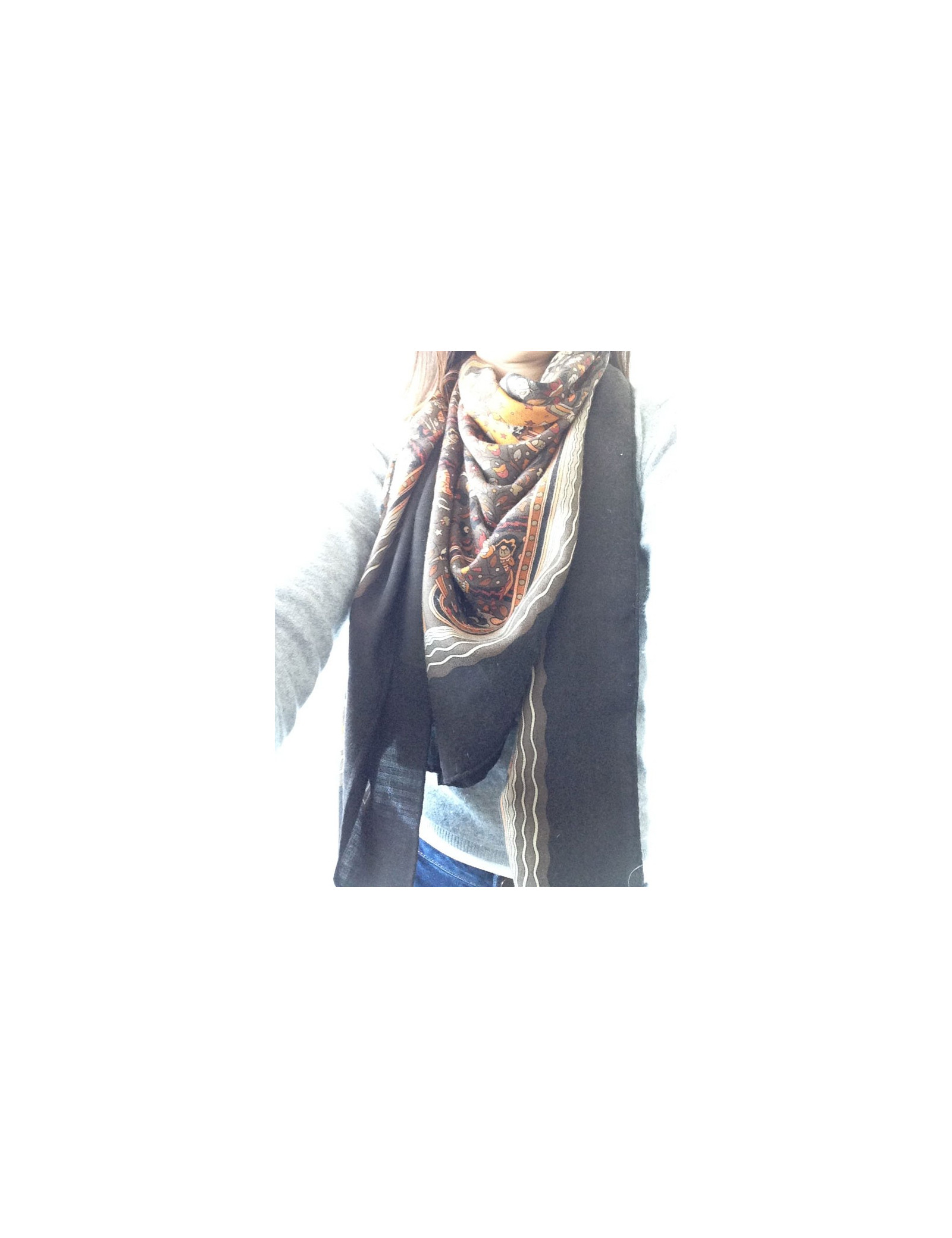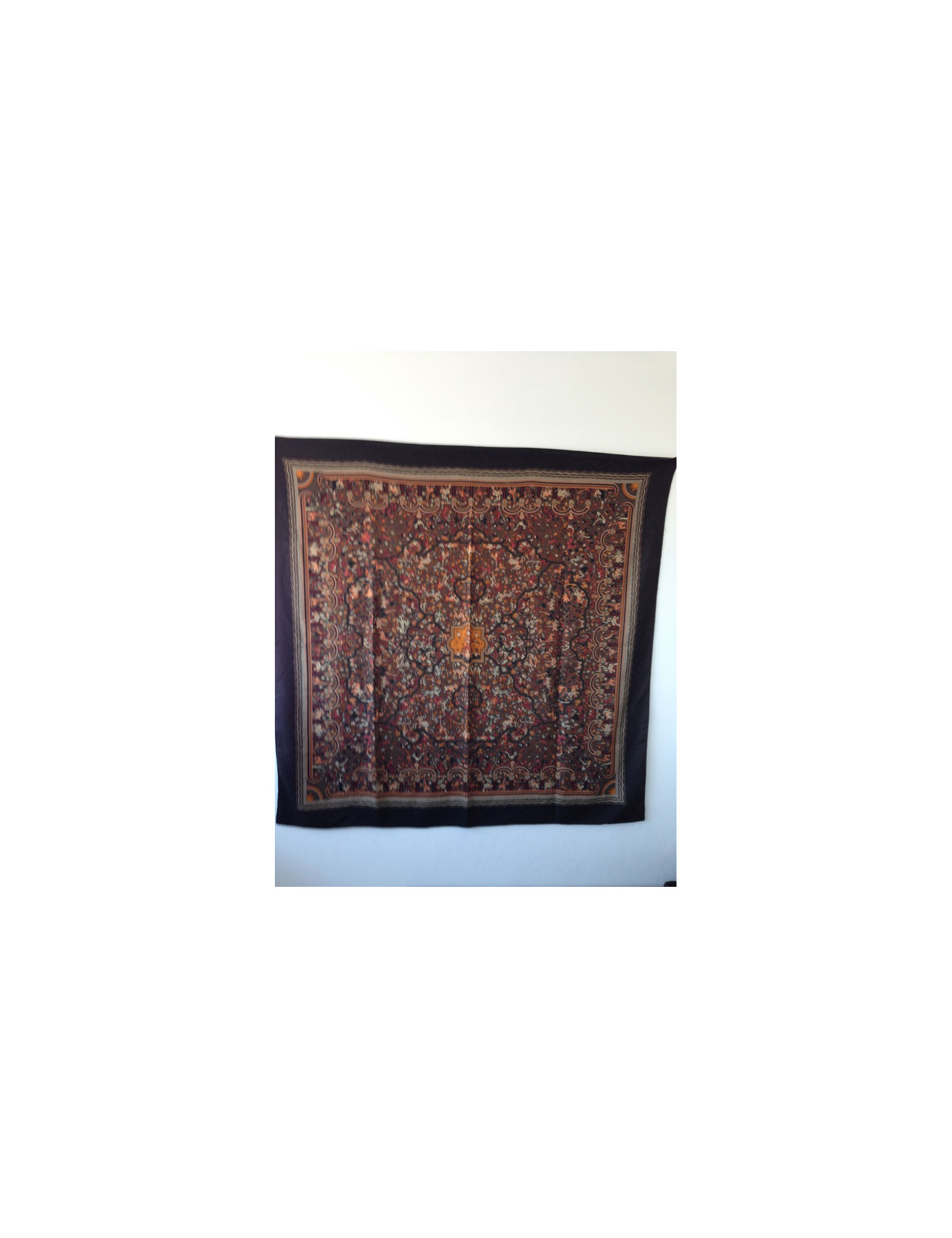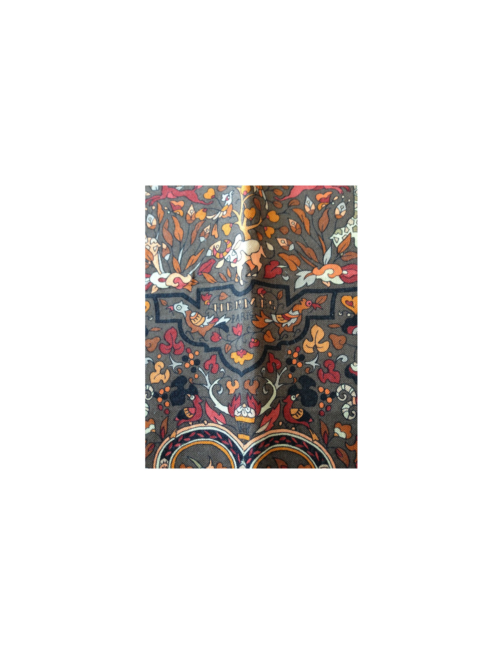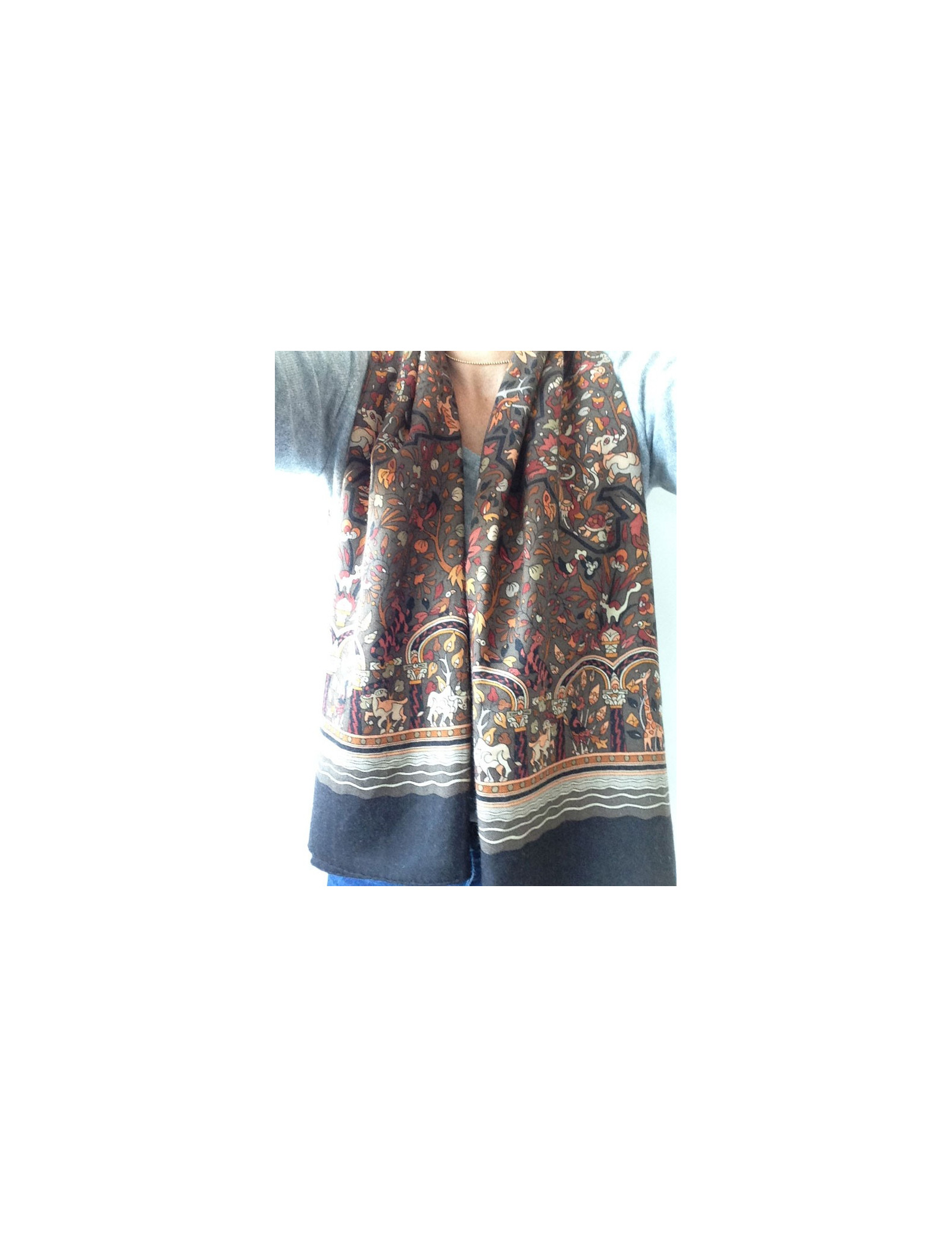 Beautiful shawl Hermes cashmere and silk, in shades of Brown, representing animals.
