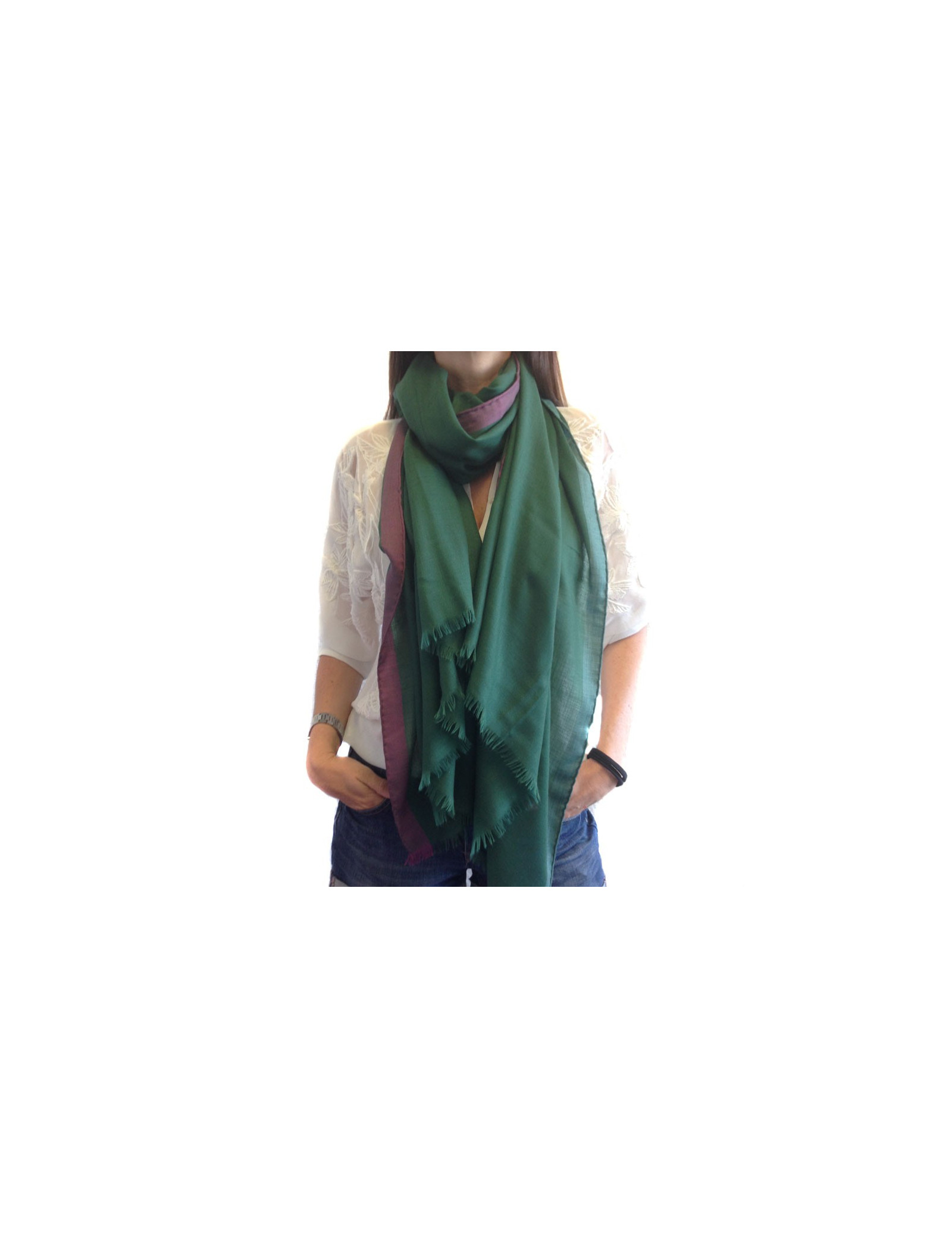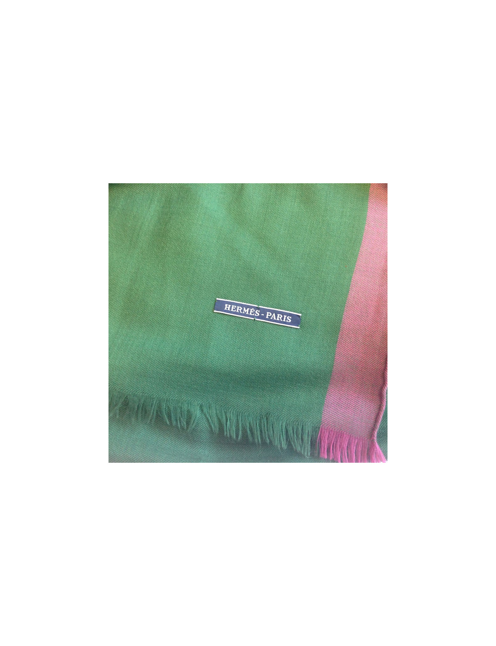 Shawl HERMES fringe green English silk