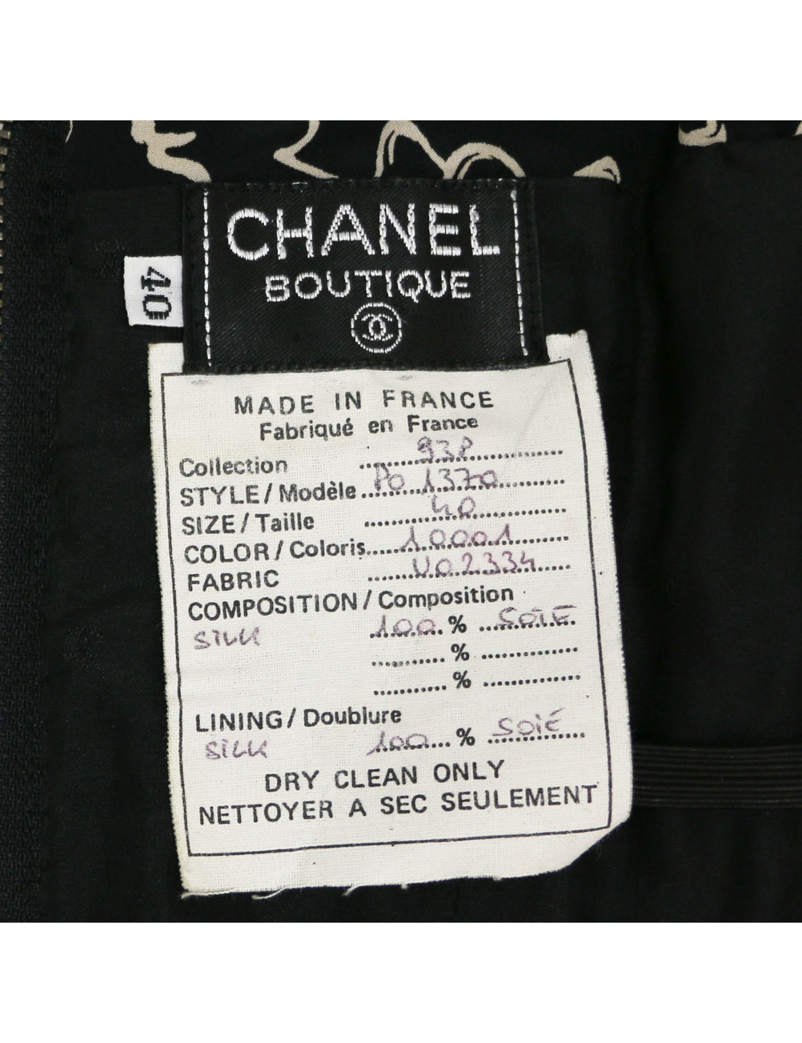 SETS CHANEL grey suit Size 40 FR CHANEL 32484 3,100.00 € CHANEL black ang grey suit ( skirt and jacket) Condition : very goodMade in FranceSize : 40FRMaterials : wool, raw silkLining: silkColors - jacket : marled black, skirt : blackMeasurementsJacket : shoulders 40 cm, under chest 45 cm, height 65 cm, sleeve length 60 cm, wrist circumference 25 cmSkirt: total length 55 cmDetails : black contrasting stripe, 13... Add to cart