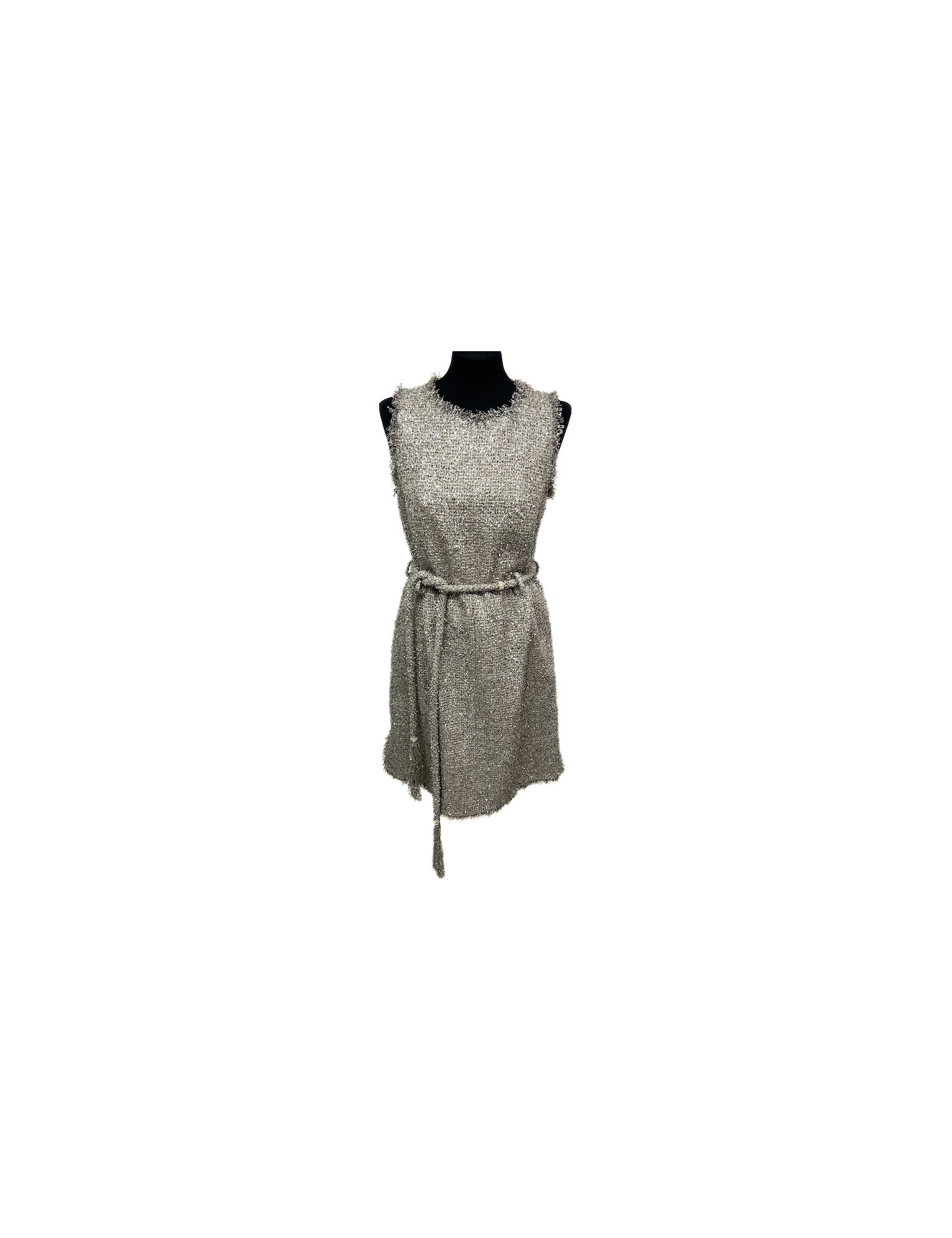 Sold SKIRTS All CHANEL TOP T 38 en SKIRT T 40 en CHANEL 19832 3,500.00 € Beautiful set Chanel, top t 38 en and skirt t 40 FR, material: 70% metal and 23% polyamide. New condition. Recent collection. The top and the skirt are delicate lace with threads of gold and silver. The skirt is lined 100% silk flesh color. has part transparent to the top is also in 100% silk. Never worn. Size flat: top: length of the ramp, 16 cm, 44 cm,... View