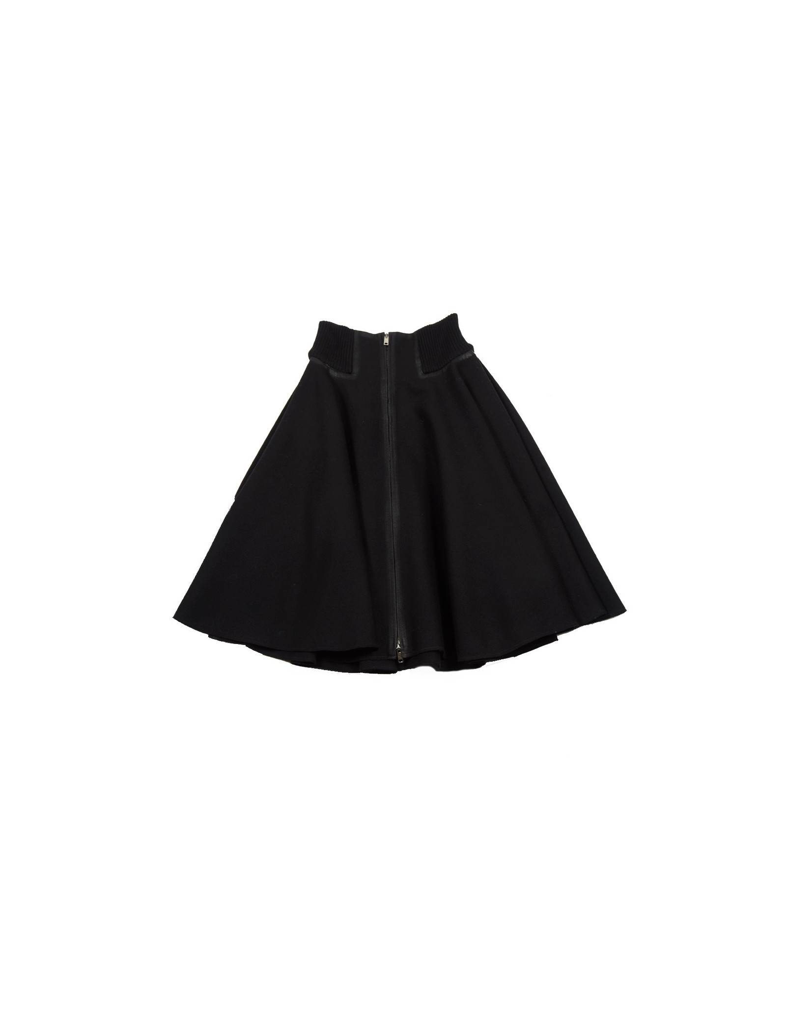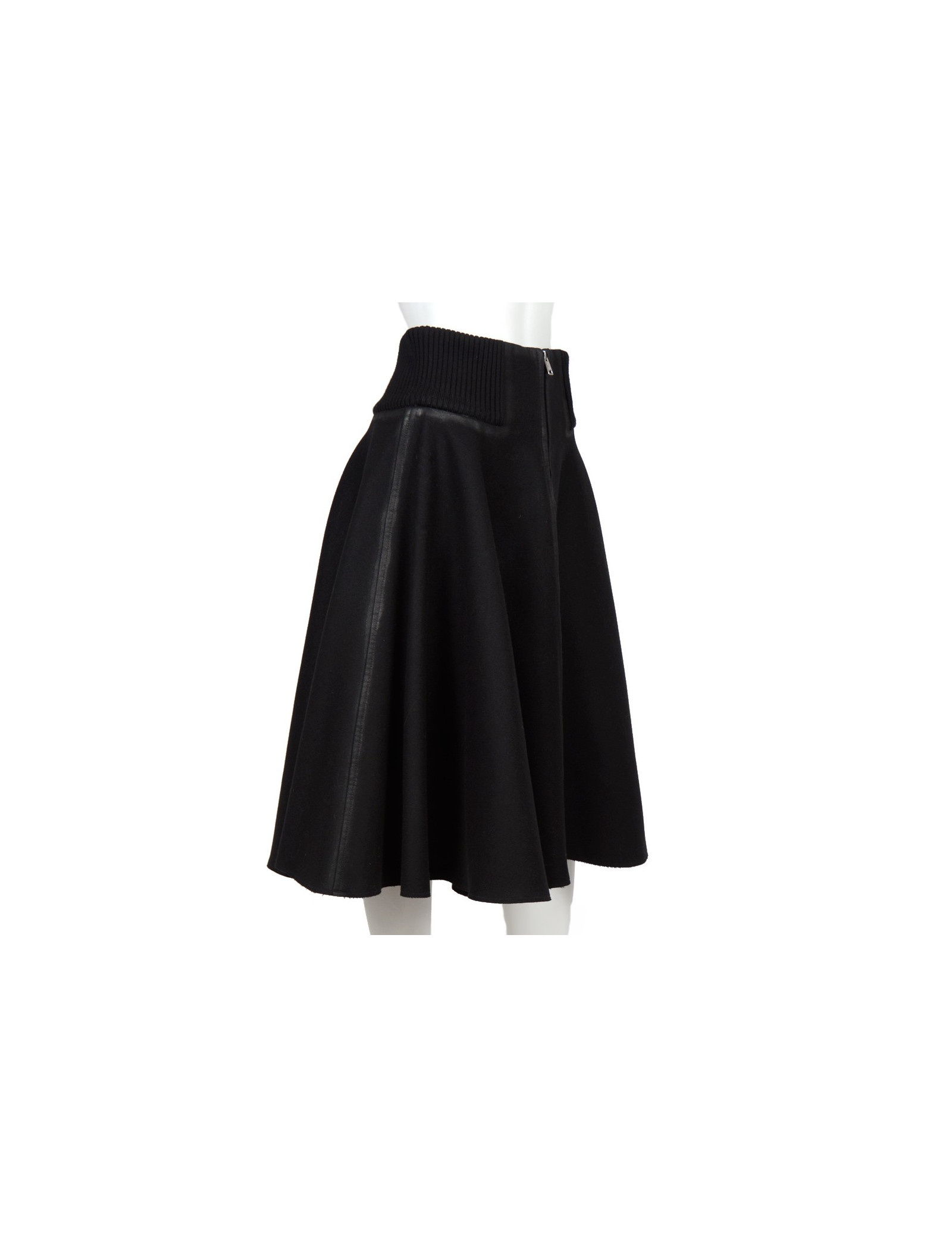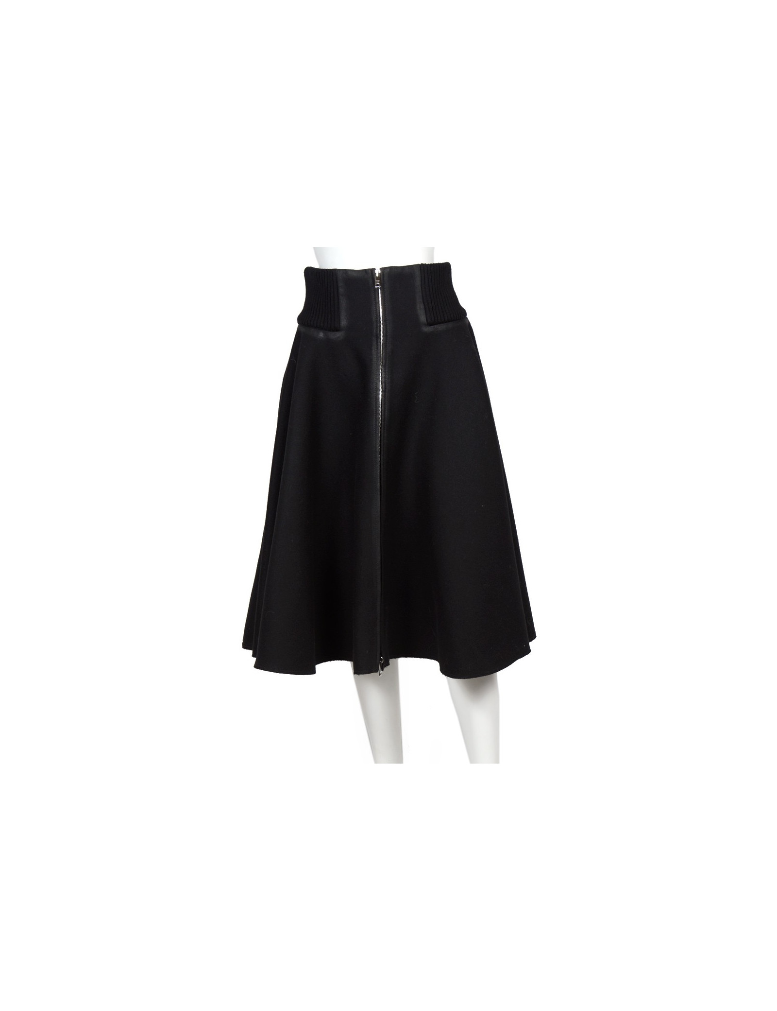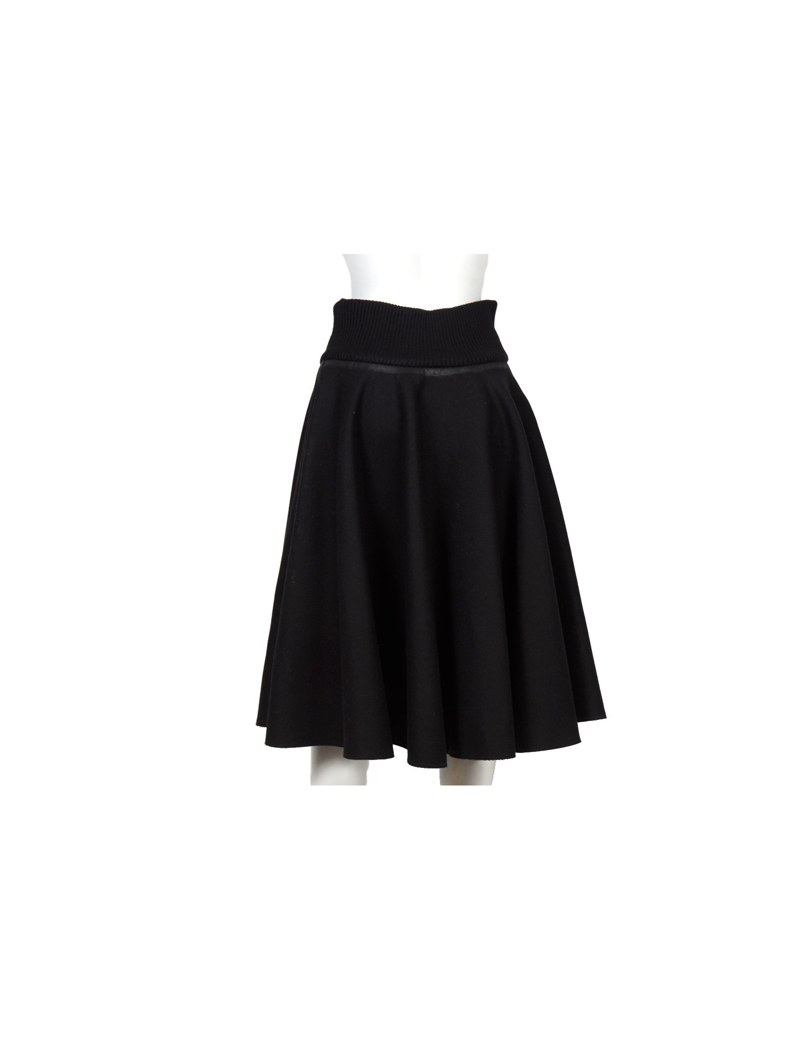 Skirt a-line ruffle Prada in Black wool cloth. Size 42 Italian is equivalent to a 38 french. Central zip. Belt stretch mesh. The contours and the edges are weathered. In very good condition. Been very little.