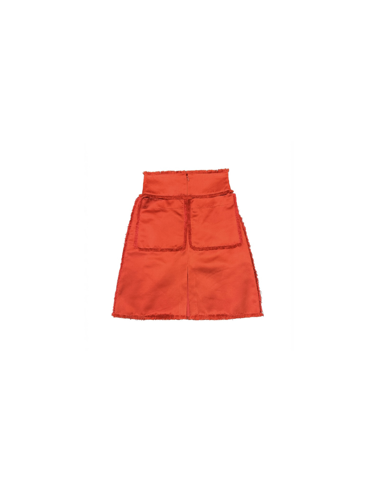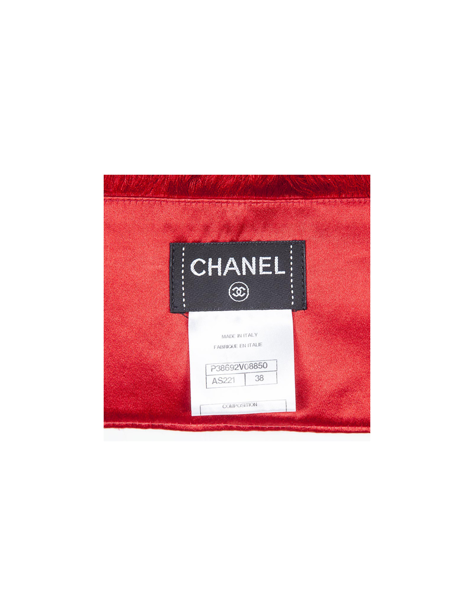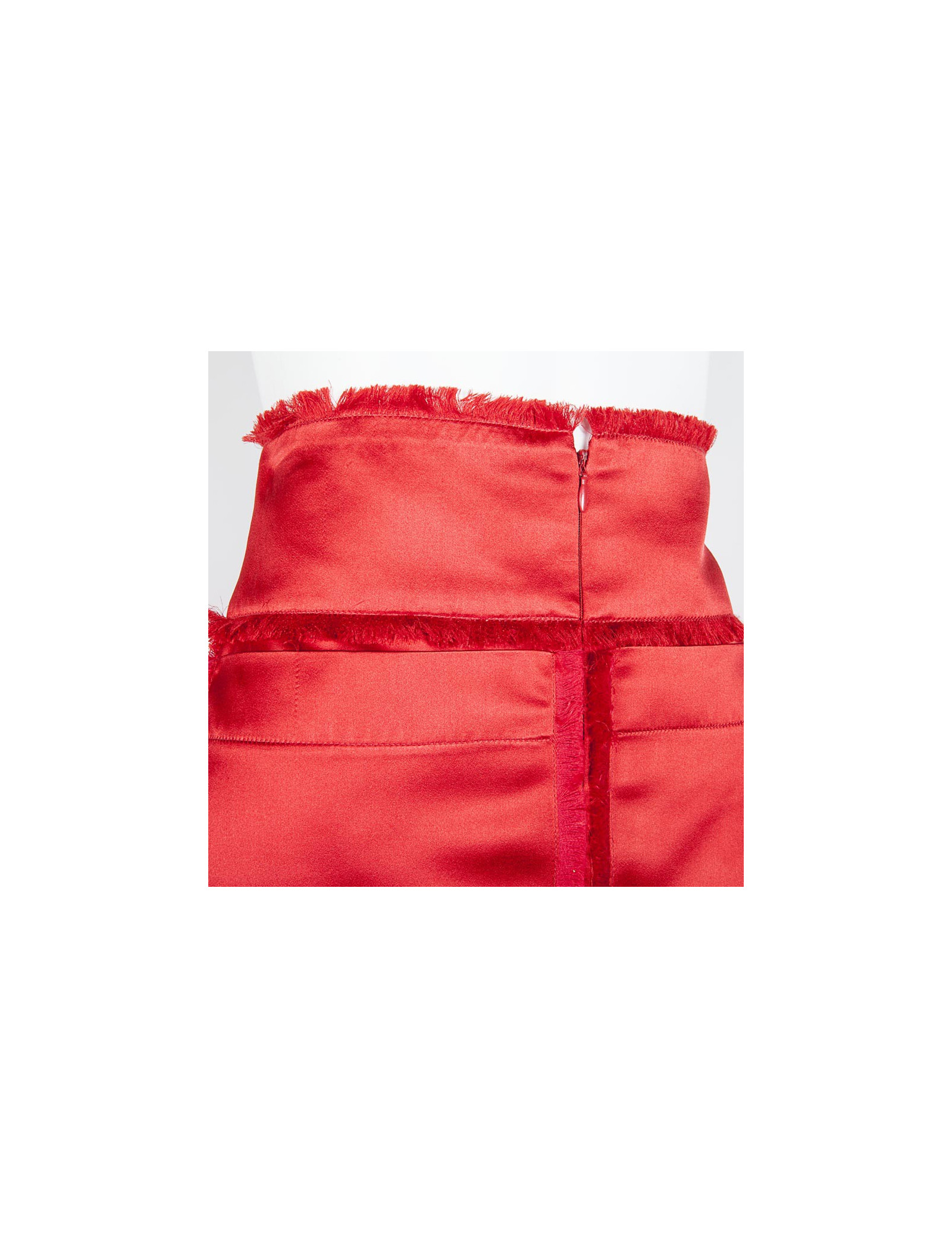 The House of Chanel's Red Duchess silk skirt. Size 38 fr. recent Collection. Zipper in the front. Two large pocket in the front. Slit at the front.