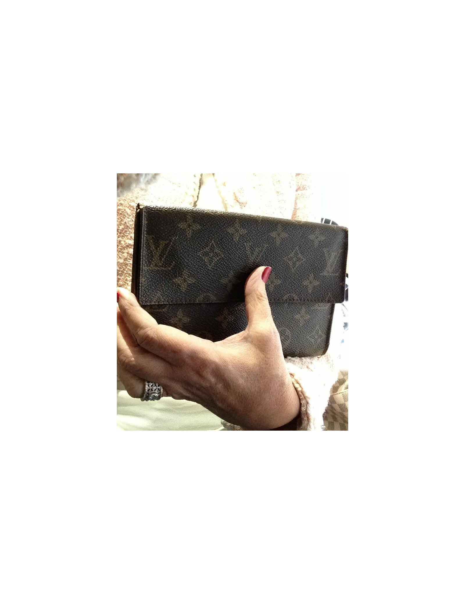Pouch vintage or large coated canvas monogrammee LOUIS VUITTON portfolio. comes with its box.