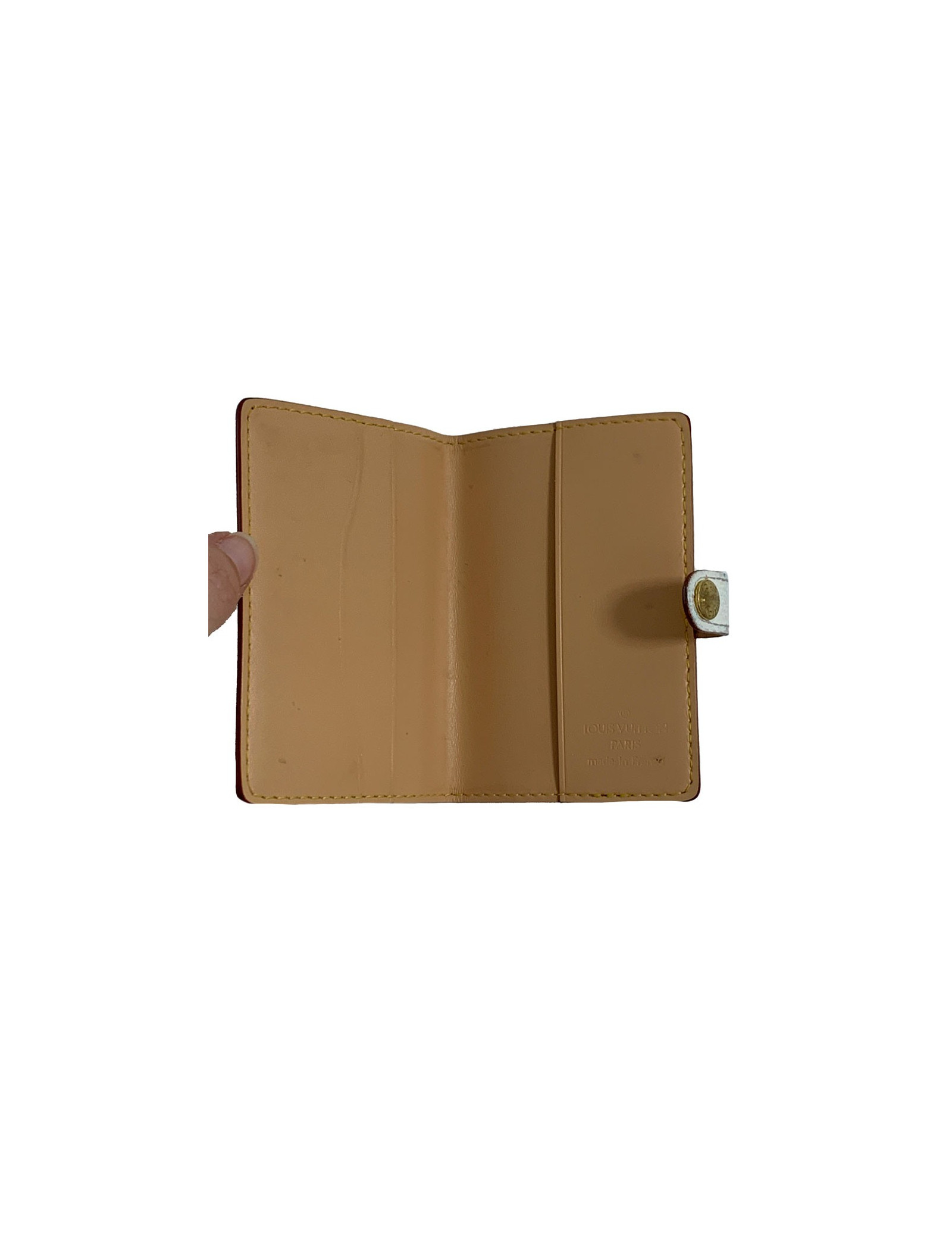 Sold SMALL LEATHER GOODS CASSEGRAIN ivory leather wallet CASSEGRAIN 18617 190.00 € CASSEGRAIN croco ivory effect leather wallet. Pressure clasp. 2 large slot to tickets, 6 credit card slots and a small pocket with clasp to pressure also. White and beige leather interior. New condition. Dimensions: closed: width: 11.3 cm - height: 19.2 cm - depth: 2 cm Delivered in a Valois Vintage Paris View