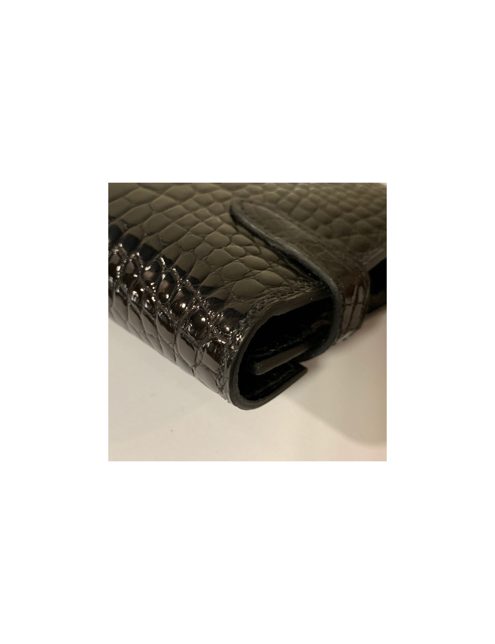 Last items in stock SMALL LEATHER GOODS HERMES directory cover black Porosus crocodile HERMES 28051 1,090.00 € HERMES directory cover black Porosus crocodile Condition : goodMade in FranceColor : blackMaterial : Porosus crocodileMeasurements:13 x 9 x 0,6 cmLining: smooth black leather Advantage Valois Vintage Paris : Comes in its original Hermes box Add to cart