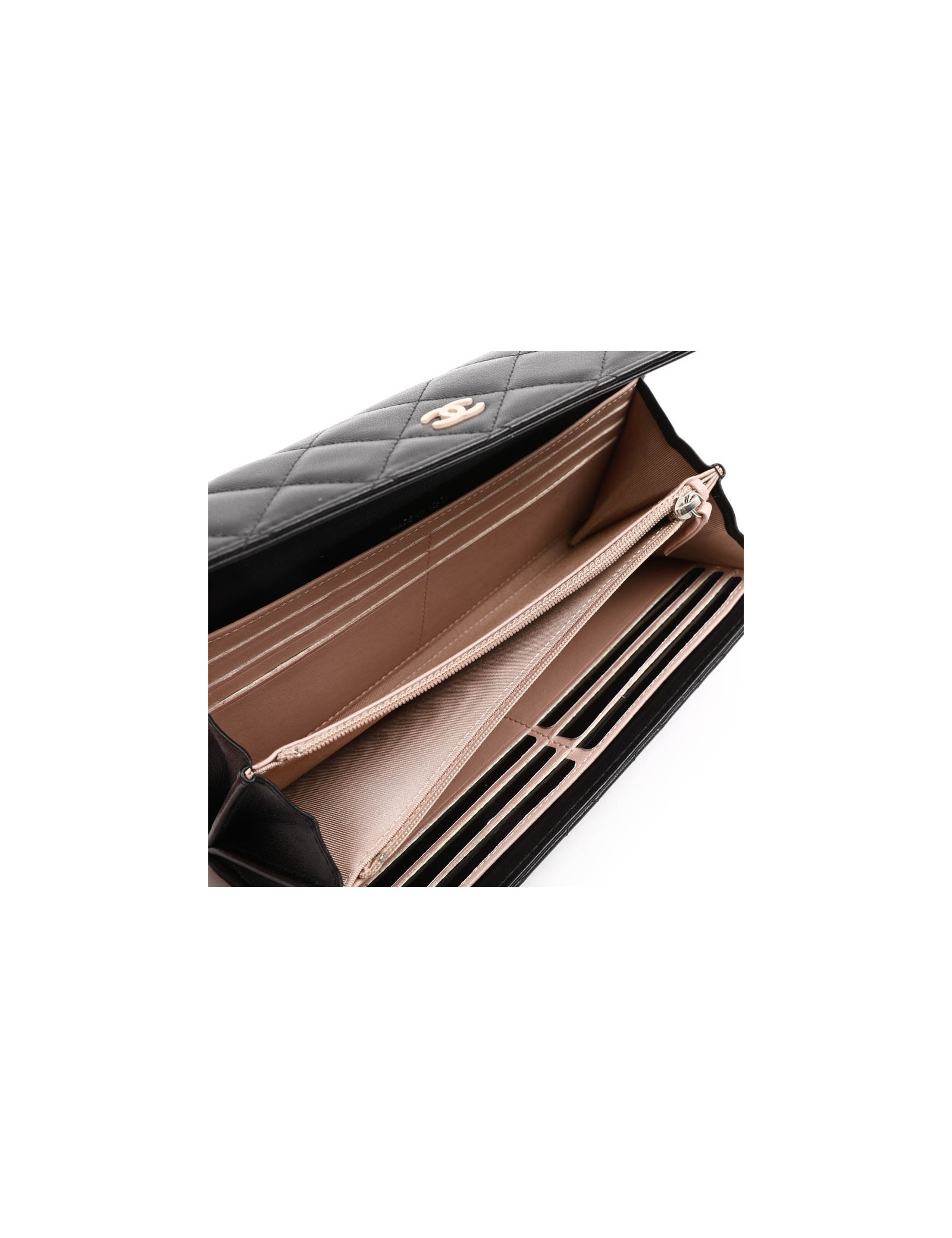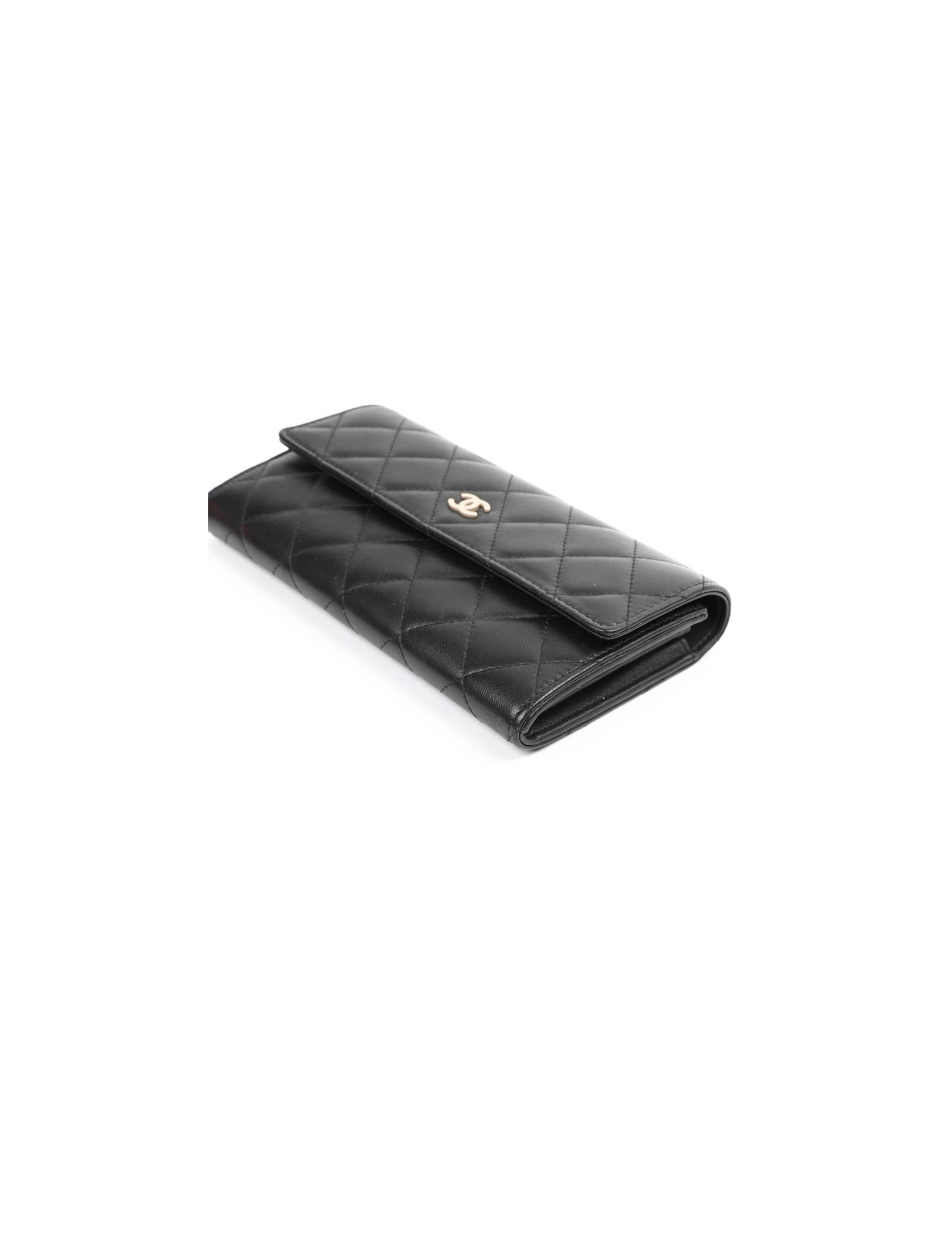 Portefeuille à rabat CHANEL cuir matelassé noir