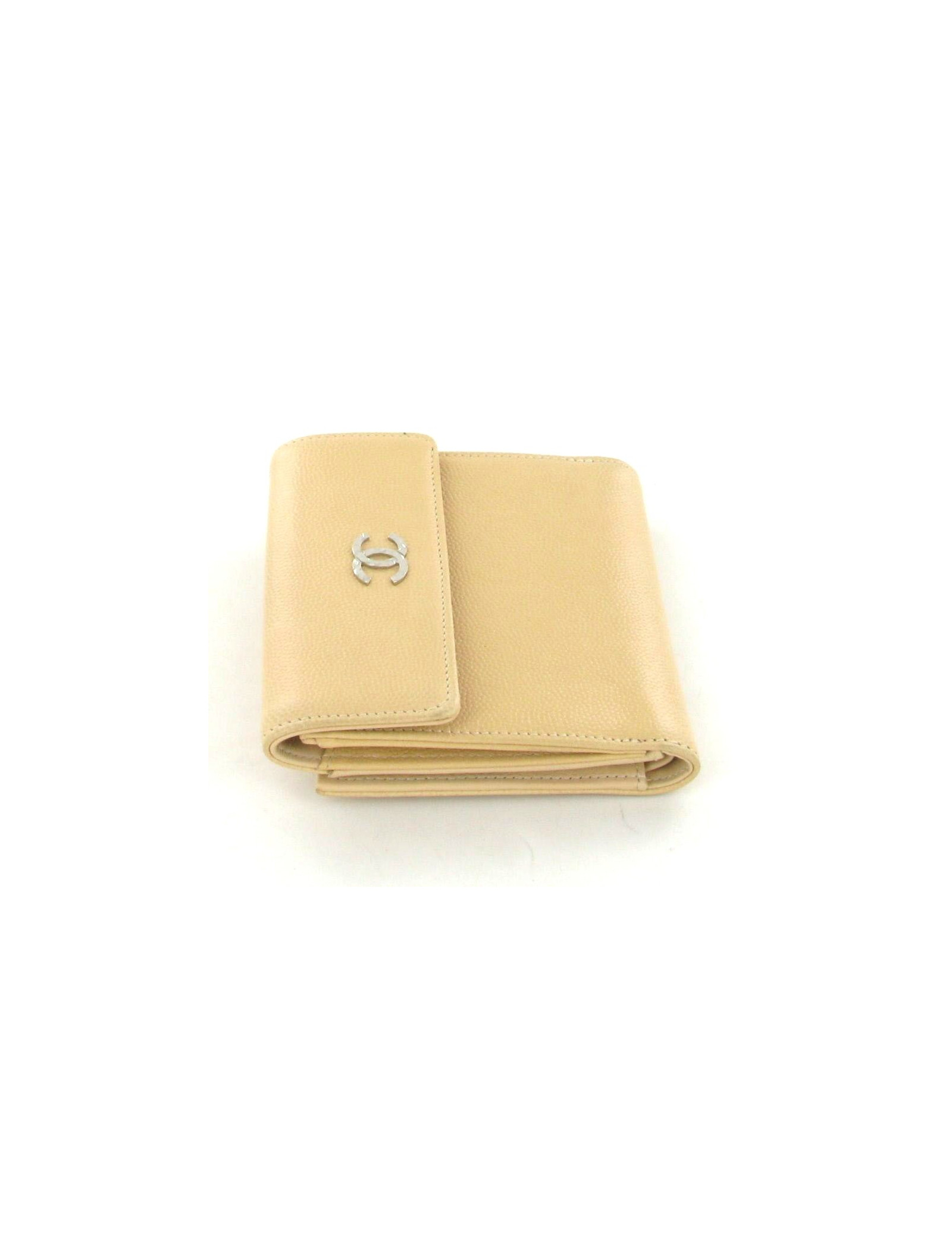 CHANEL wallet beige grained calf leather, equipped with an external pocket. This very stylish portfolio design is new. It has a push button pocket to store the currency, as well as a Pocket notes and 8 slots for cards. Hologram 13..., year 2009-2010.