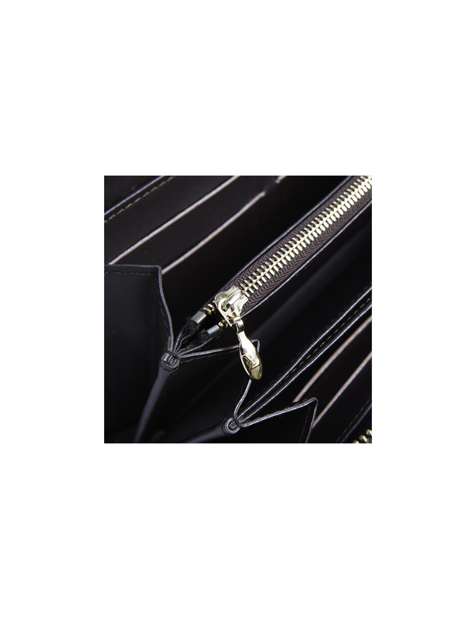 The closure is zippered secure with eight credit card slots and an open pocket for tickets.
