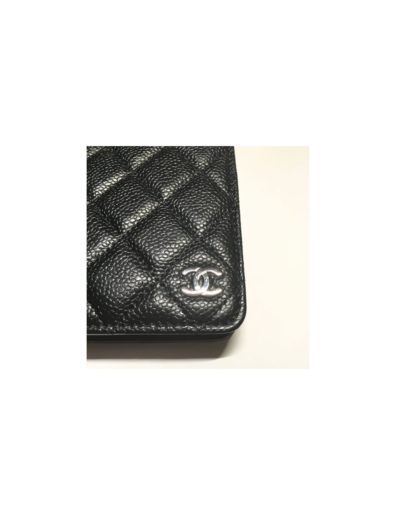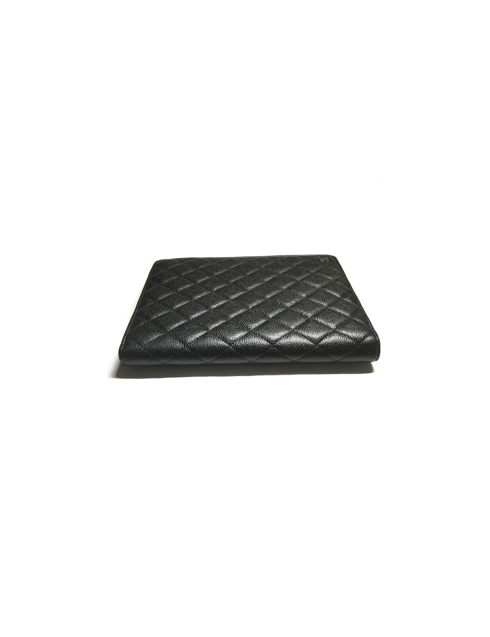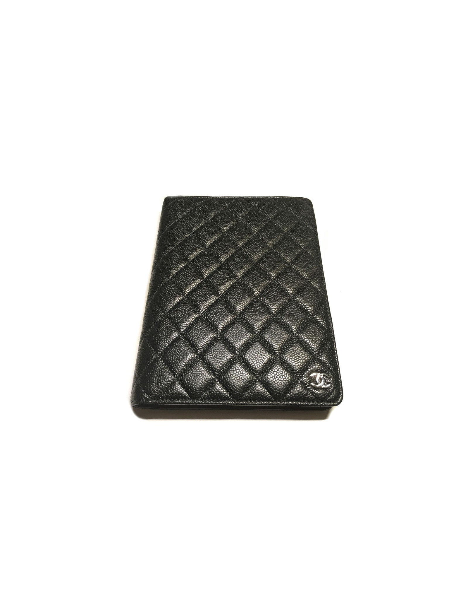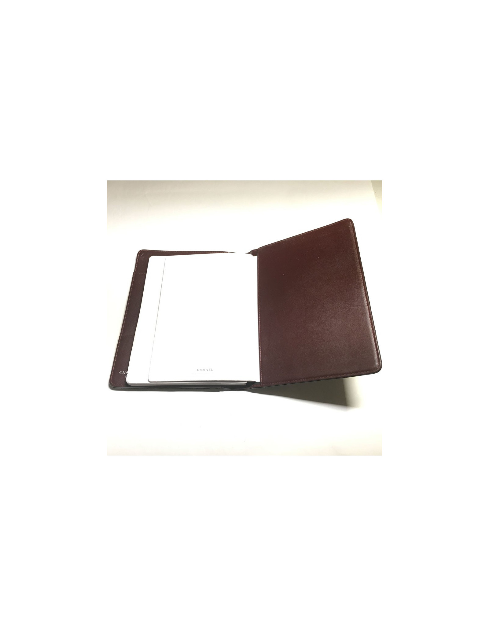 Door agenda CHANEL black quilted leather. Small CC silver on the cover. Inside Burgundy leather and spirals. 2 large slots for documents, a smaller card. Address book black at the end of the door agenda.