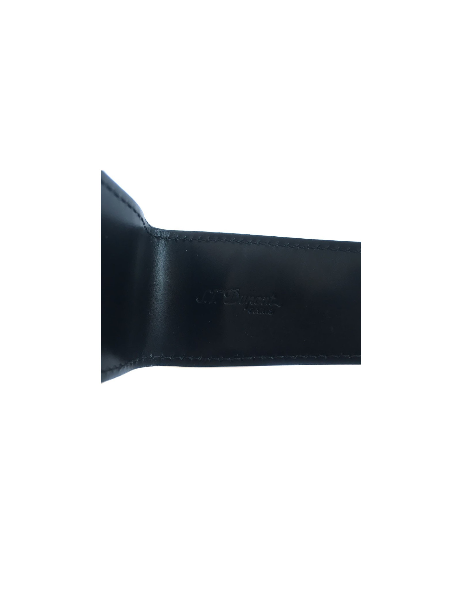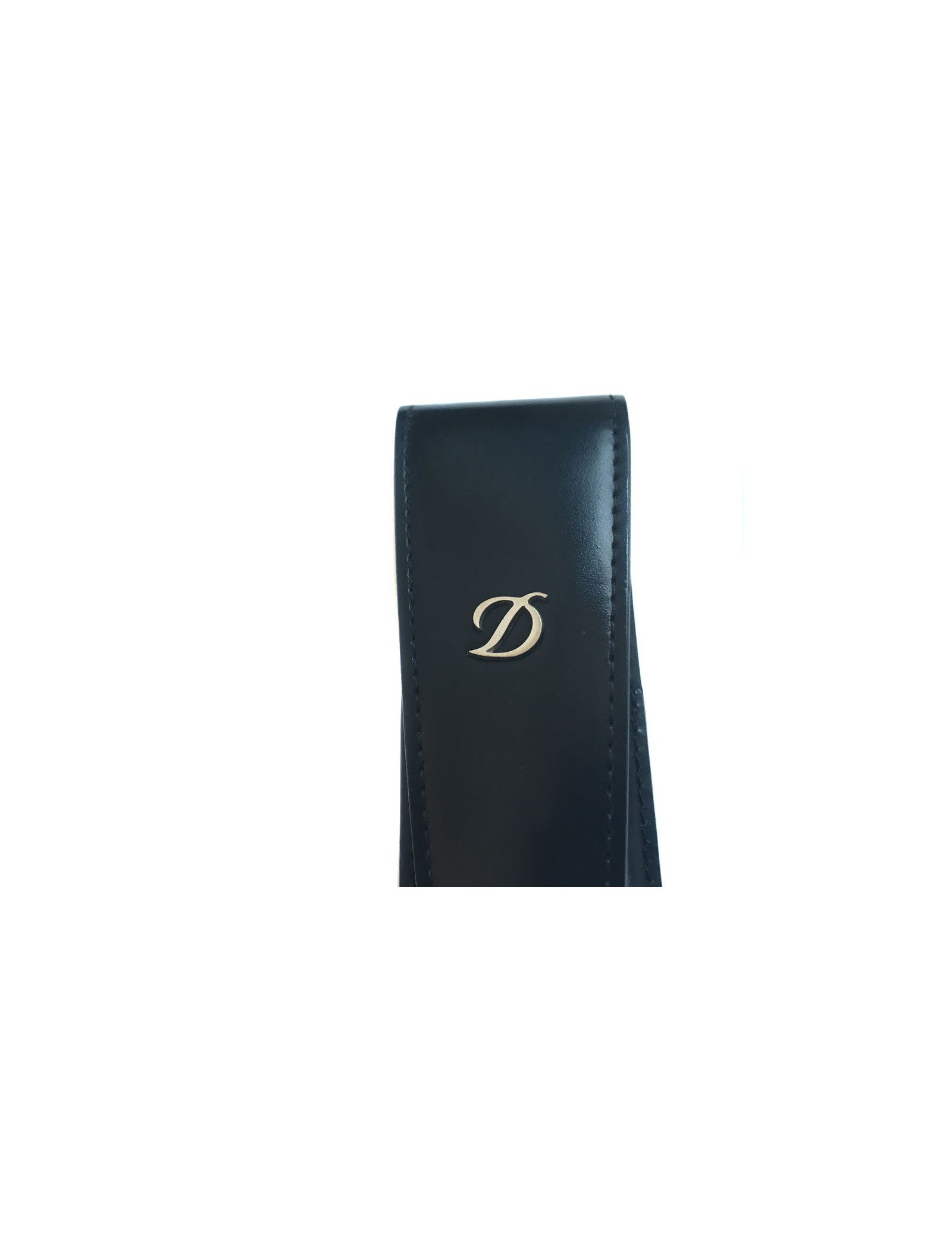 S.T. Dupont black smooth leather pen holder. Case flap that can contain 1 to 2 pens according to their size. Light scratches on the leather. Smell of tobacco.