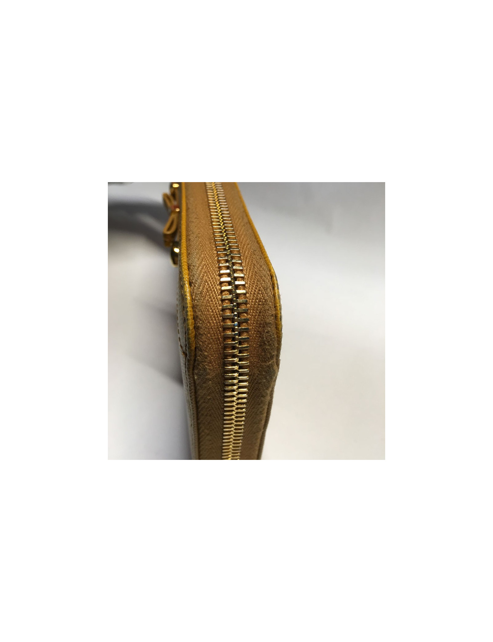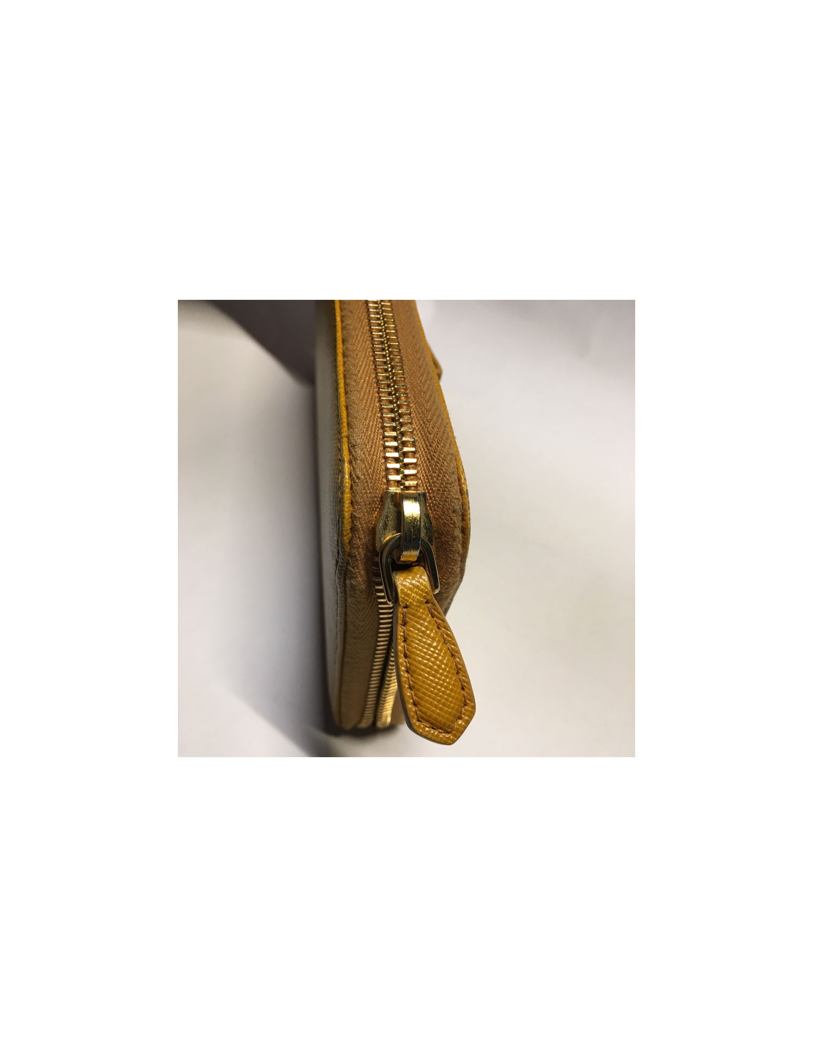 PRADA wallet zipped leather grained gold. Wallet zipped, 4 large slots and 8 slots for cards. Small traces of dirt on the edges of the zipper. In very good condition.
