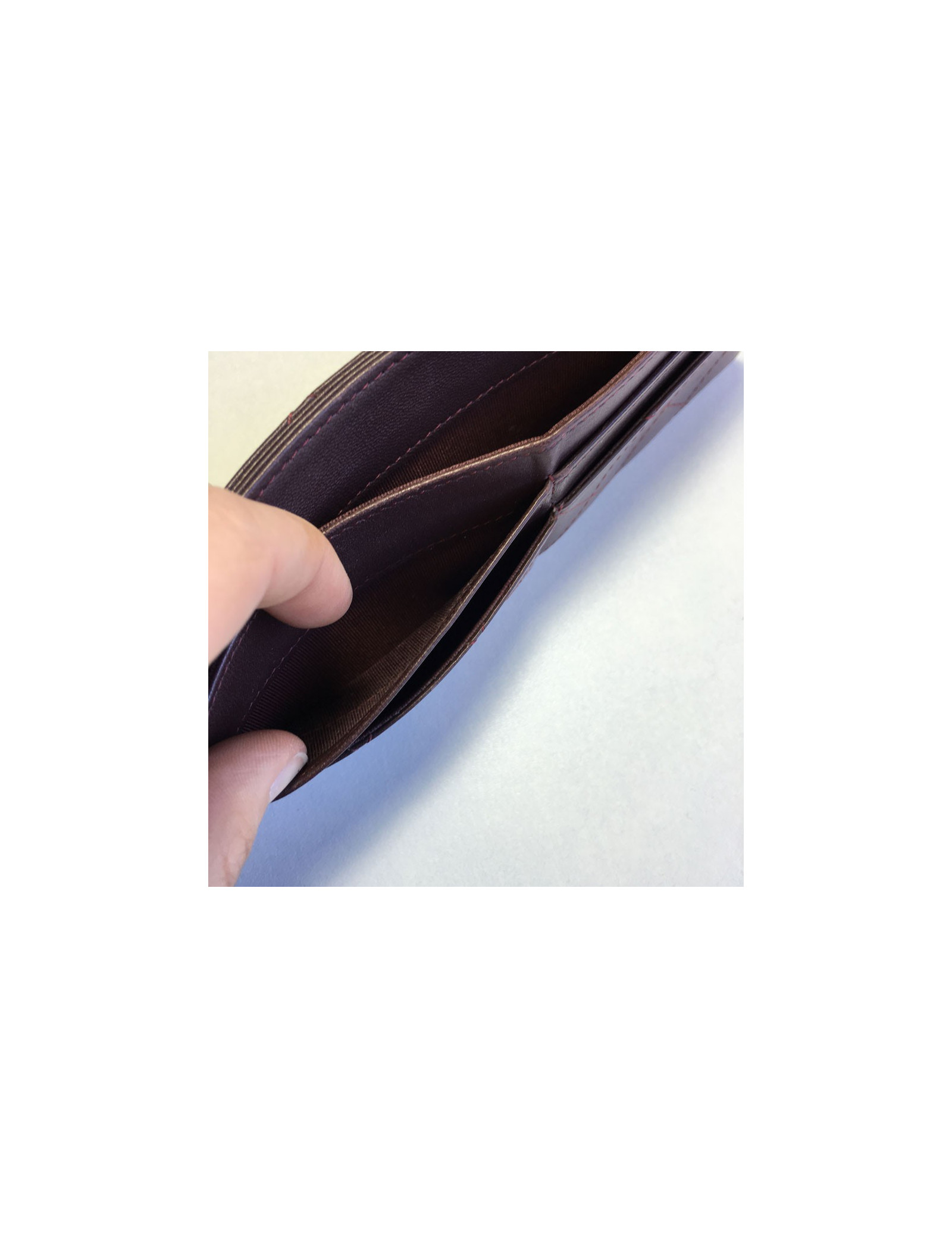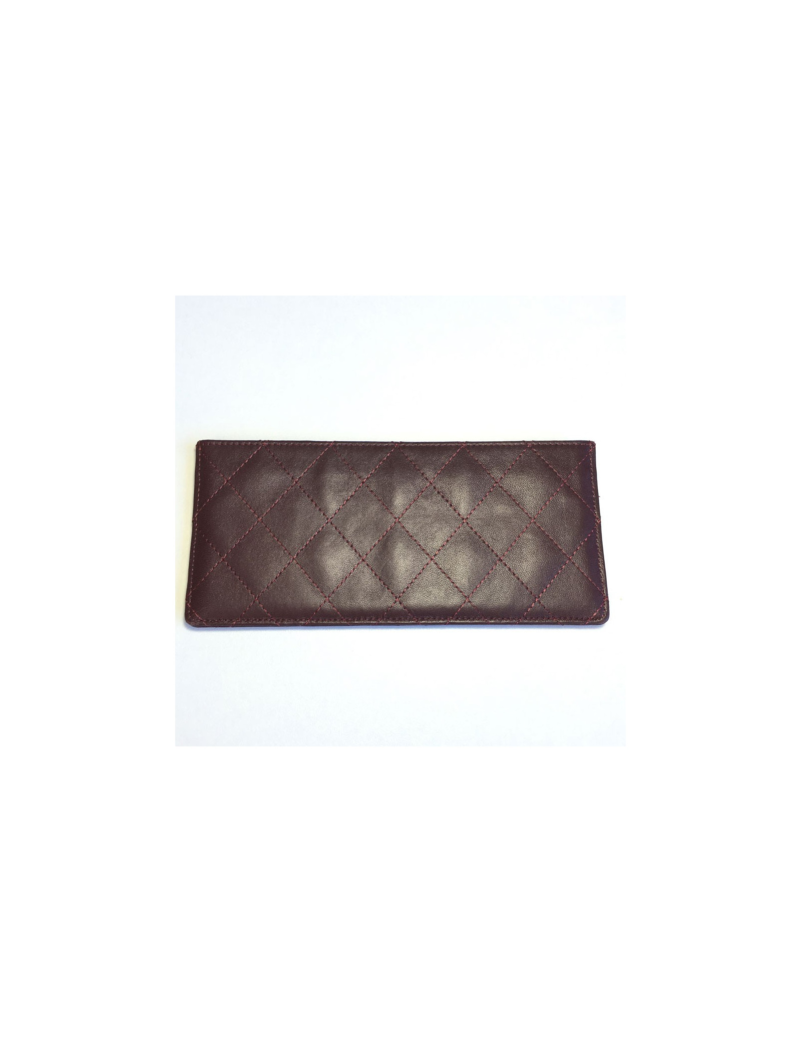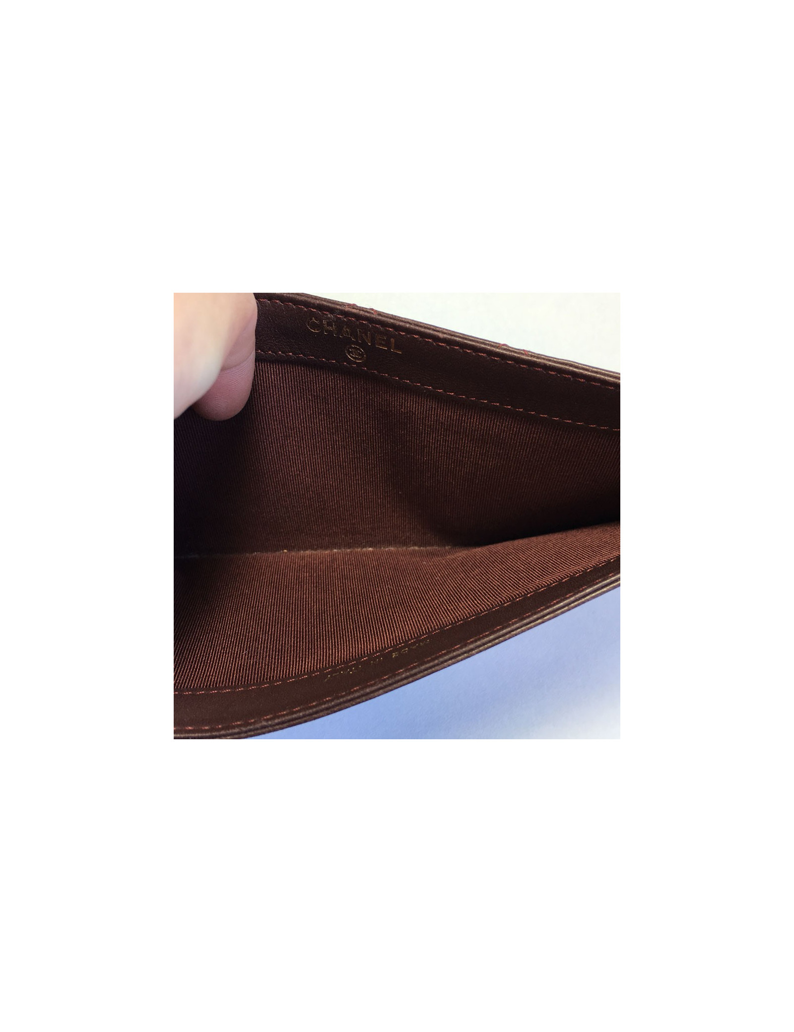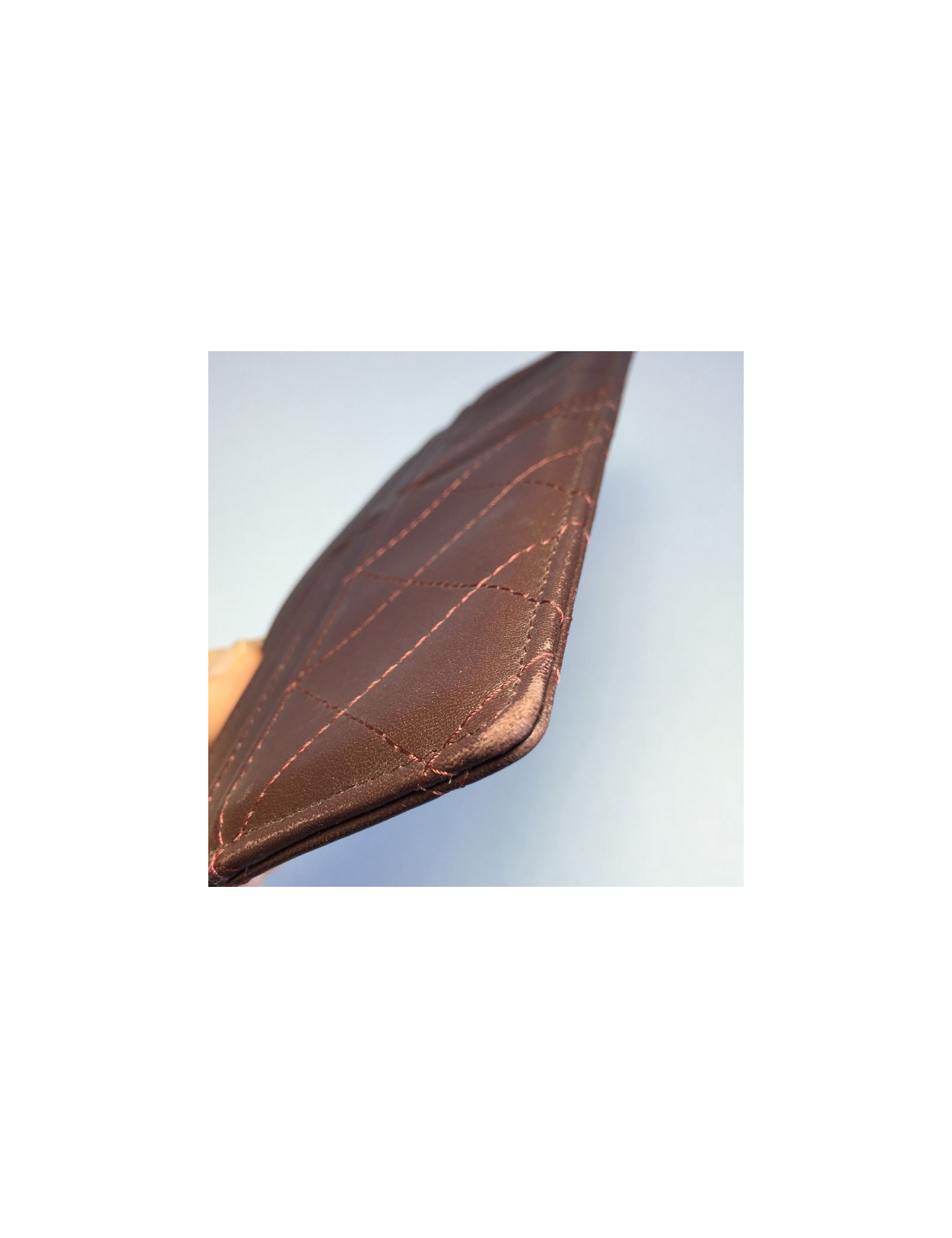 Card holders and tickets Chanel Burgundy quilted leather: 4 card slots and a large crack, then a big crack through. Good condition. the low corners are worn, small stroke of a pen (see photos). No hologram.