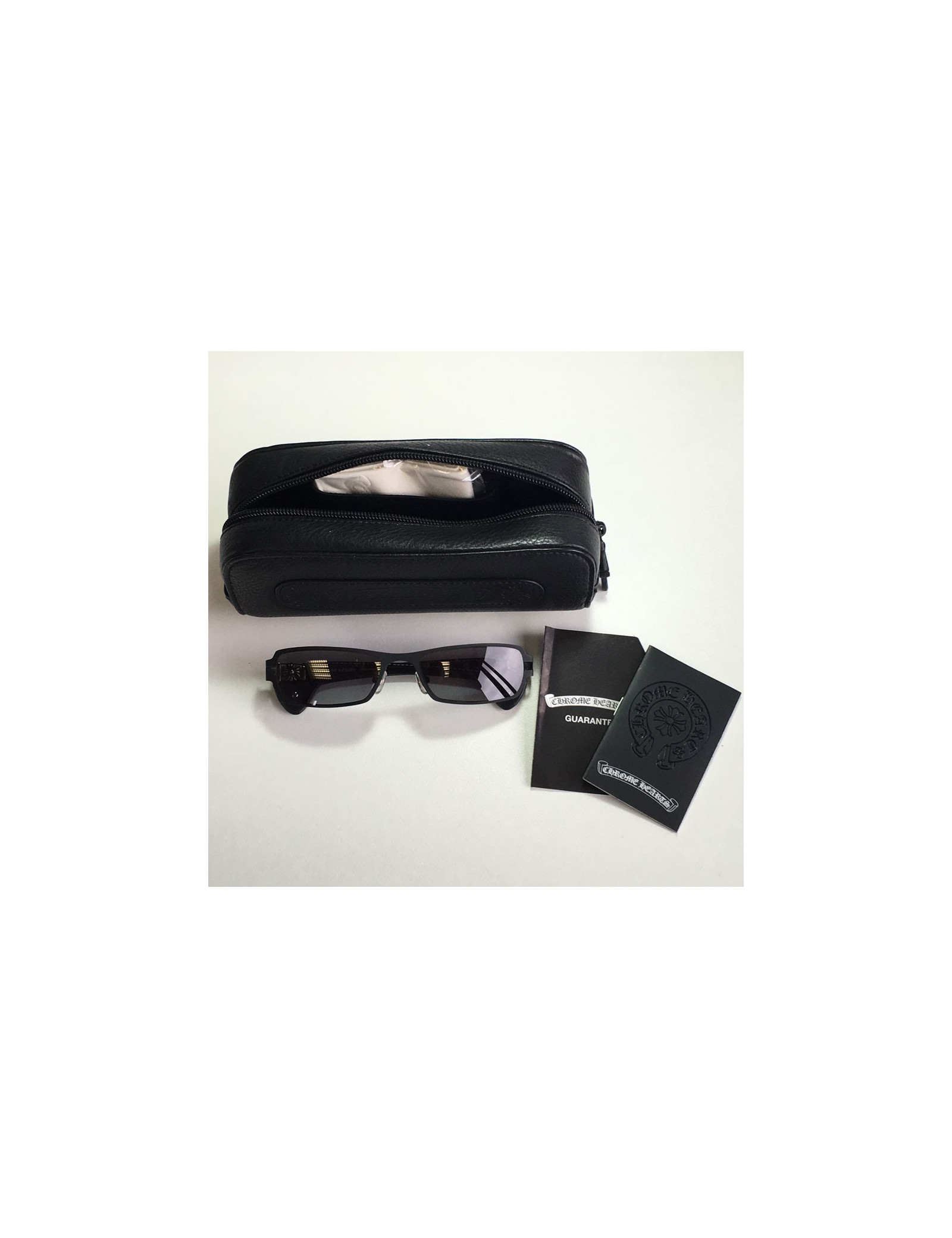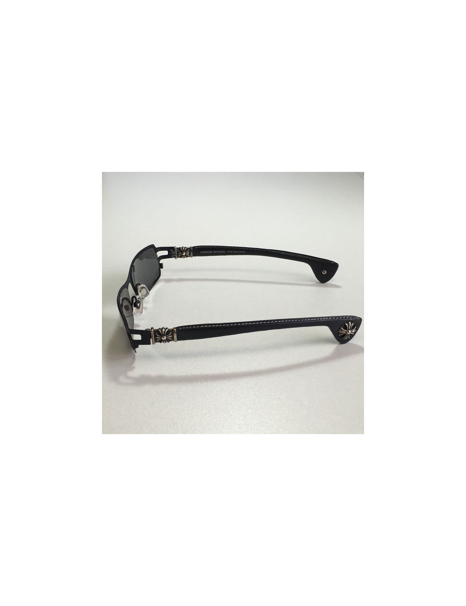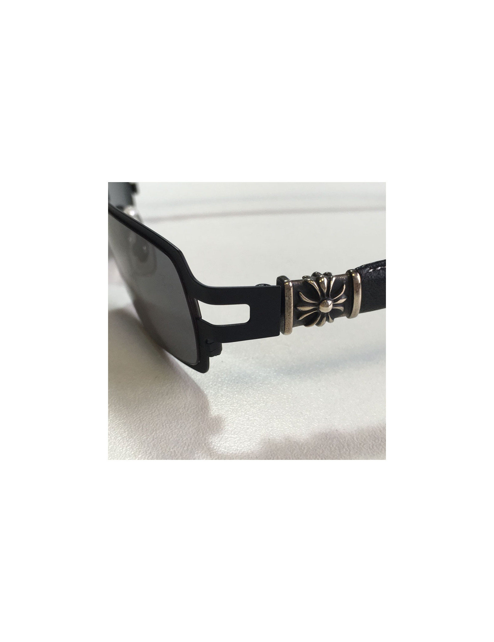 Original! sunglasses CHROME HEARTS matte black metal, jewelry in sterling silver, aged and leather industries. glasses color: black.