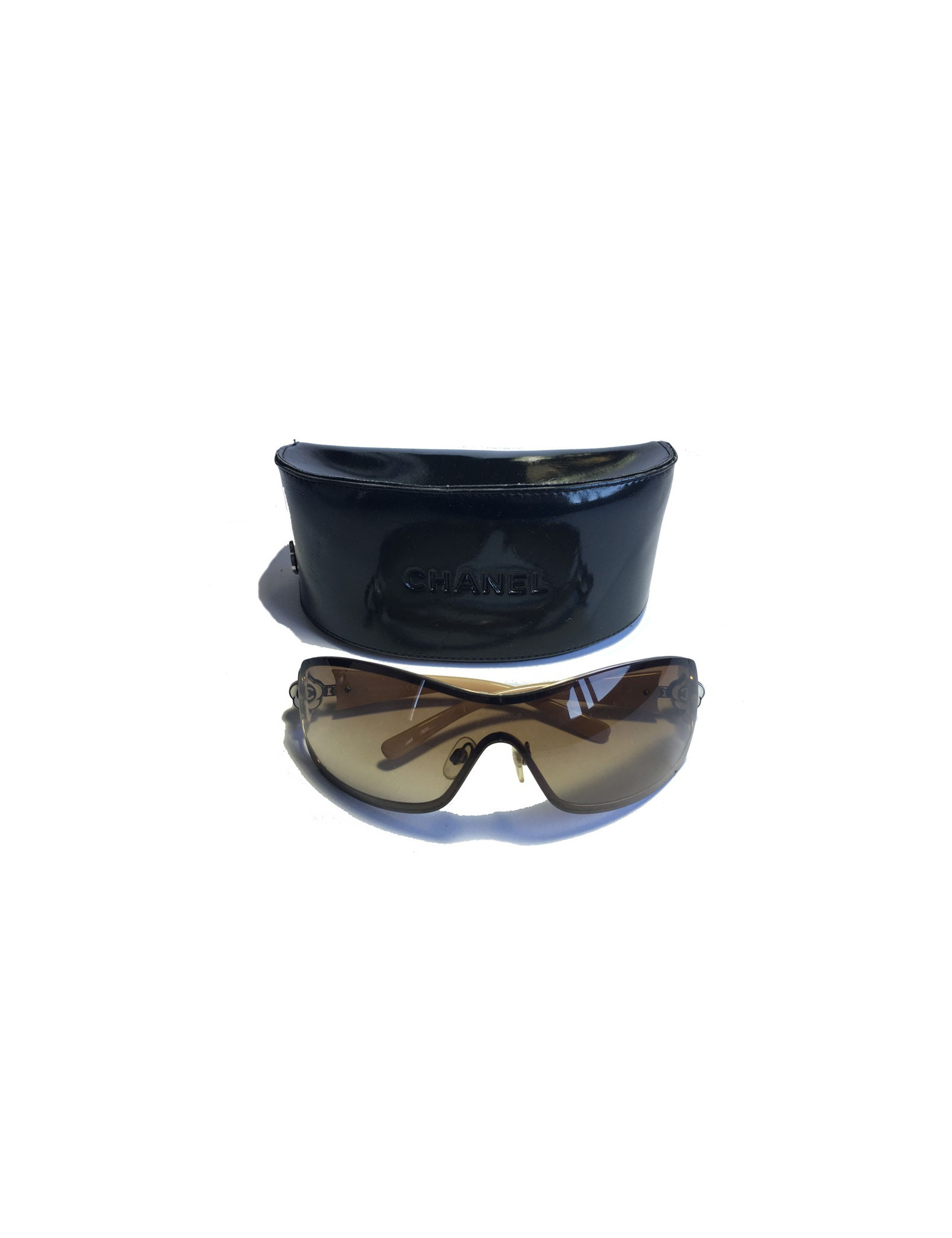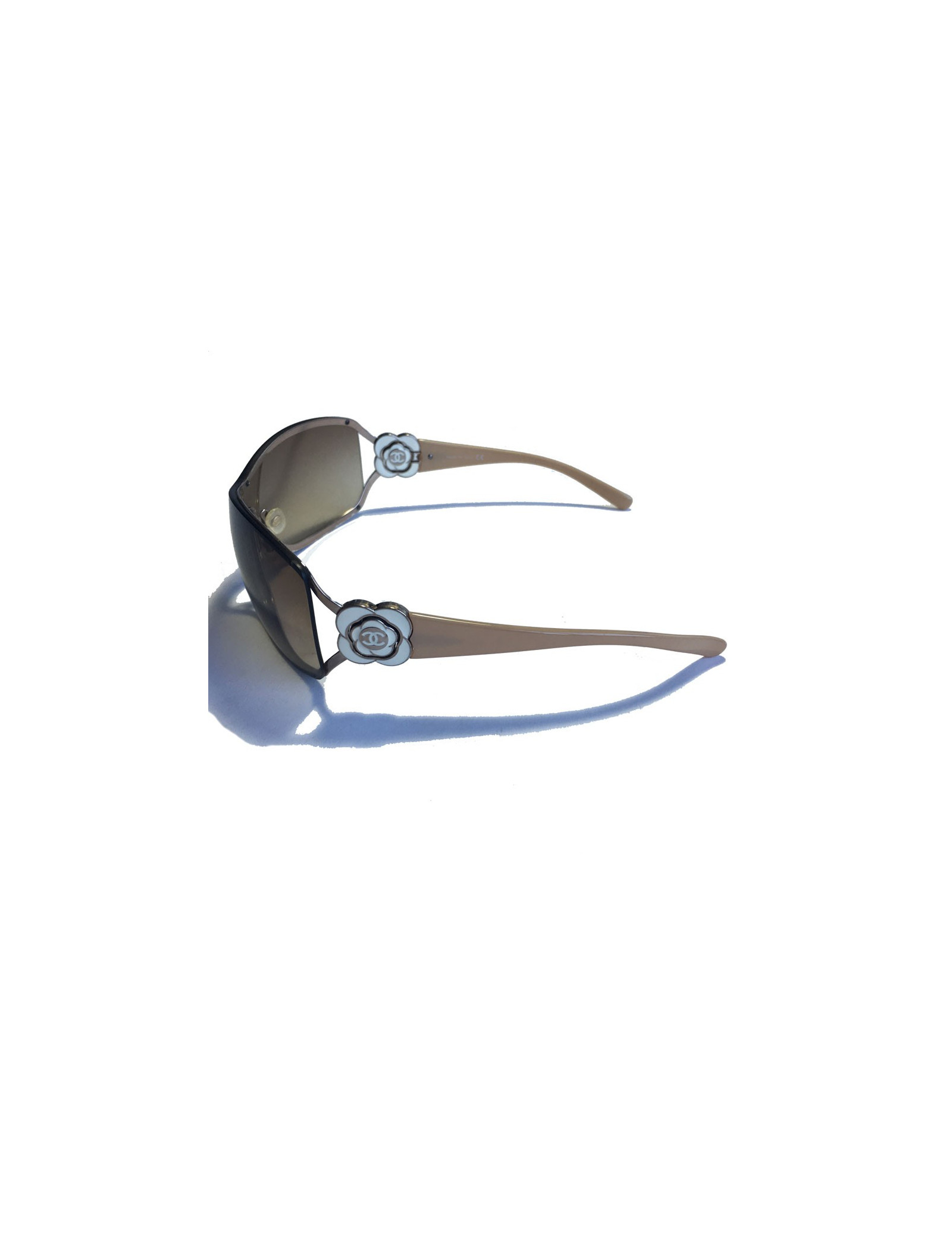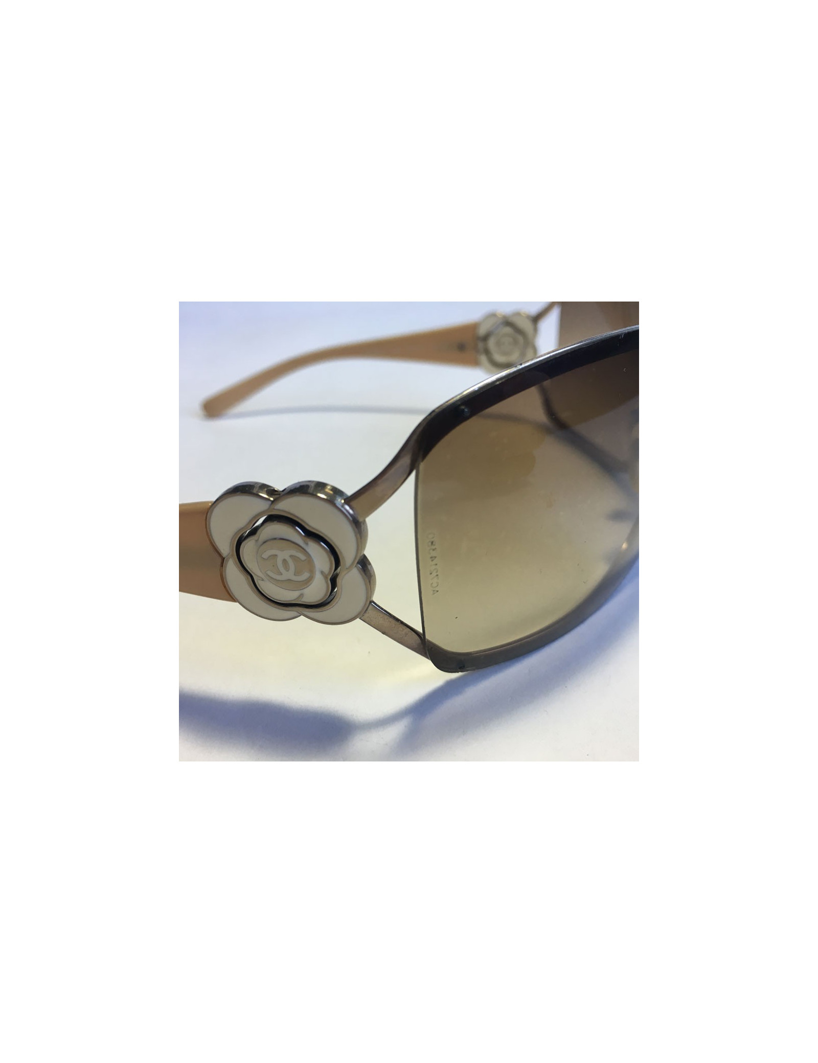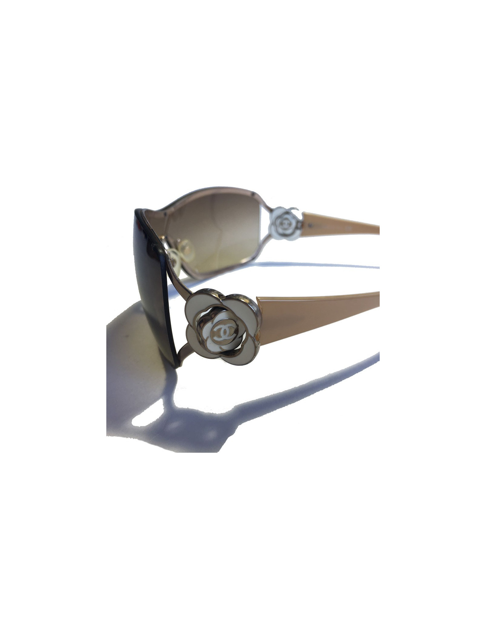 CHANEL sunglasses mask beige plastic branches decorated with a Camellia ivory metal and metal.