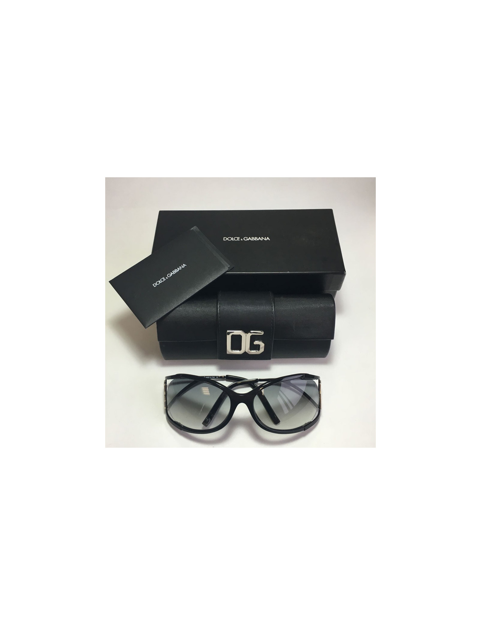 Sold SUNGLASSES DOLCE & GABBANA sunglasses DOLCE & GABBANA 17995 129.00 € DOLCE & GABBANA sunglasses Condition: never worn, no traces of wearMaterial: plastic, metalColor: blackMeasurements: length: 14cm, width: 13cm, temples: 13.5cmDetails: Dolce & Gabbana sunglasses in mint condition, black metal frame and black plastic temples. Advantage Valois Vintage Paris: delivered with its full set: cardboard box, hard case,... View