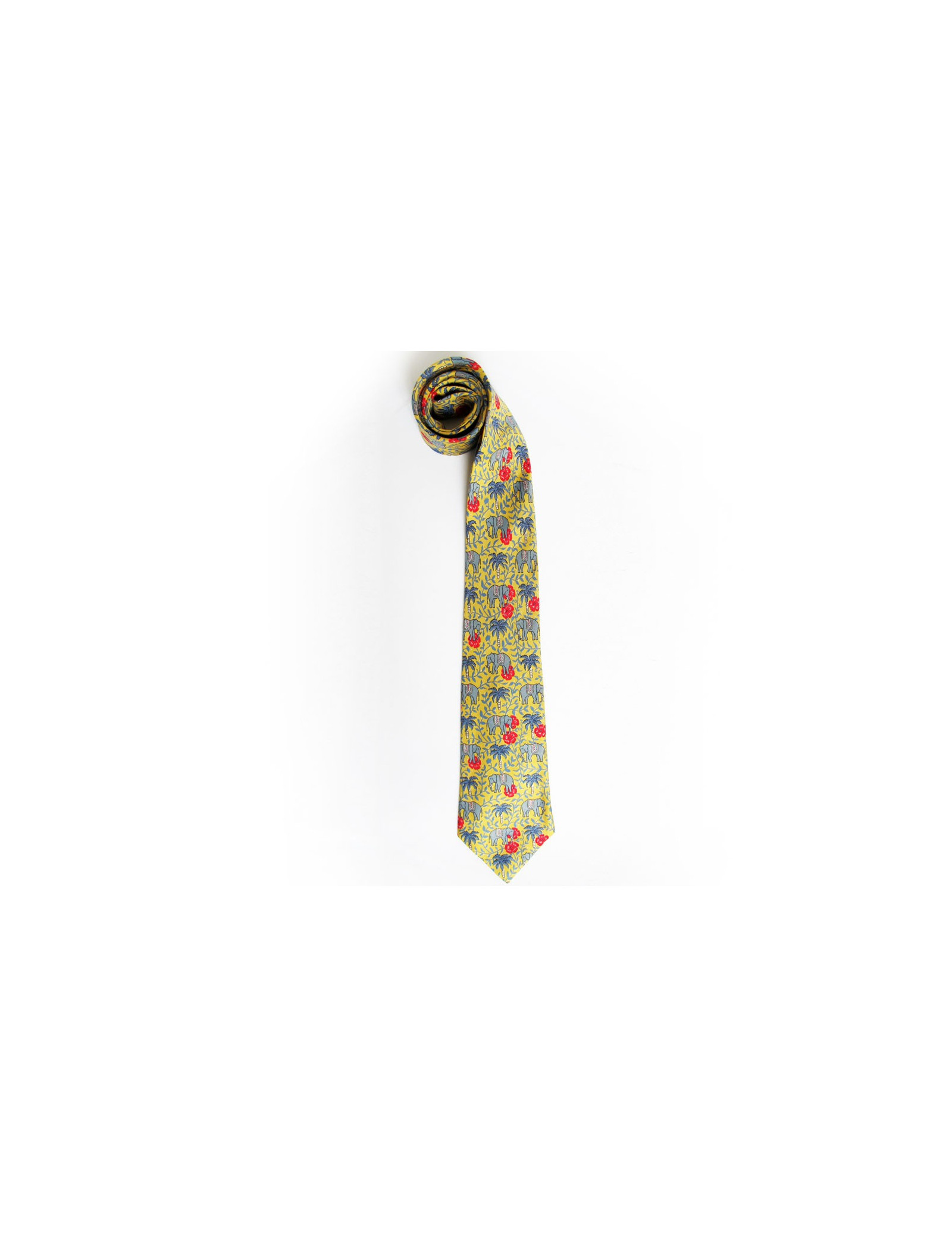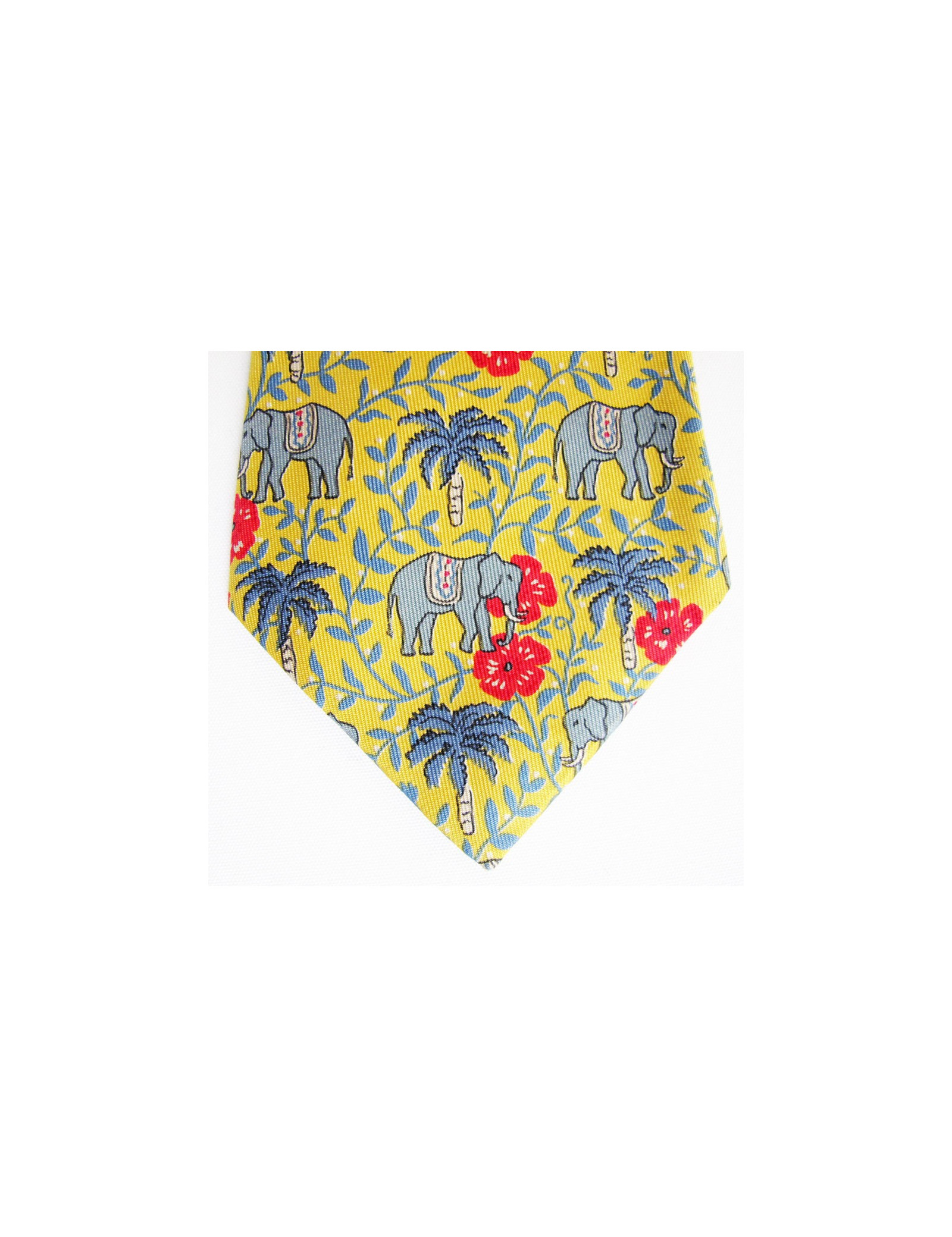 Tie HERMES Twill silk with patterns of Palm trees and elephants.