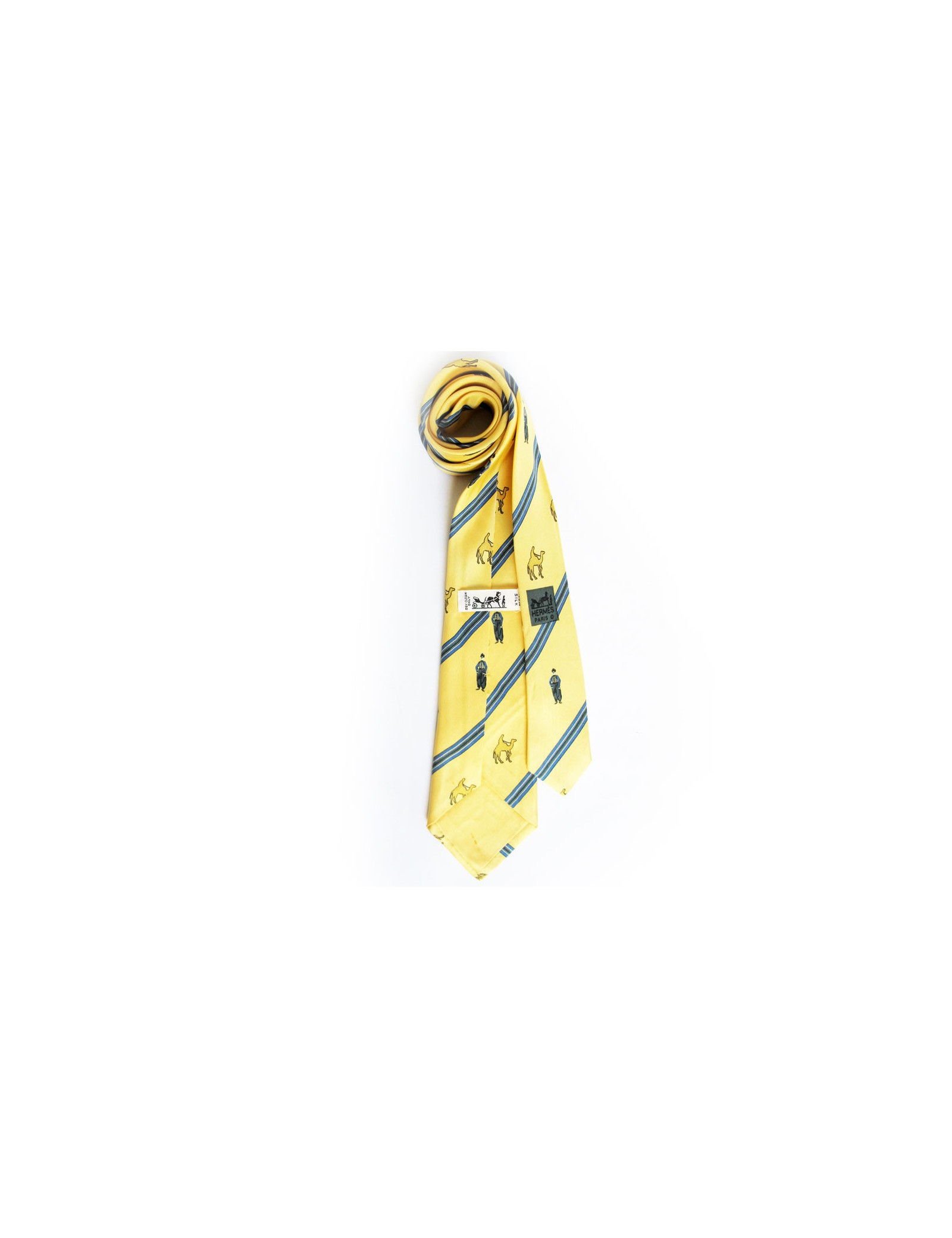 Yellow HERMES tie with camels printed