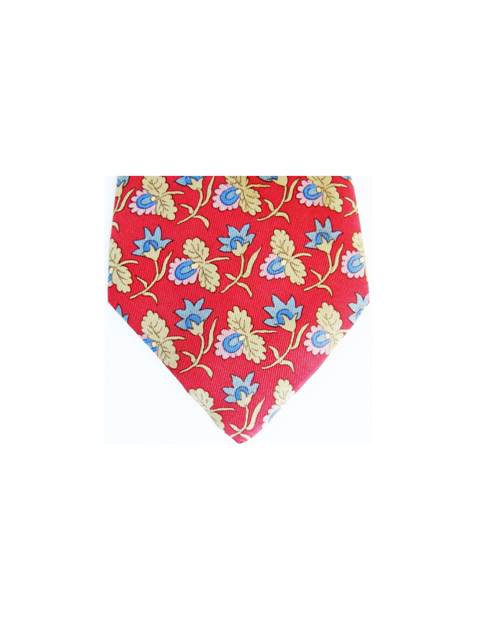 Red tie silk HERMES with floral printed Twill.