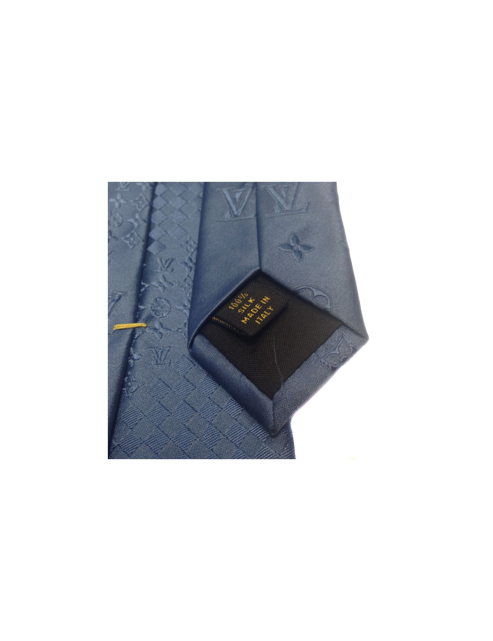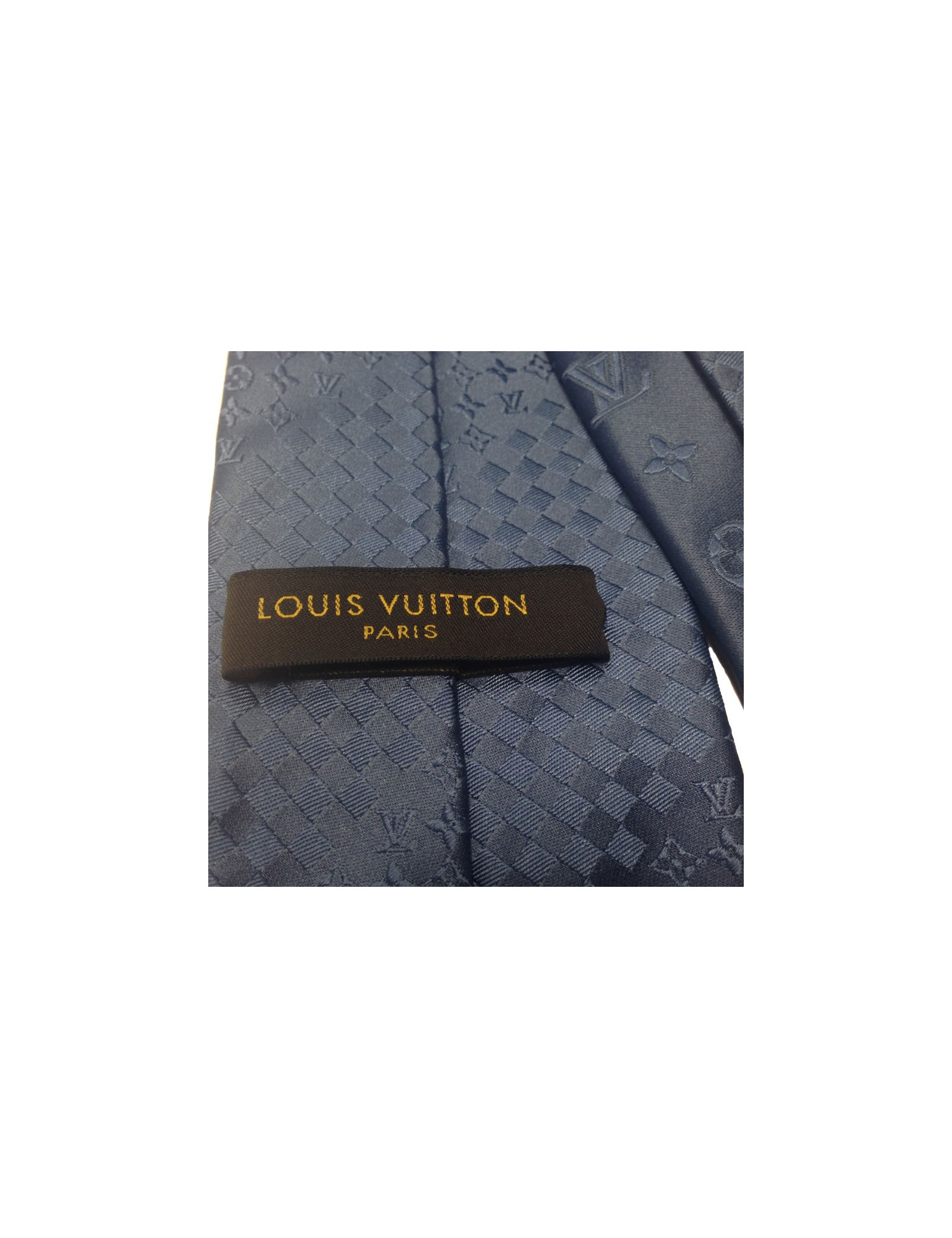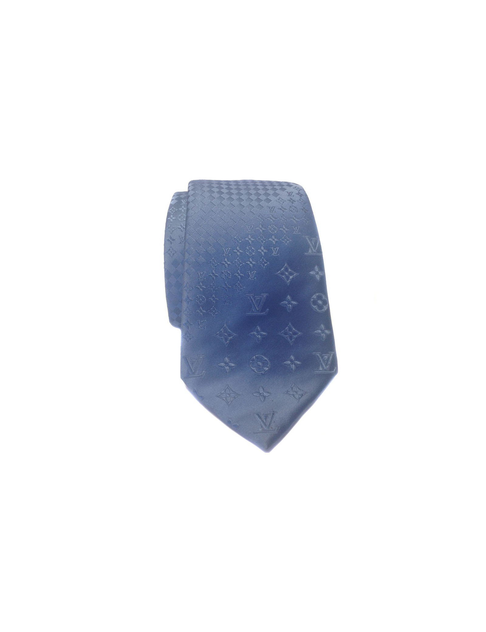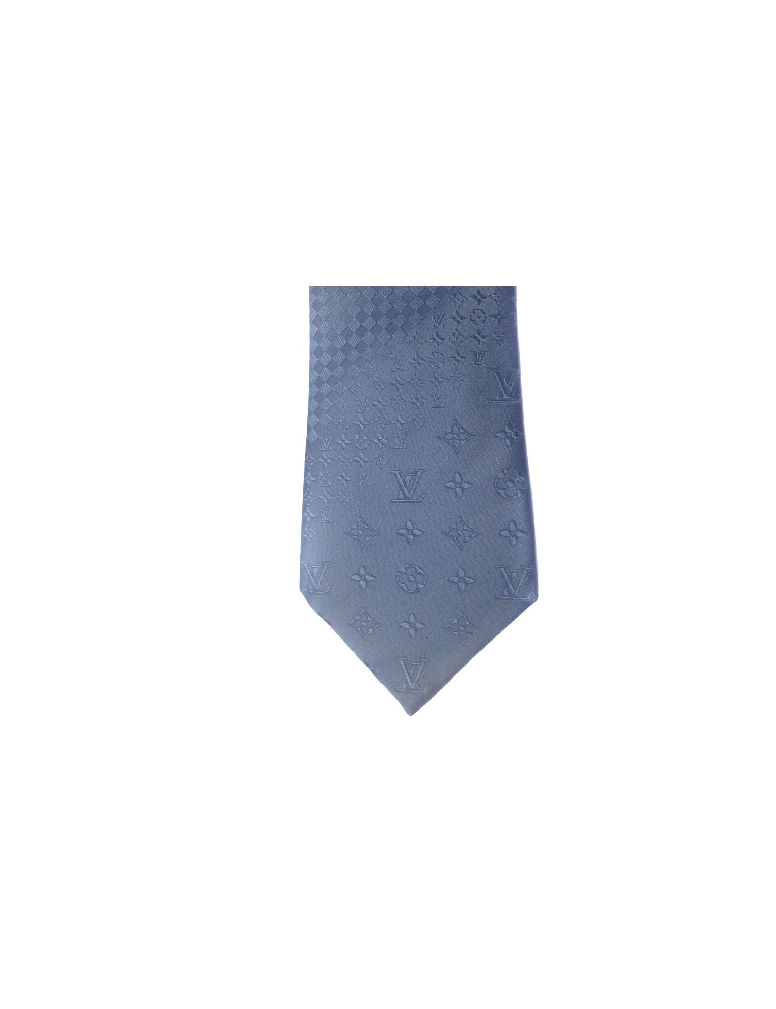 LOUIS VUITTON blue silk tie, printed the brand monogram and damier. 100% silk. Made in Italy. Never worn.