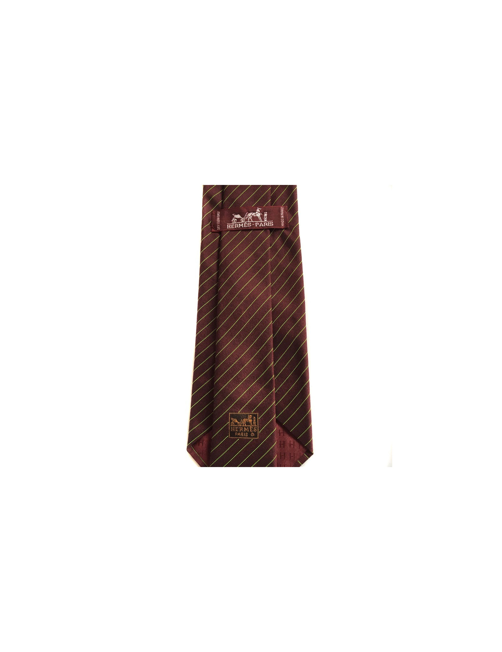 HERMÈS tie in burgundy silk and cashmere with fluo green lines