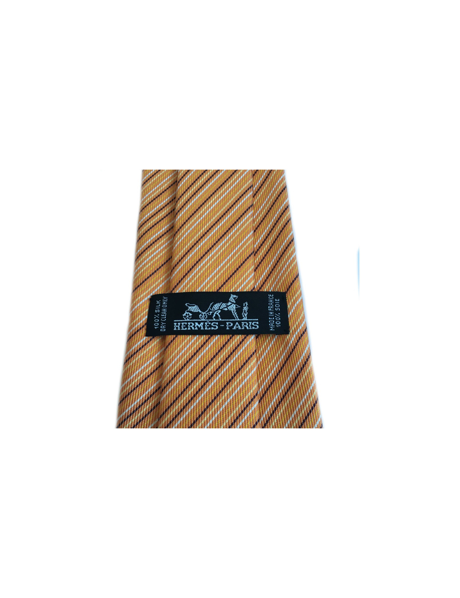 Tie HERMES silk scarf orange Pinstripe white, yellow and black. Never worn.