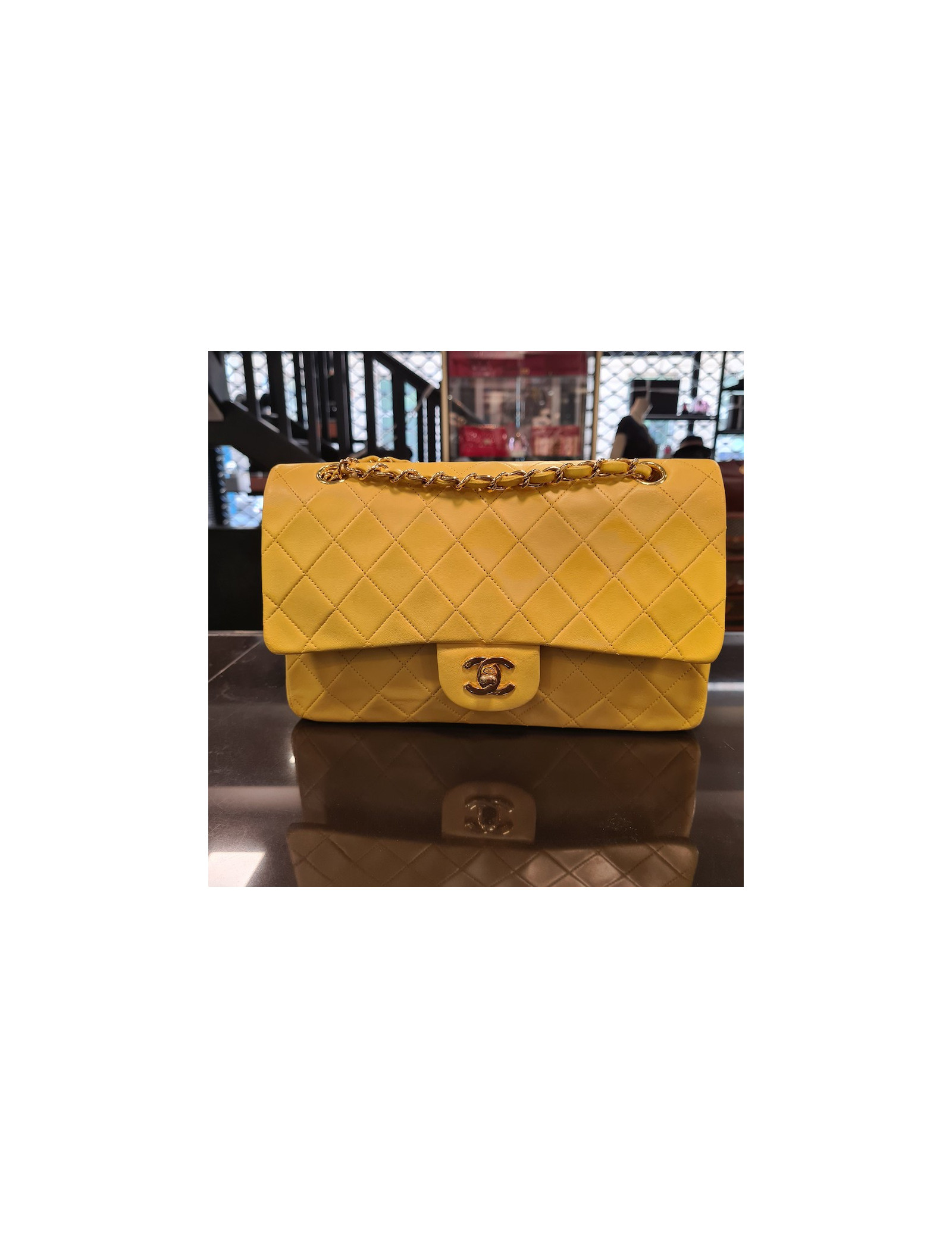 Last items in stock TIMELESS CHANEL CHANEL tricolor Timeless bag in perforated leather CHANEL 33646 7,600.00 € CHANEL tricolor Timeless bag Limited edition 2006 Condition : very goodMade in FranceCollection : TimelessGender : womanMaterial : lambskin leatherLining : smooth perforated green, yellow and red leatherColors : gree, yellow, redMeasurements : 25.5 x 16 x 7 cmShoulder strap : 95 cm simple, 56 cm doubleHologram : yesAuthenticity card : noYear :... Add to cart