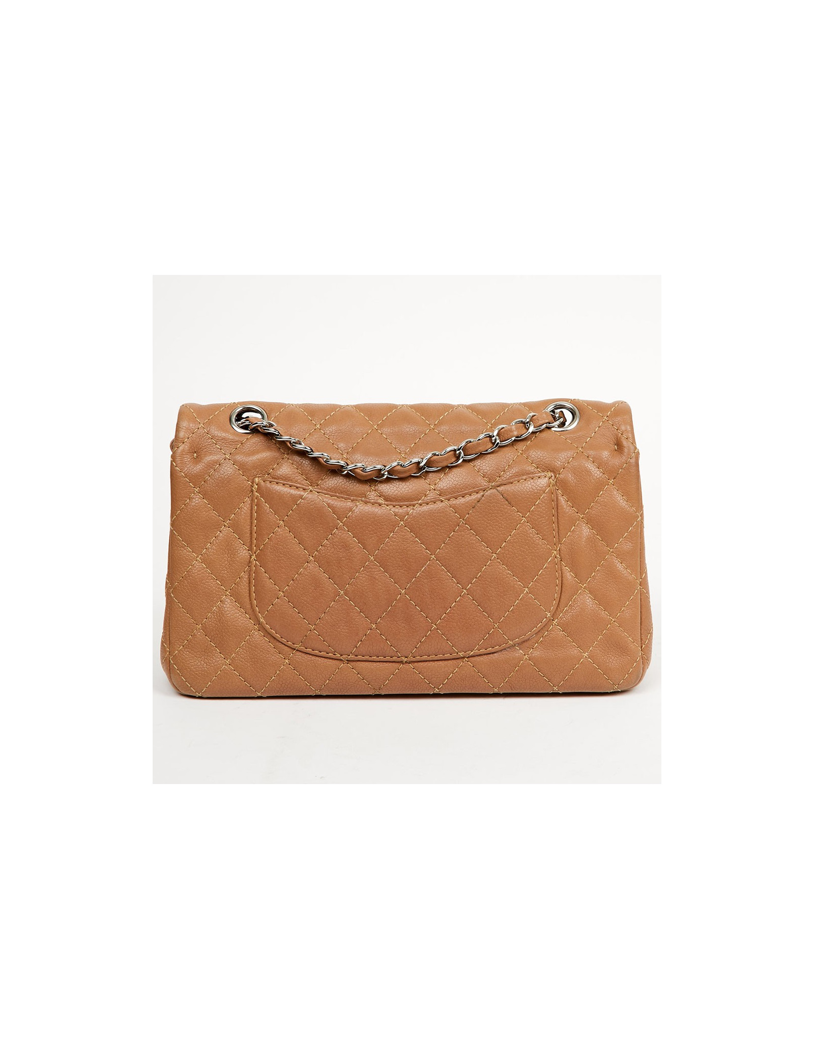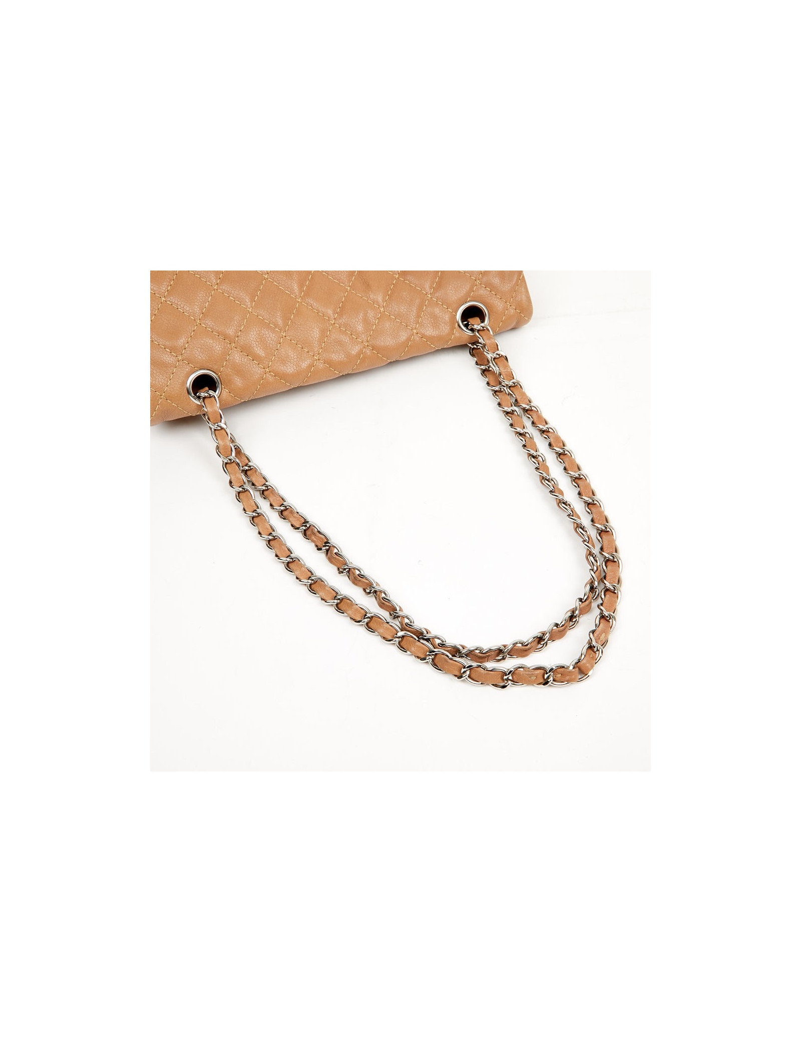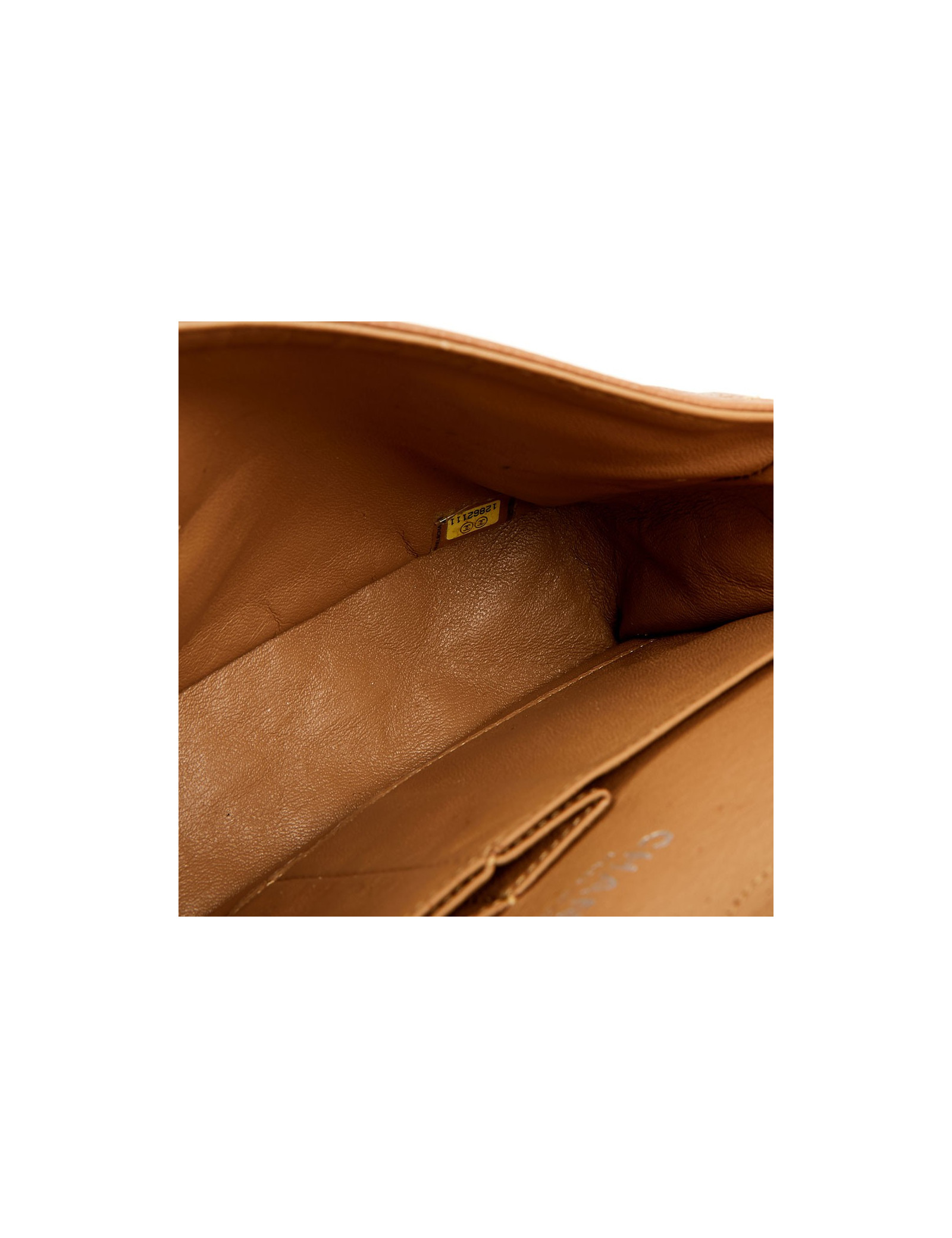 No more need to tell you the story of this emblematic bag of the House of CHANEL imagined by Karl Lagerfeld in 1983. This Timeless, also called Classic, is made of gold grained leather. Its jewelry is in silvery metal.