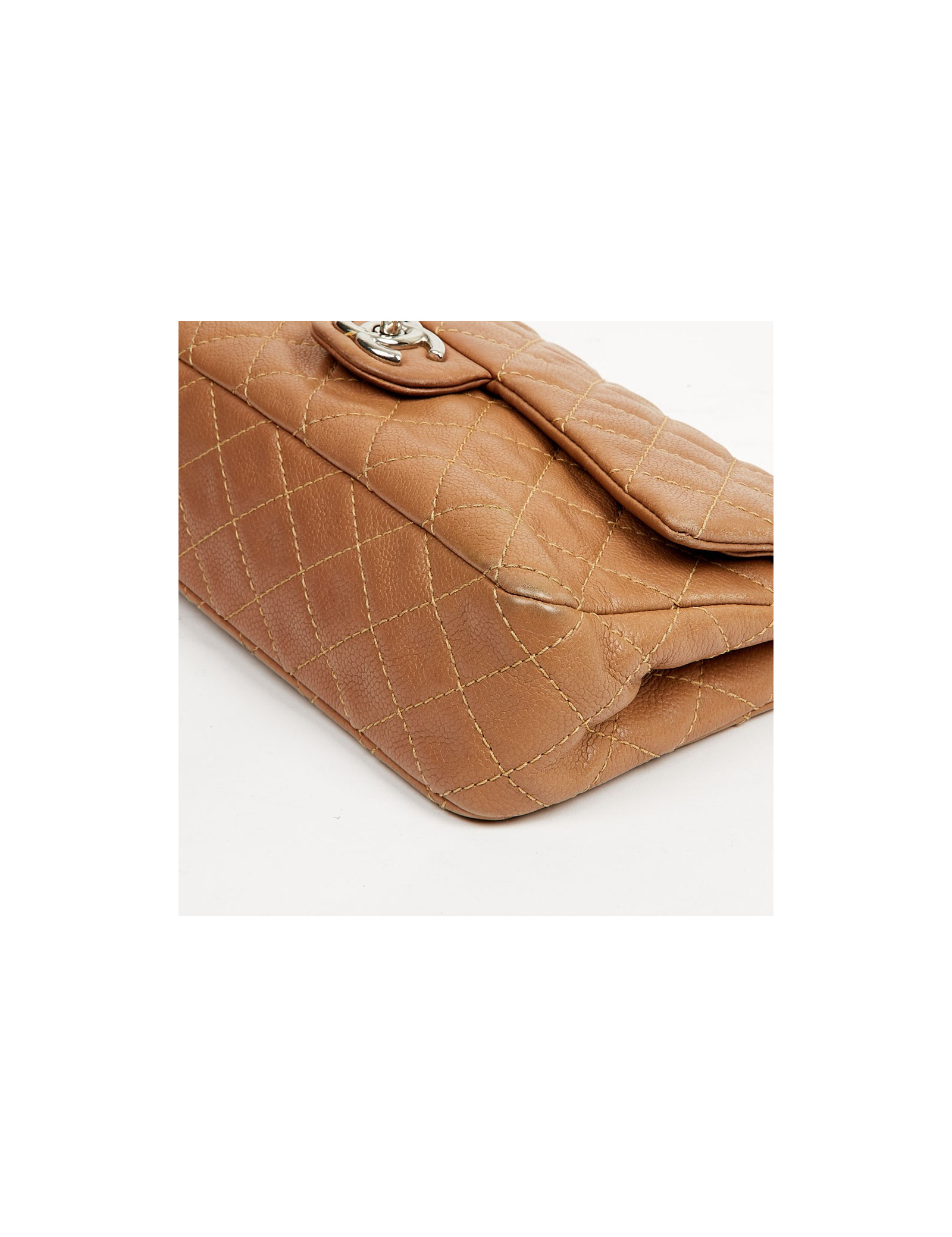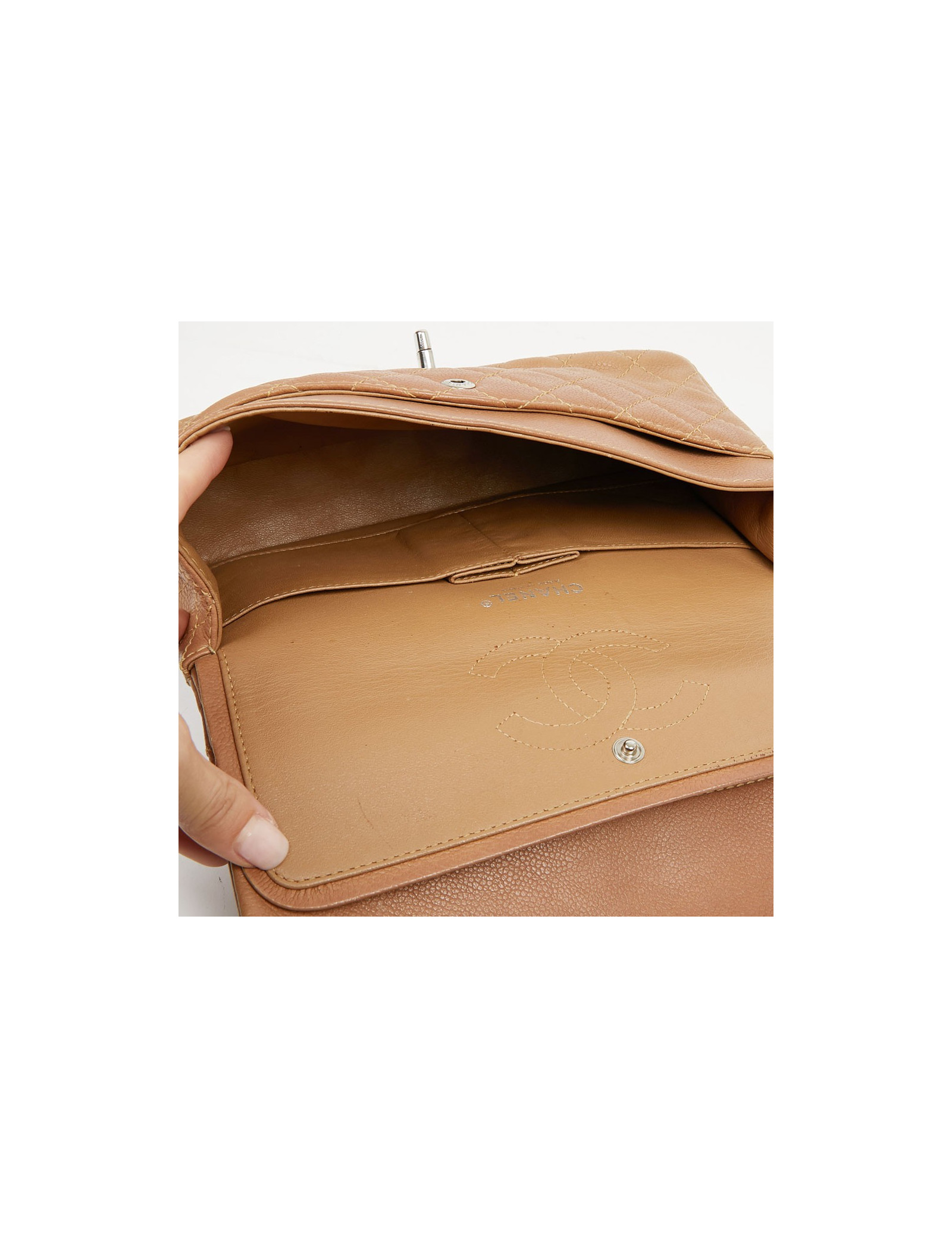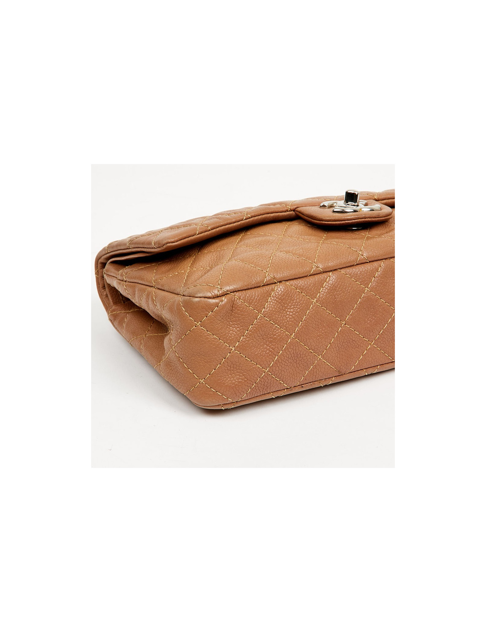 No more need to tell you the story of this emblematic bag of the House of CHANEL imagined by Karl Lagerfeld in 1983. This Timeless, also called Classic, is made of gold grained leather. Its jewelry is in silvery metal.