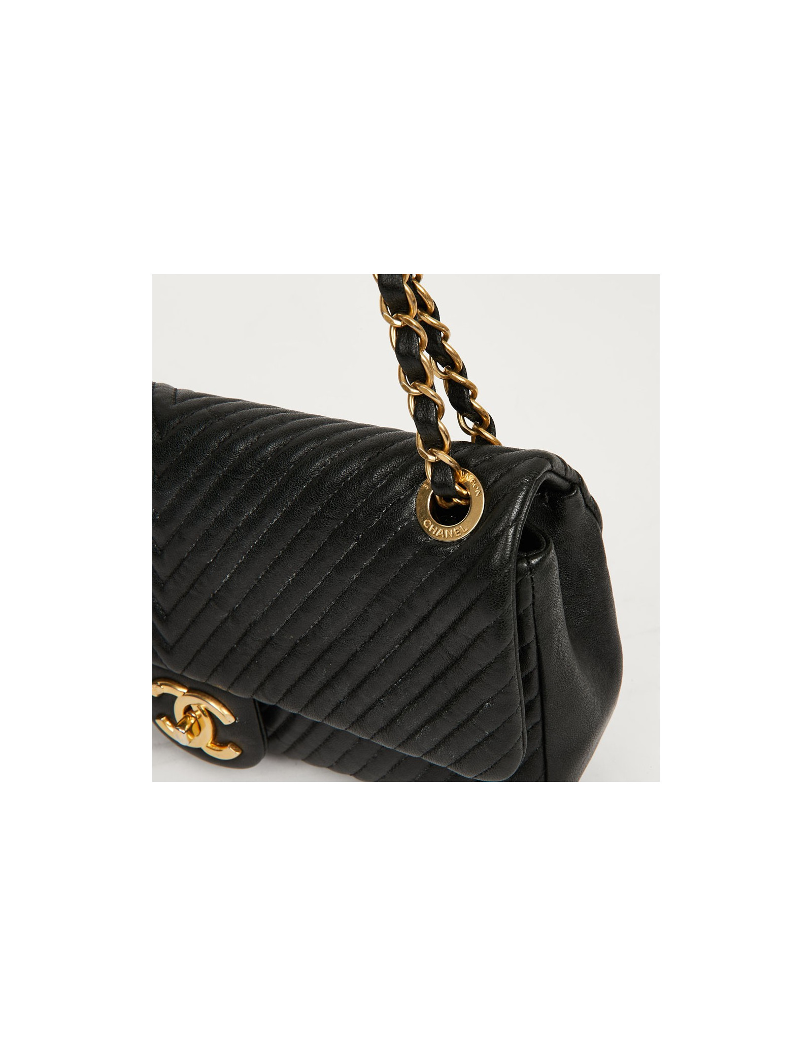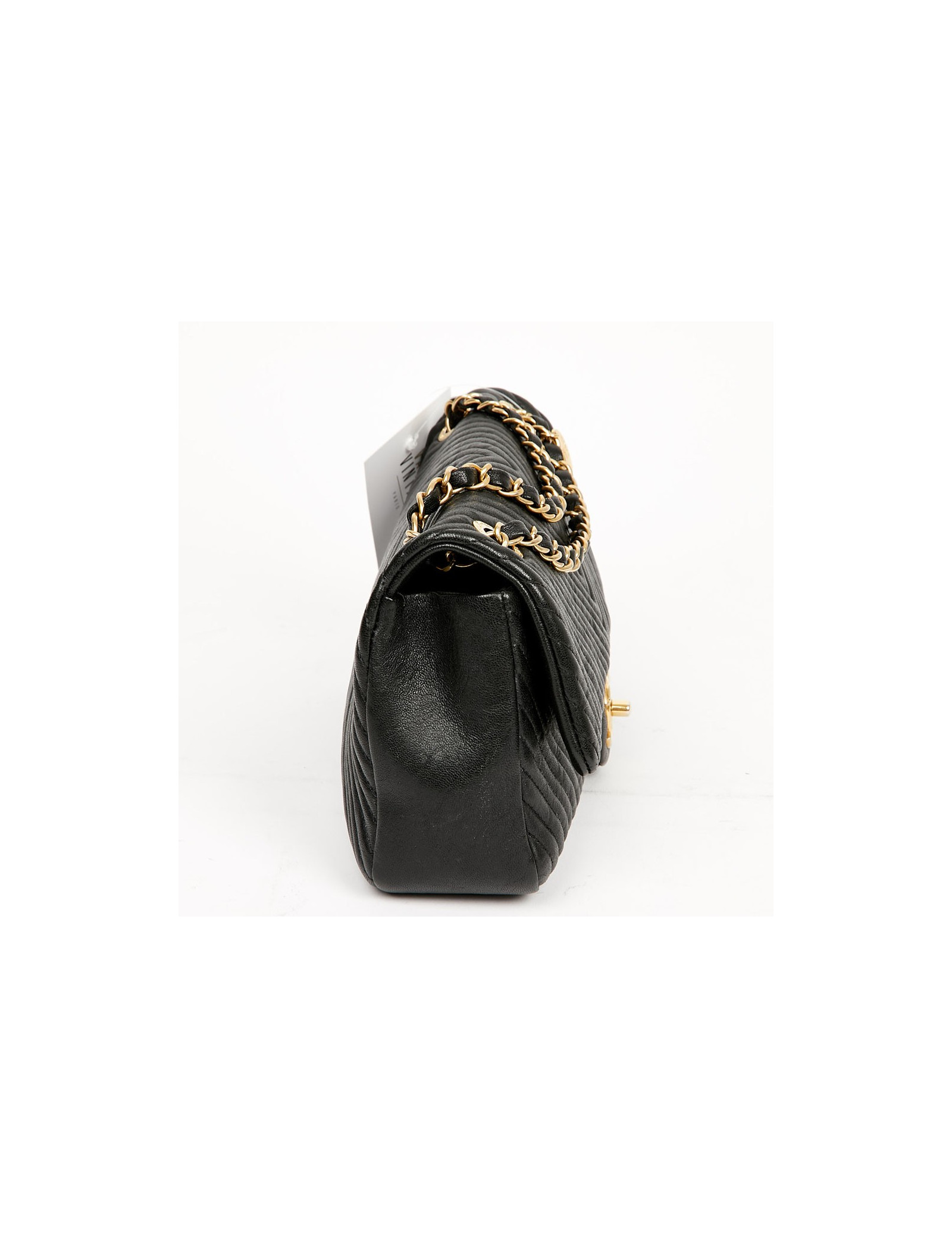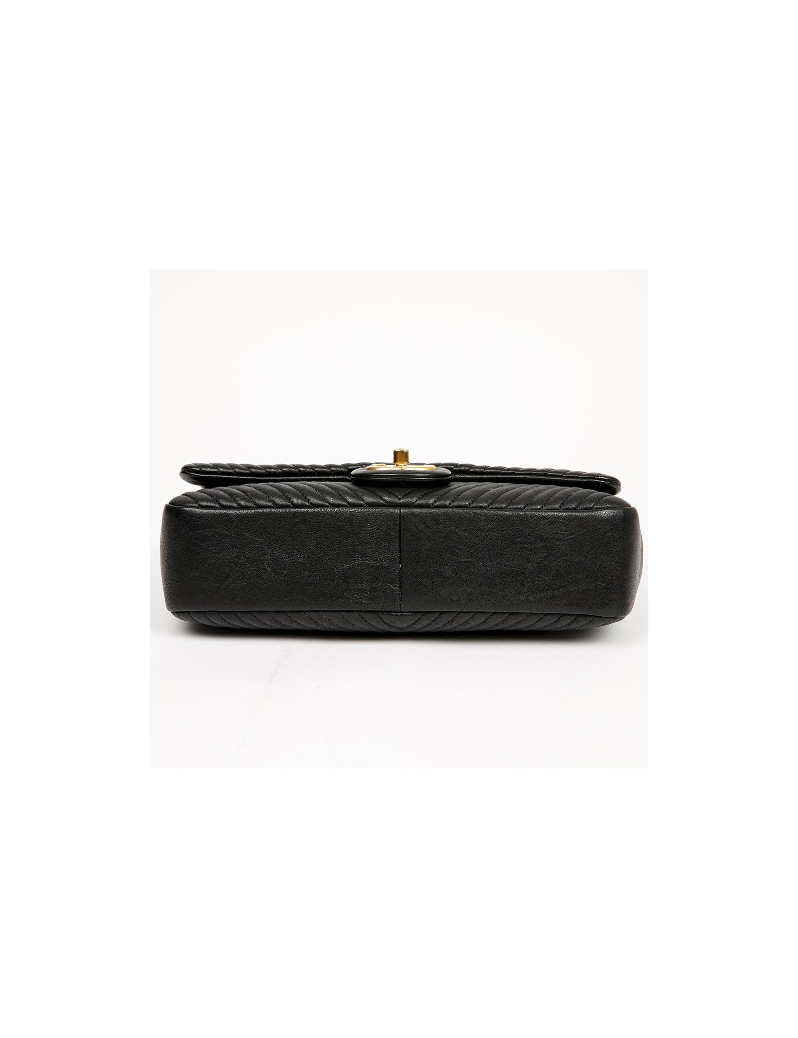 This beautiful bag from the House of Chanel is part of the Timeless family also called Classic bag. The calf leather is in quilted herringbone style with the "CC" clasp and golden hardware.