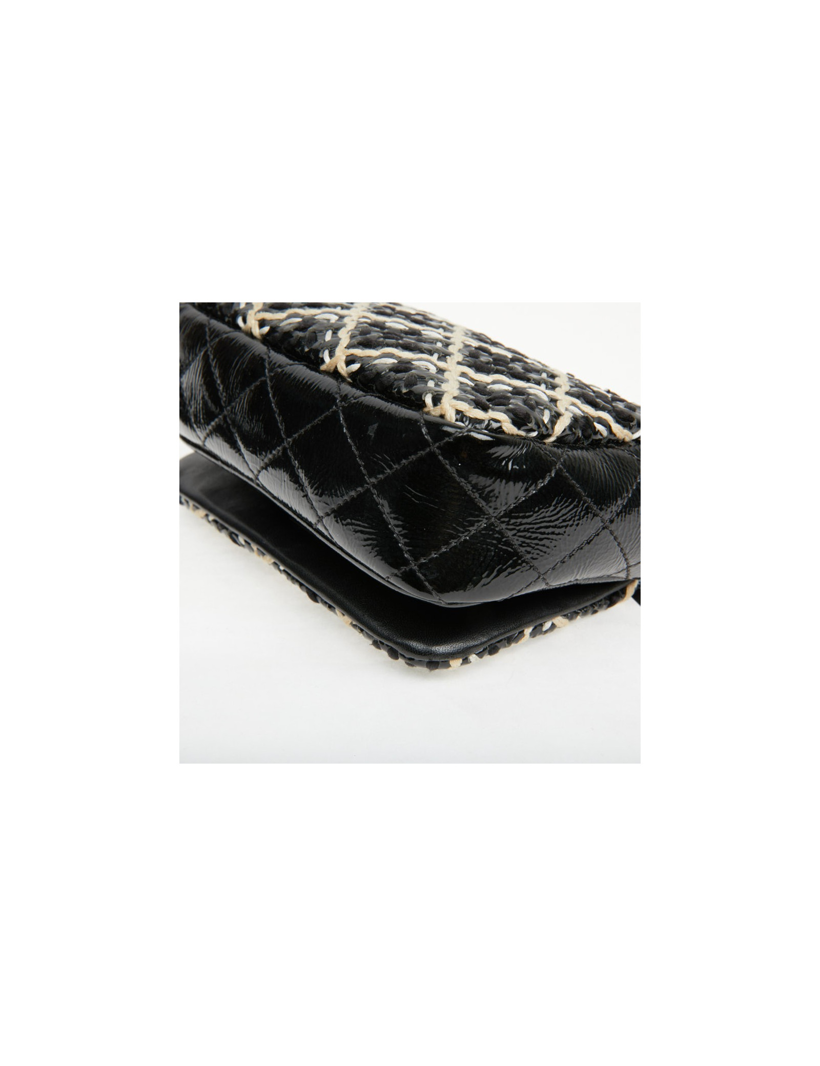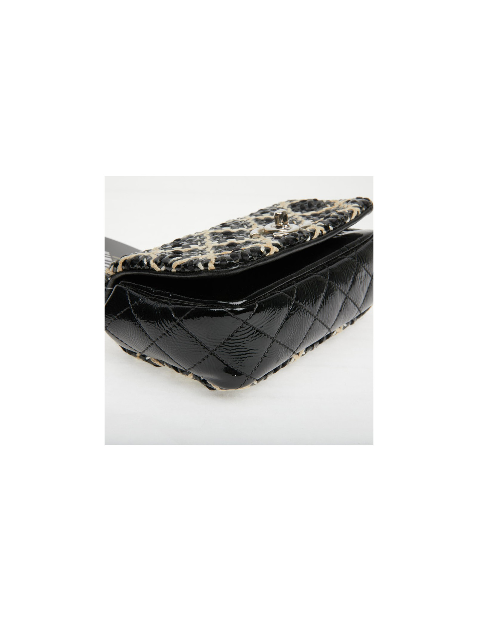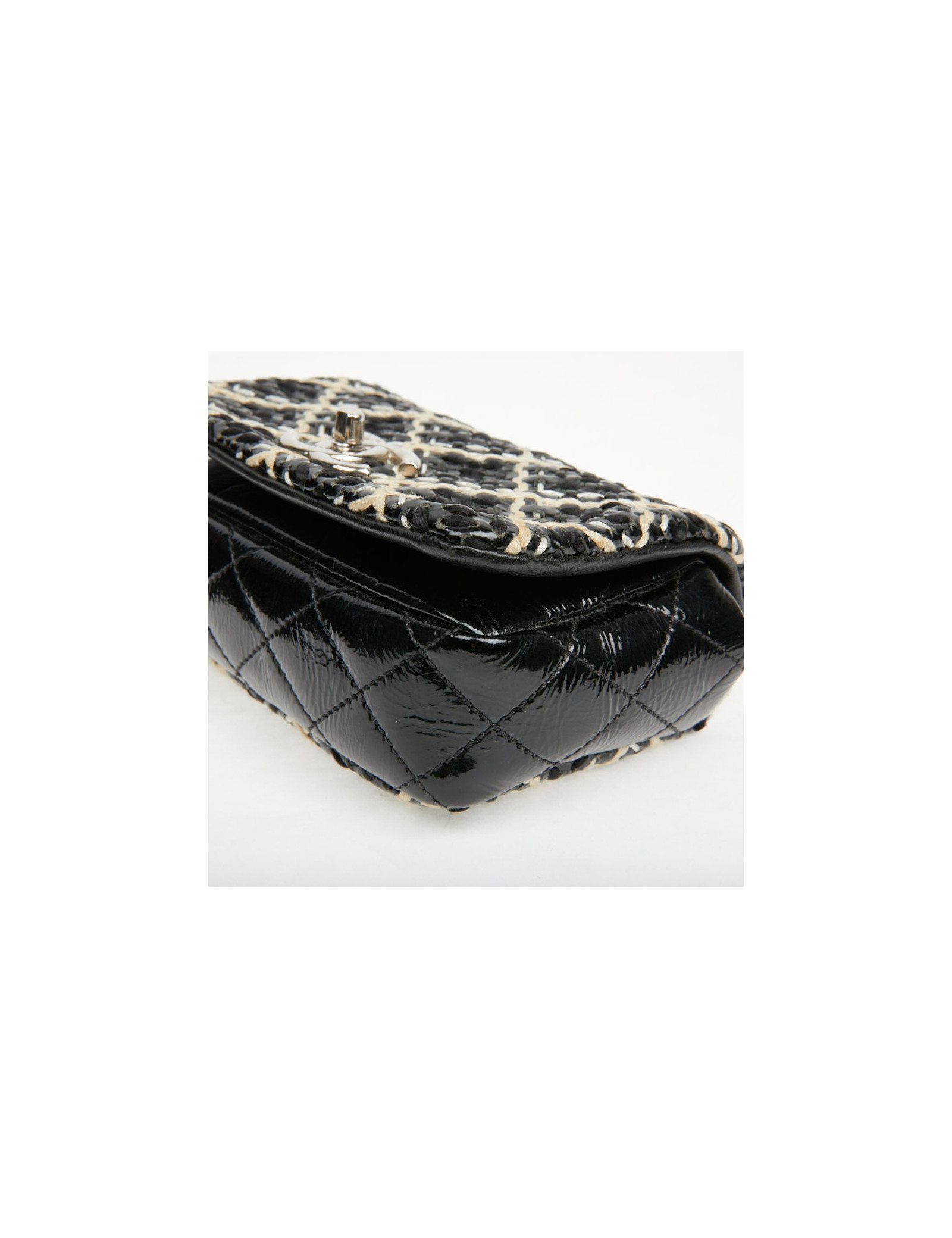 CHANEL Mini Flap Bag in Black Patent Braided Leather.