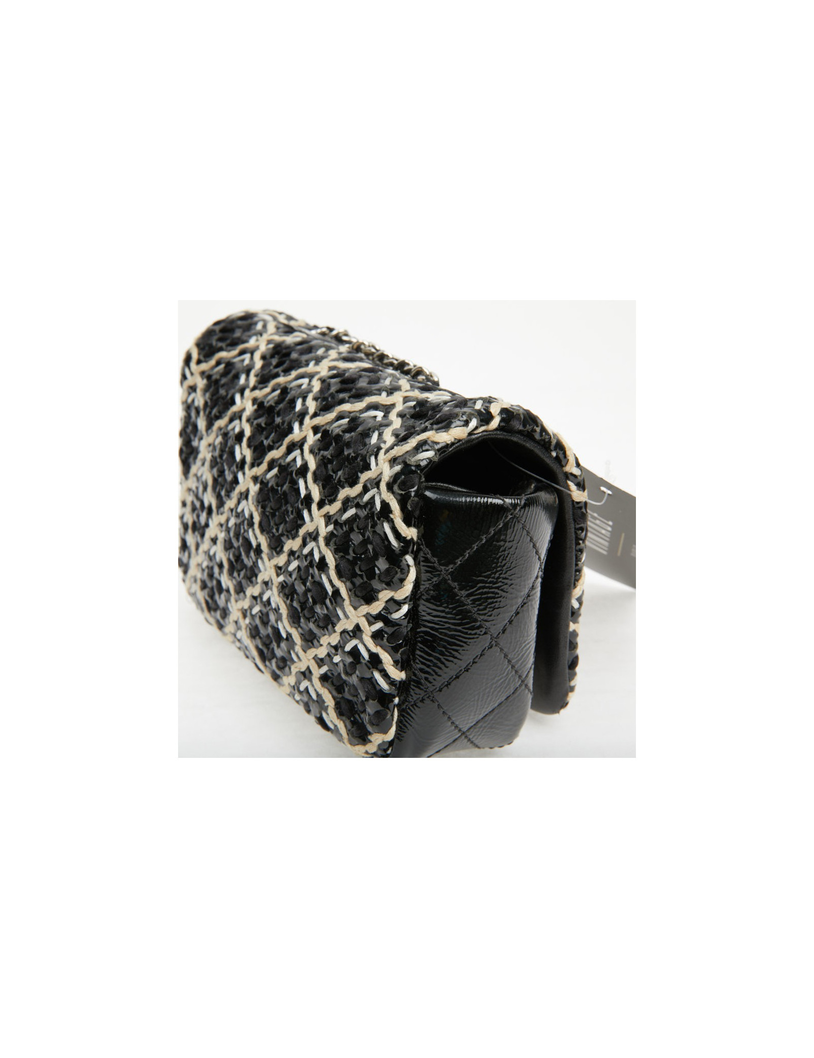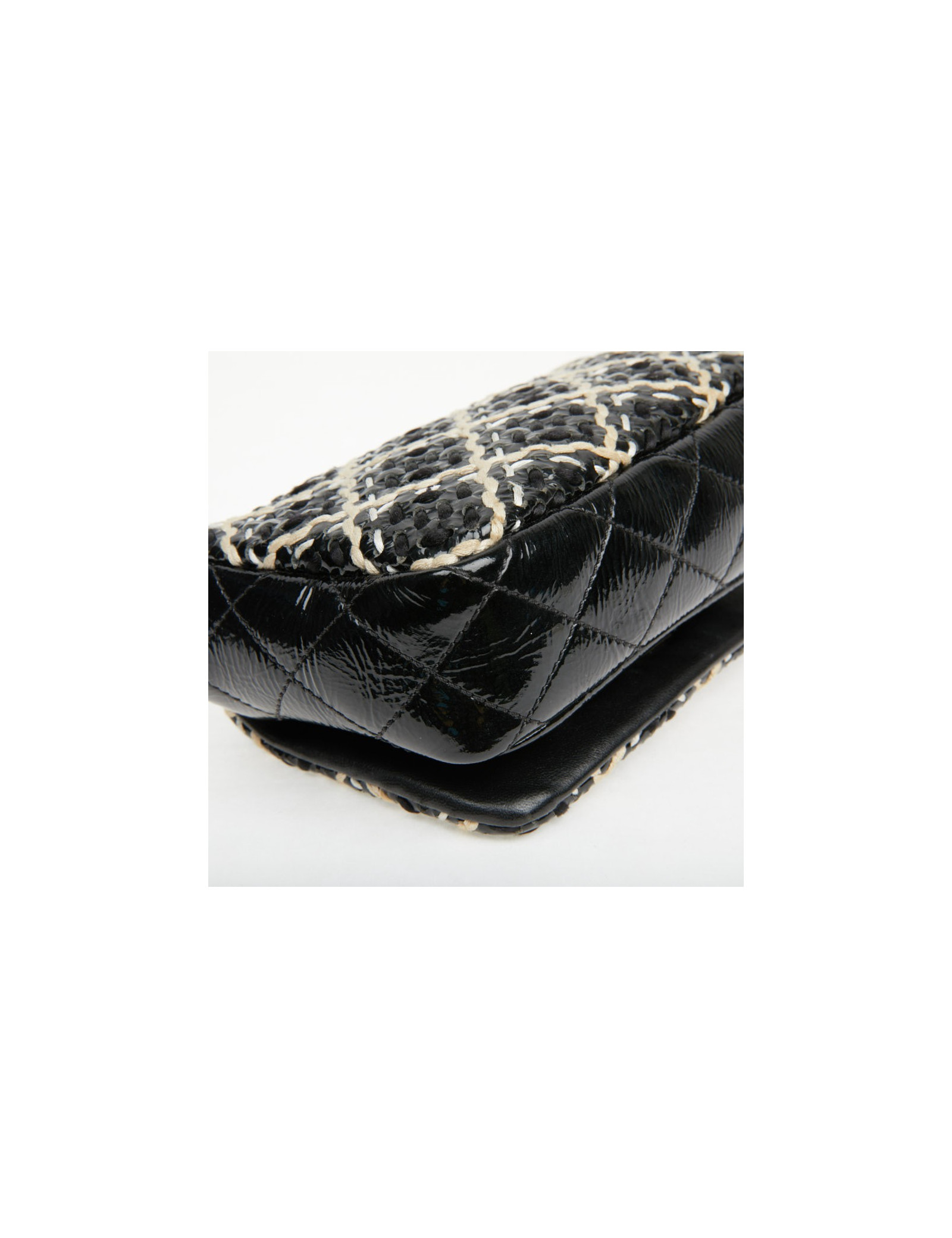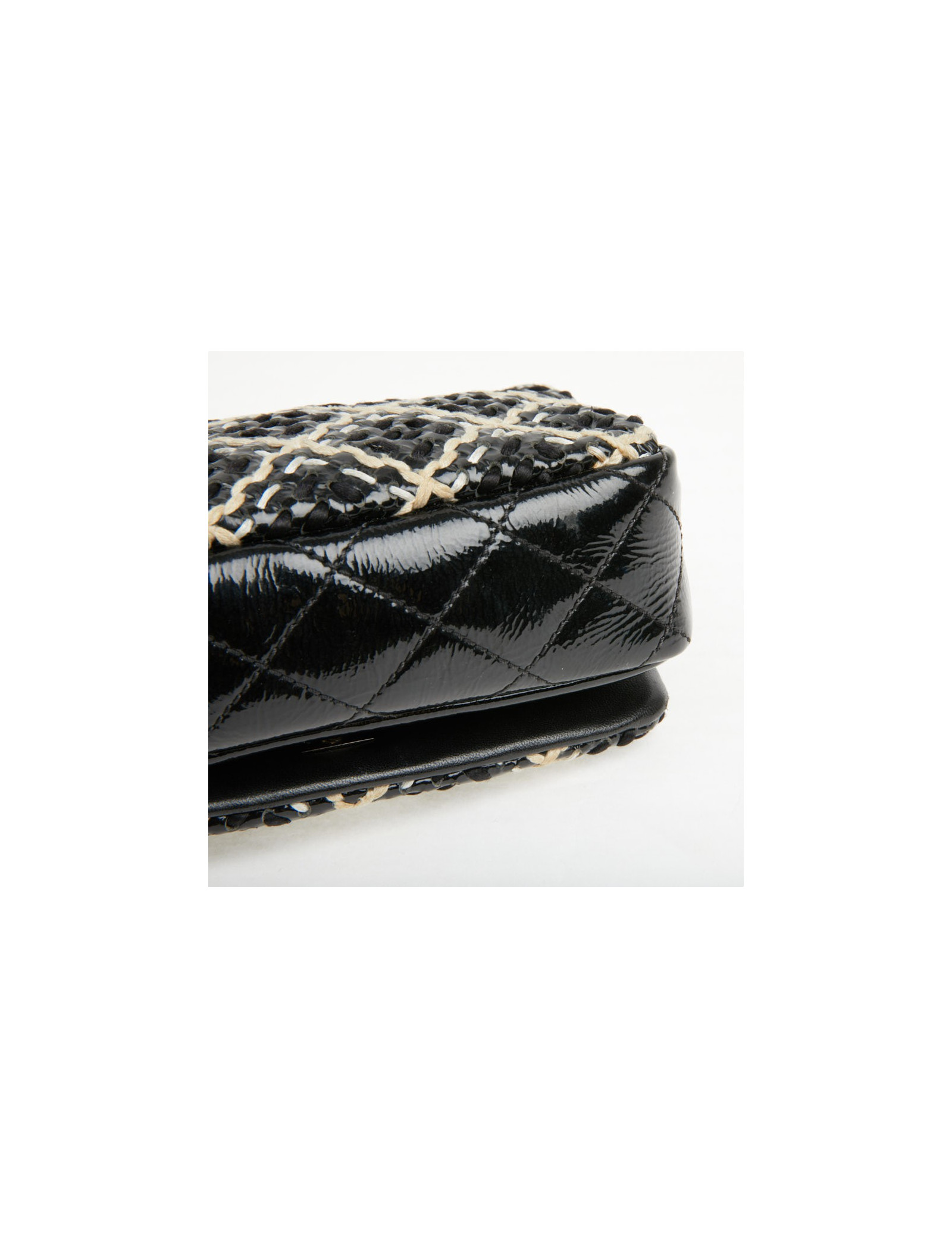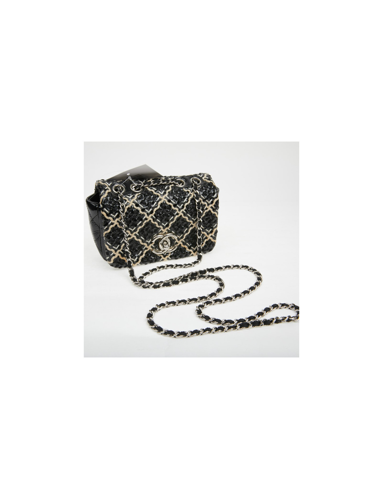 CHANEL Mini Flap Bag in Black Patent Braided Leather.