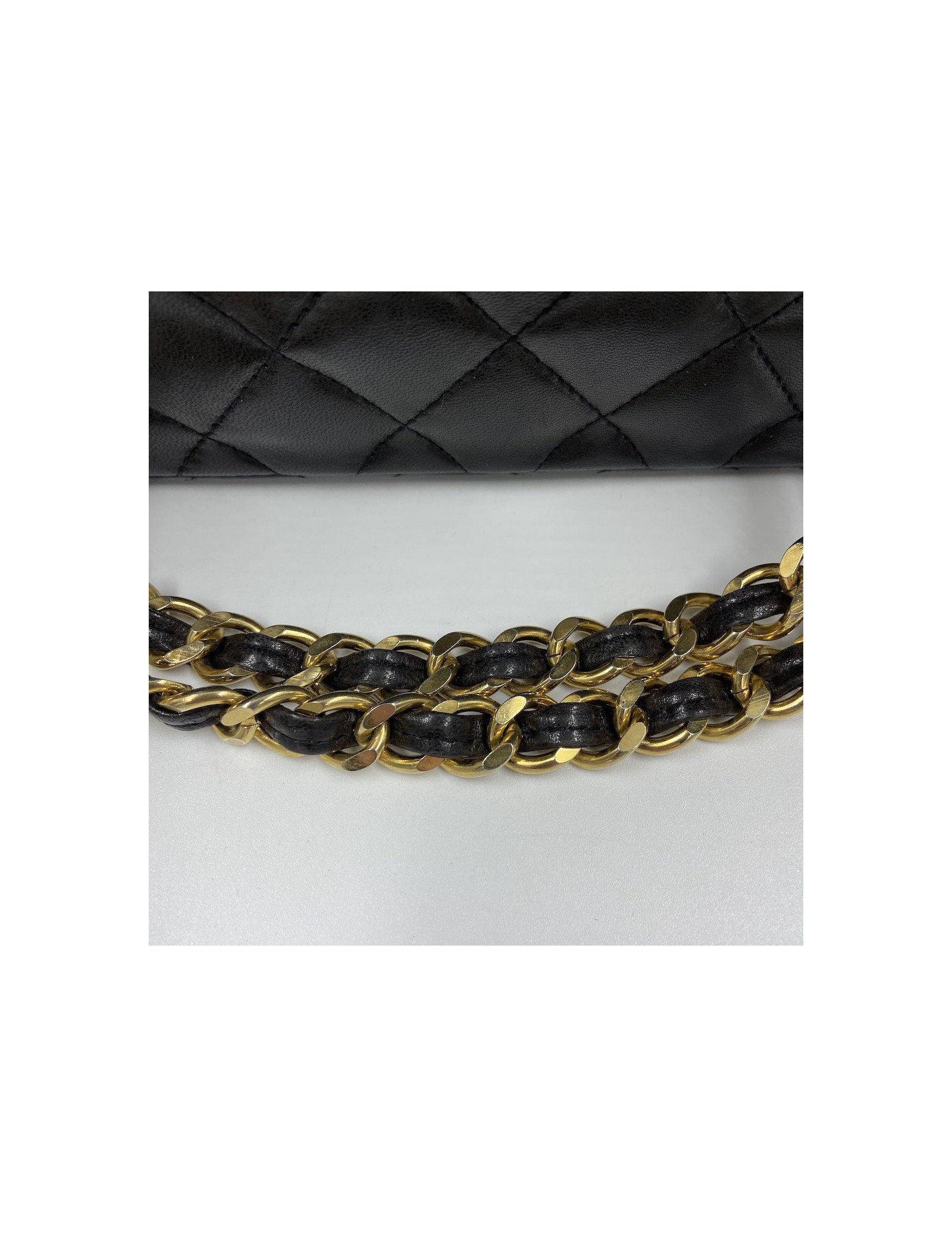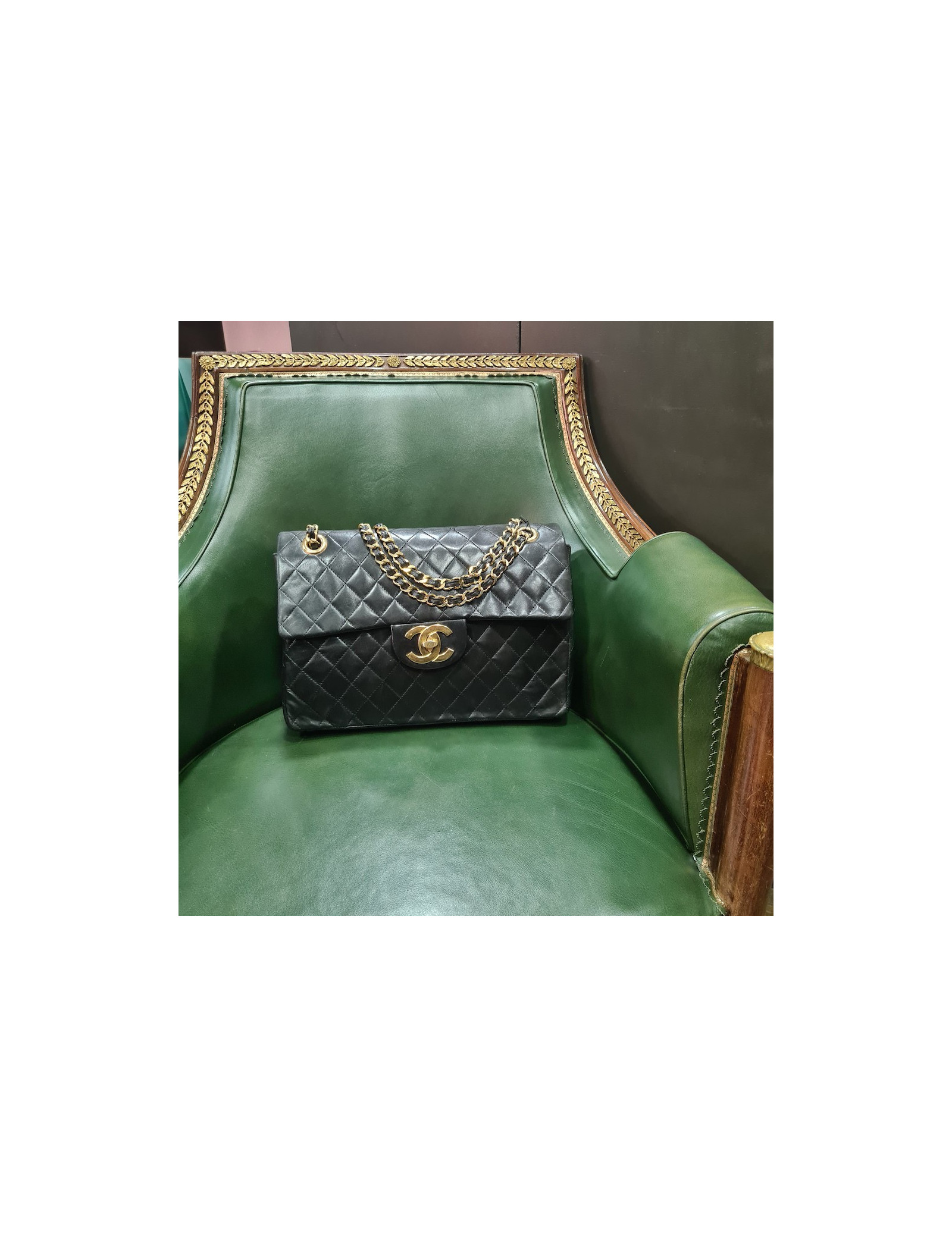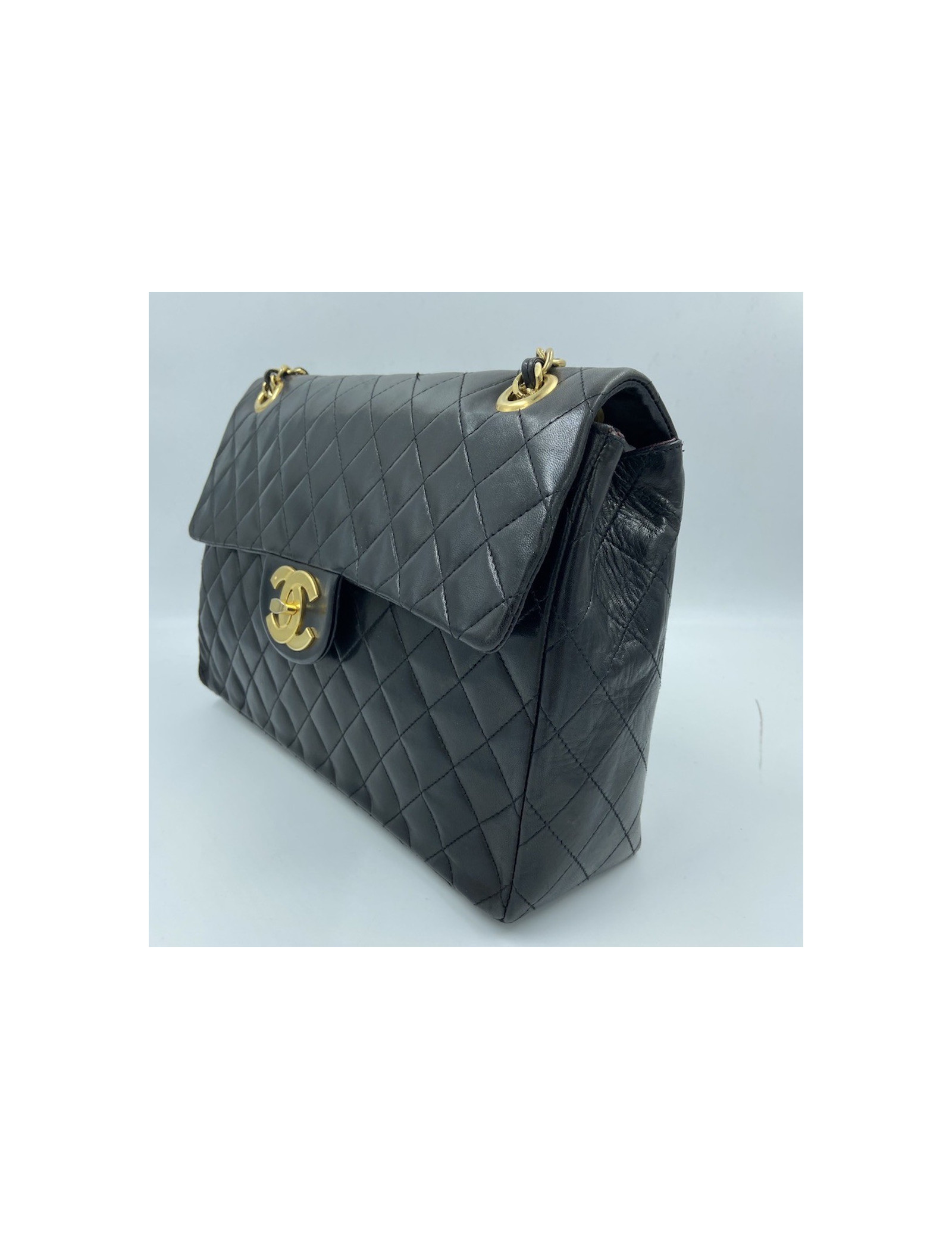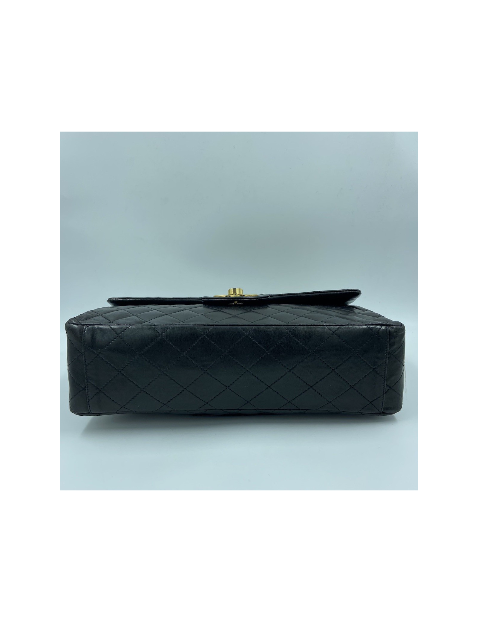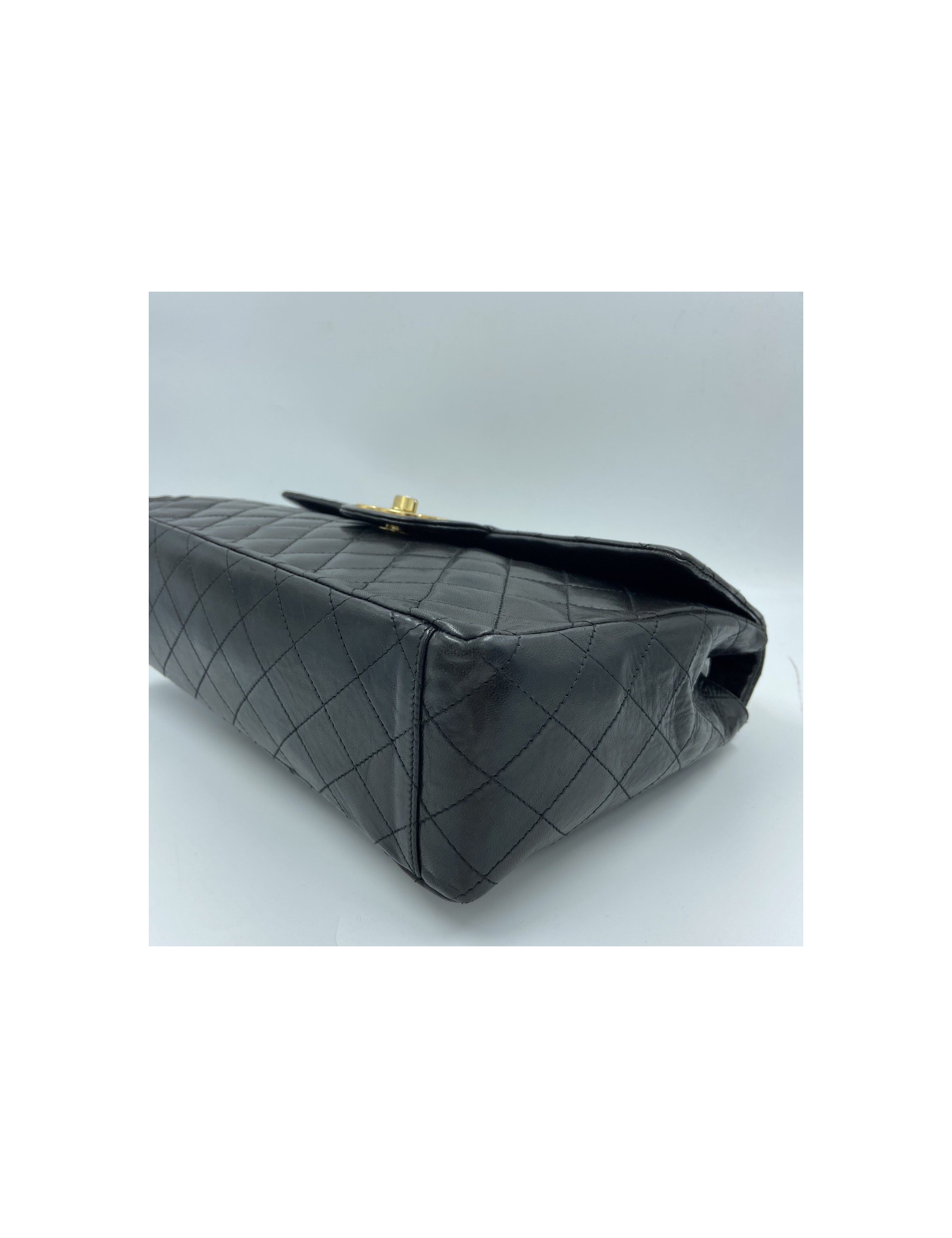 Vintage Maxi jumbo CHANEL FlapBag in black Lambskin Leather