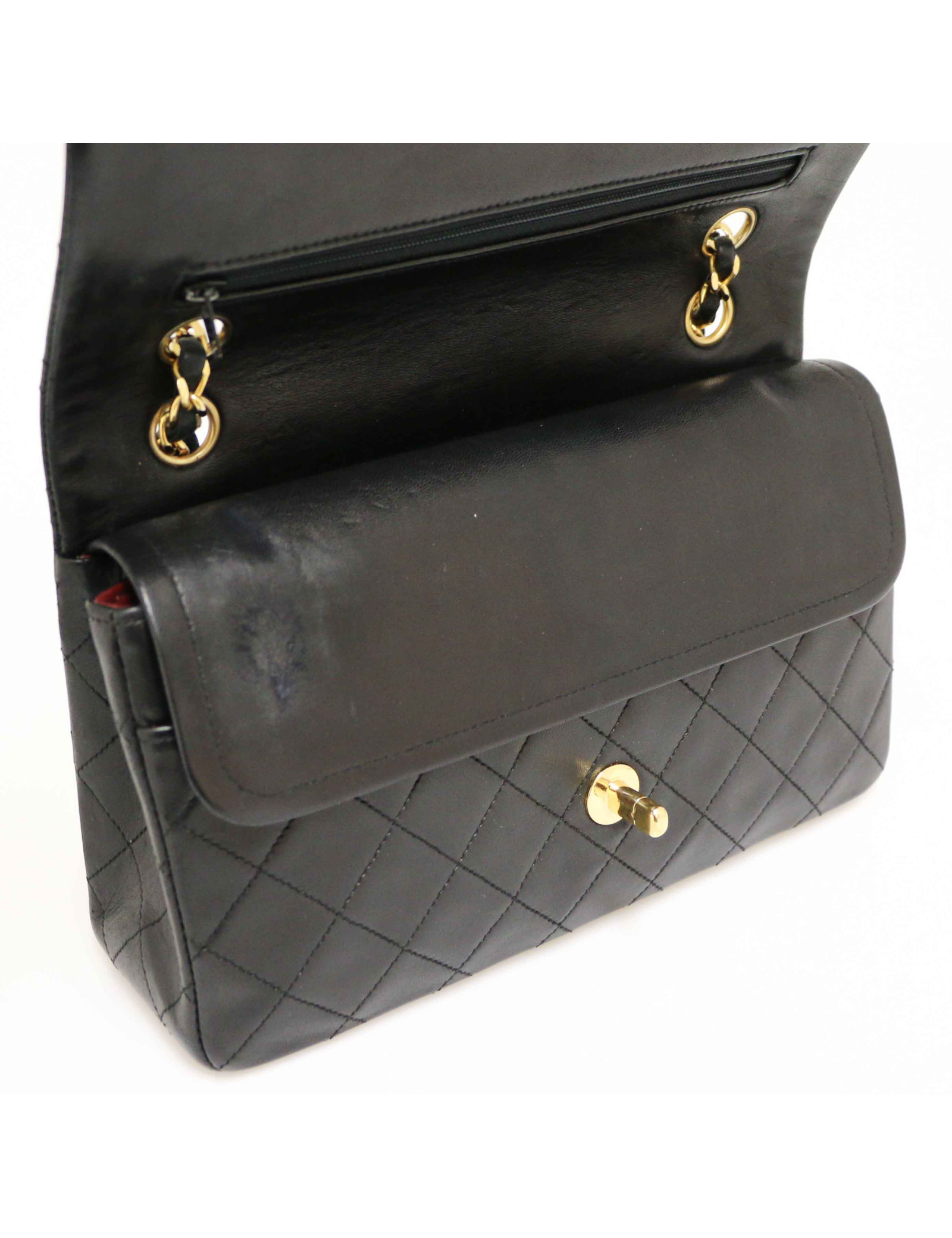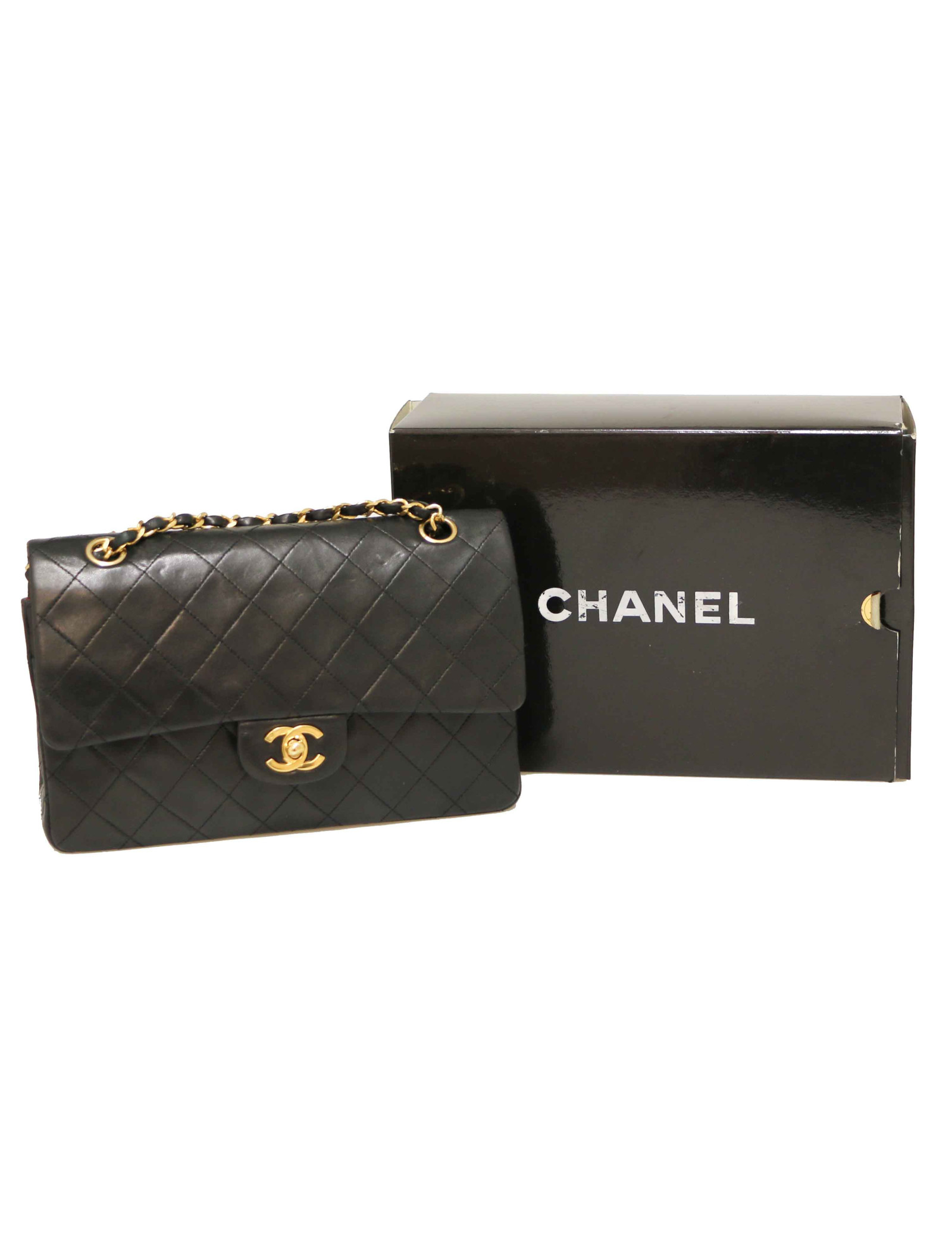 Last items in stock TIMELESS CHANEL CHANEL black quilted Timeless 25 bag CHANEL 36902 6,200.00 € CHANEL vintage black Timeless bag Condition : goodMade in FranceModel : classique 25Gender : womanMaterial : lambskin leatherLining : burgundy smooth leatherColor : blackMeasurements : 27 x 19 x 8 cmShoulder strap : 88 simple, 53 doubleHologram : 0916...year : 1986-1988Hardware : gold plated metalDetails : classic vintage Chanel. Good condition, as the... Add to cart